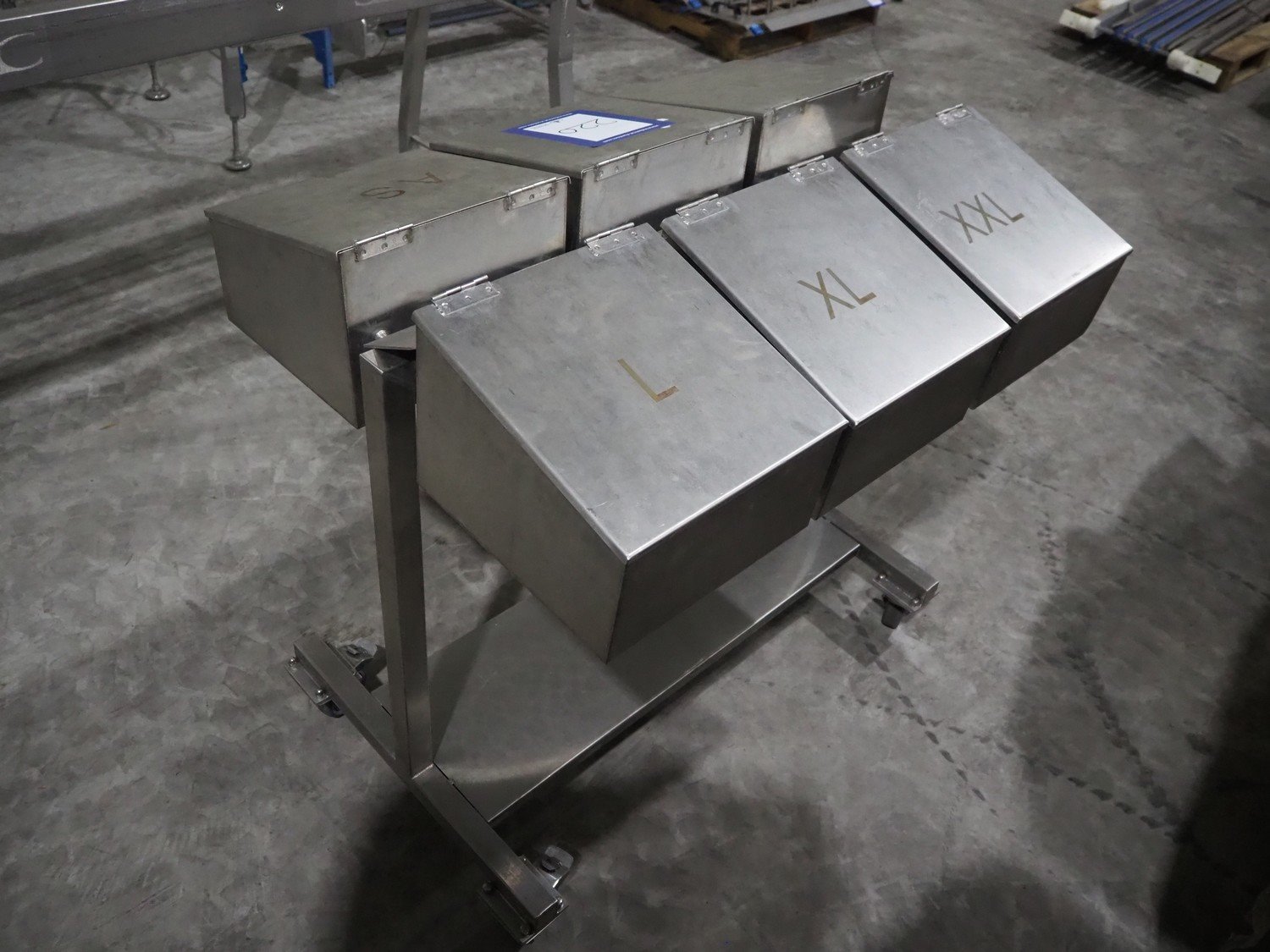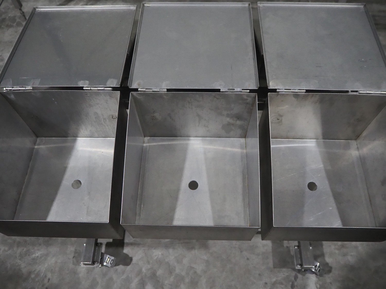S/s trolley with 6 boxes, dimensions: 1000 mm x 750 mm x 1000 mm.