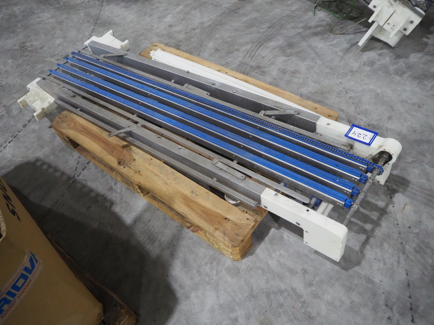 Transport belt, chain conveyor, chain width: 190 mm, total dimensions: 1900 mm x 750 mm x 180 mm. 3 chains are missing.
