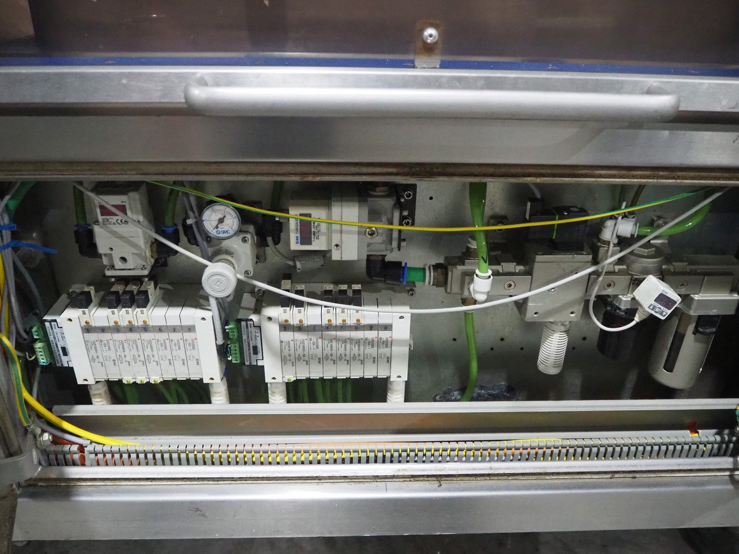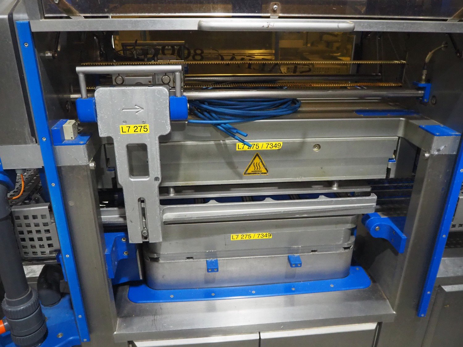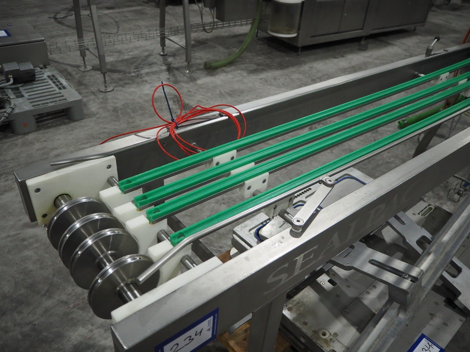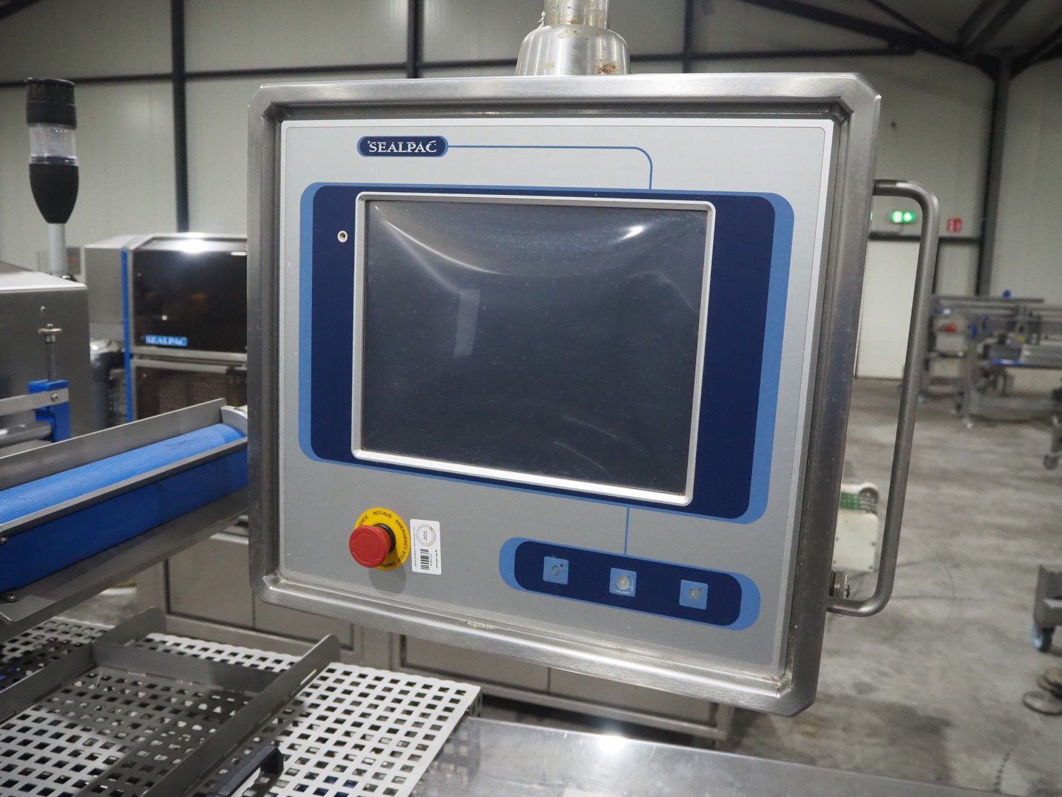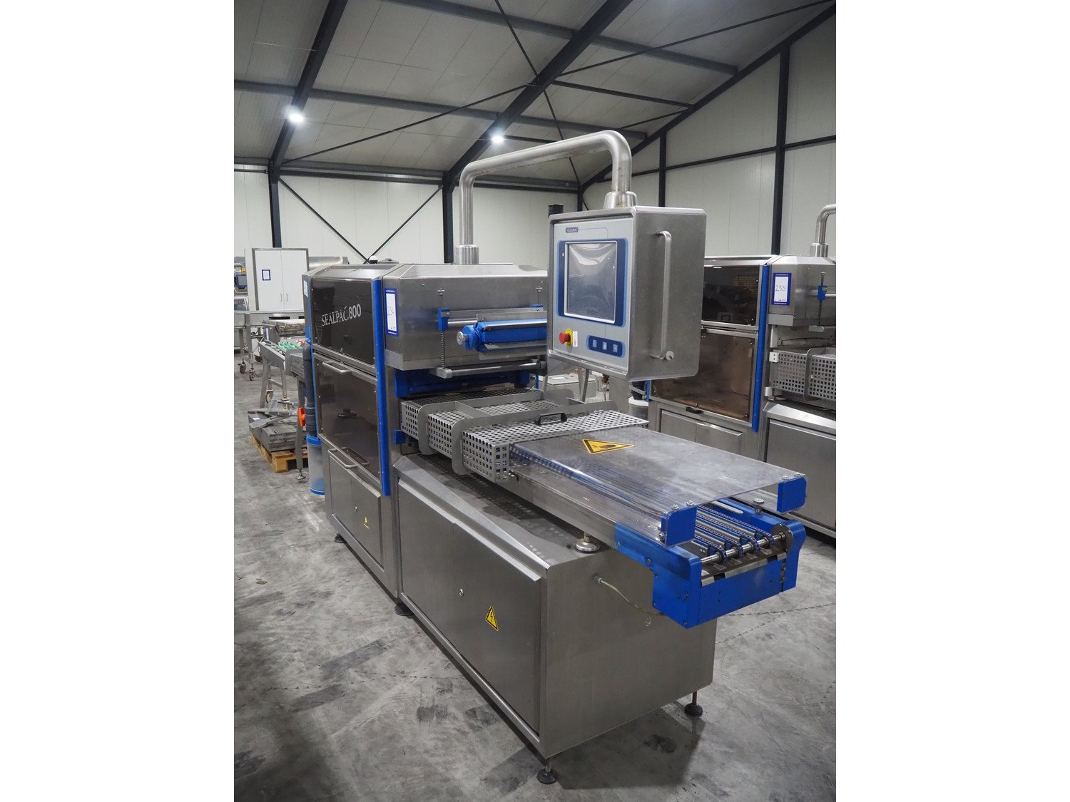 Sealpac traysealer, type: Sealpac 800, serial number: TVG 01124801, year of construction: 2005, 400/230 V, 3 Ph, 10 kW, dye: (4x) 258 mm x 158 mm, total dimensions: 6100 mm x 950 mm x 2100 mm. Including pallet with dye, dye: (2x) 304 mm x 243 mm, total dimensions: 1200 mm x 800 mm x 400 mm.