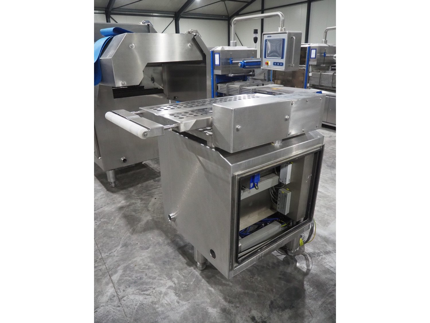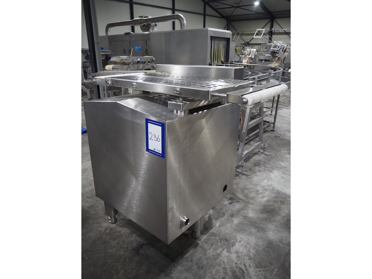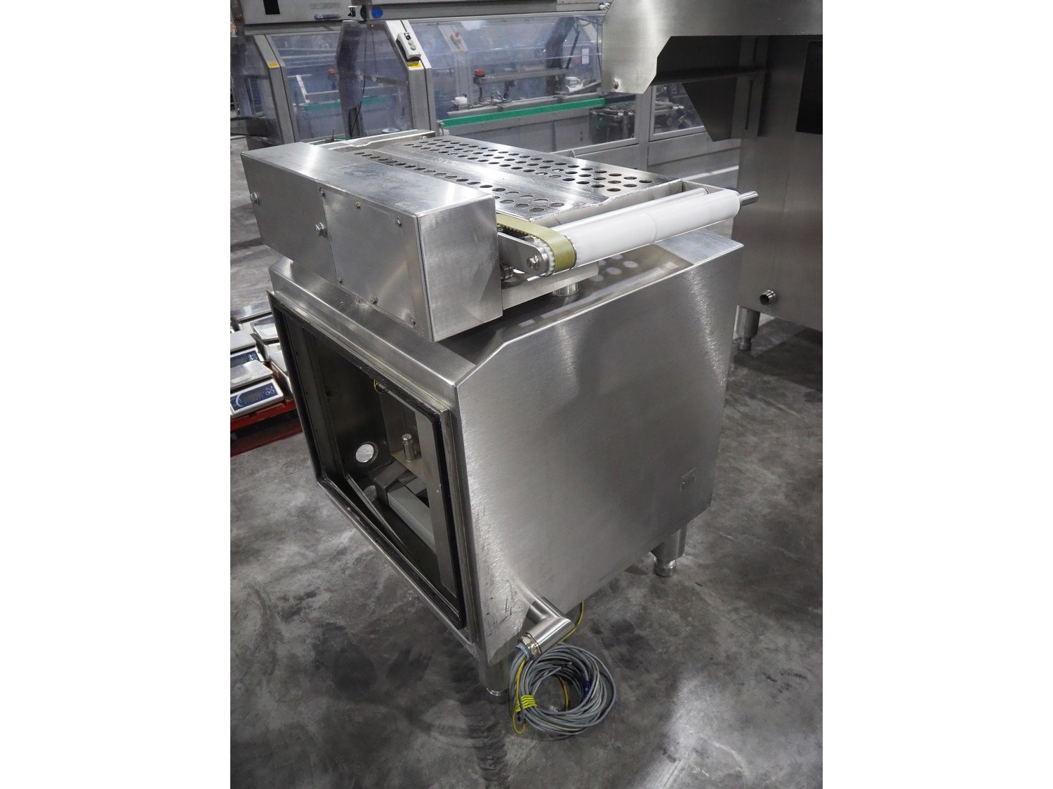 Weber loading conveyor, type: CWB, number: 6708, year of construction: 2004, plastic belt, belt width: 450 mm, total dimensions: 1270 mm x 830 mm x 1260 mm. Missing cover. Technical condition unknown.