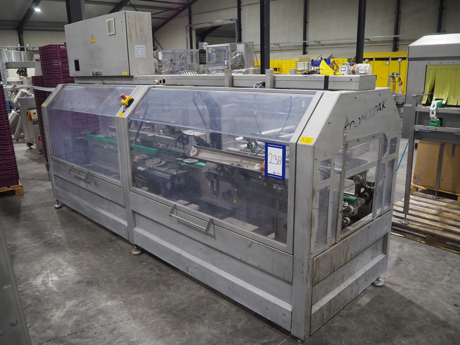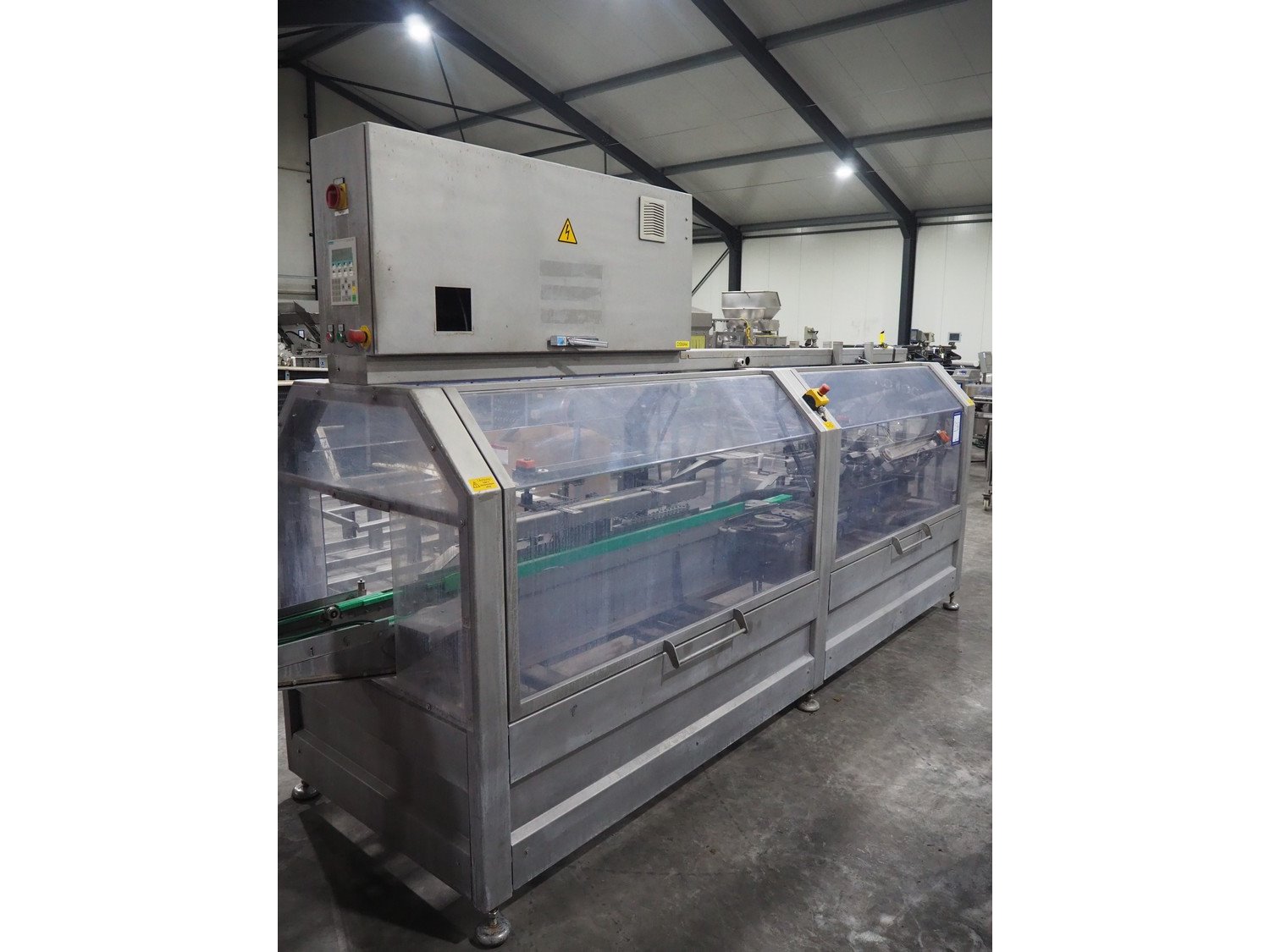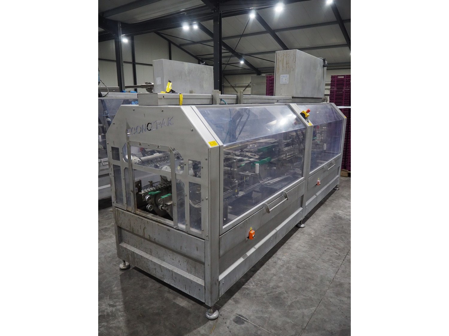 Econopak carton erector, type: GVE-DL, year of construction: 2003, 400 V, 3 PH, 50 Hz, 13 A, 6 kW, clearance: 190 mm x 175 mm, total dimensions: 4500 mm x 1250 mm x 2350 mm. Incomplete.