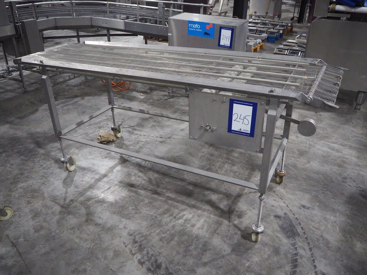 S/s mobile mesh belt, s/s mesh belt, belt width: 600 mm, total dimensions: 2260 mm x 850 mm x 1030 mm.