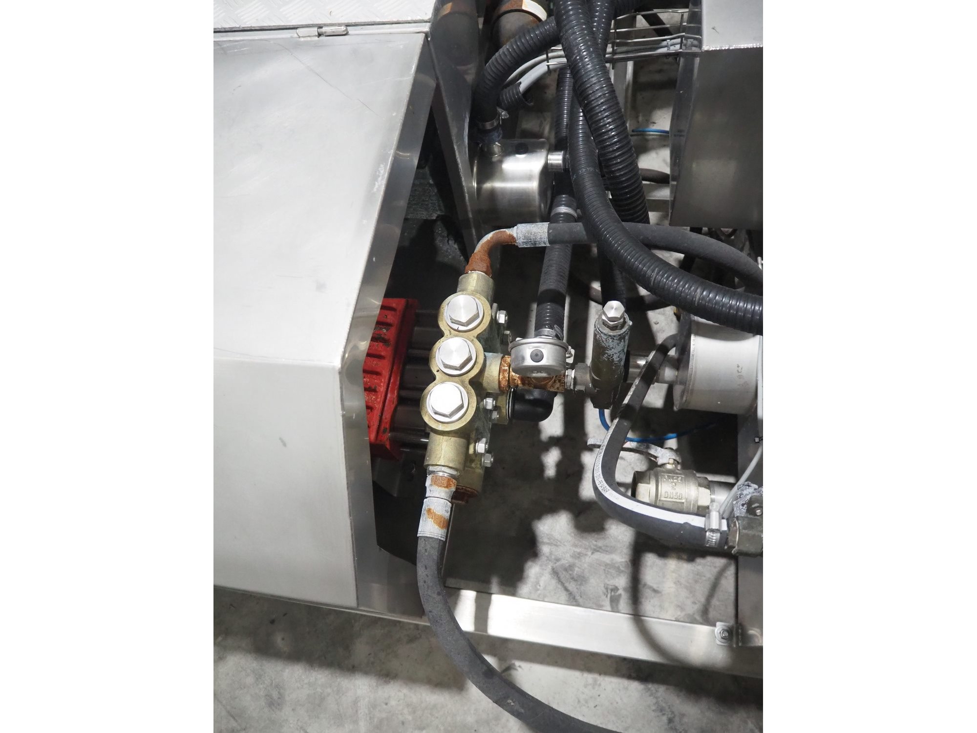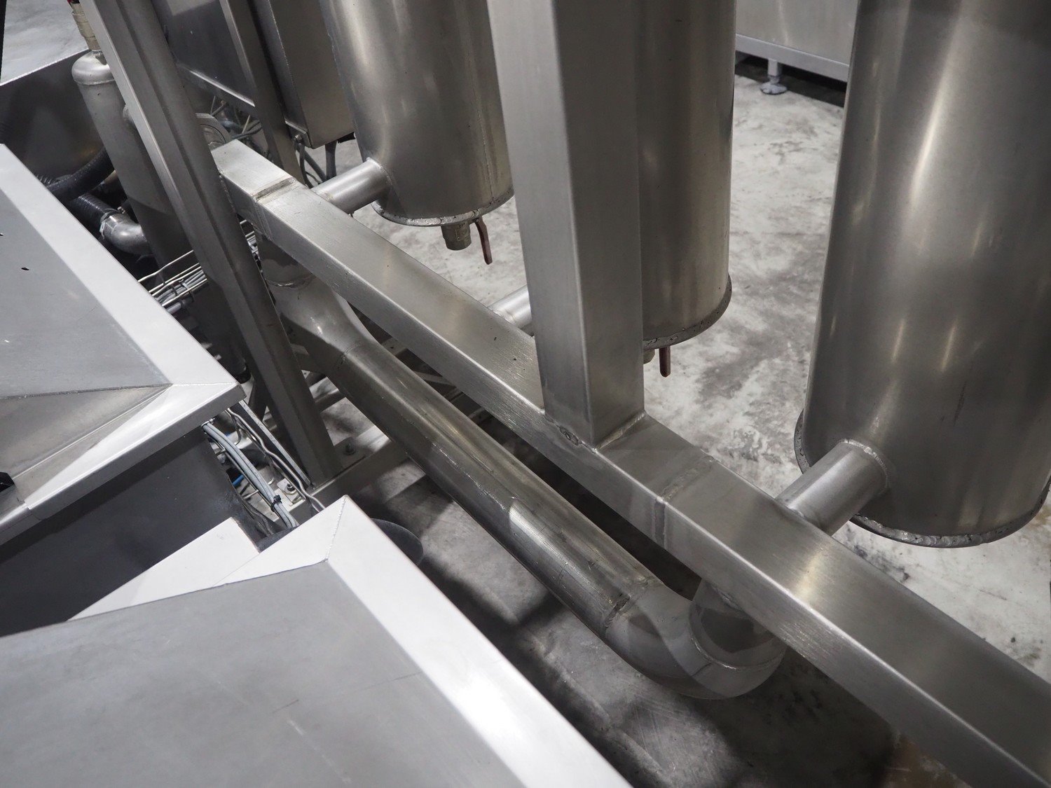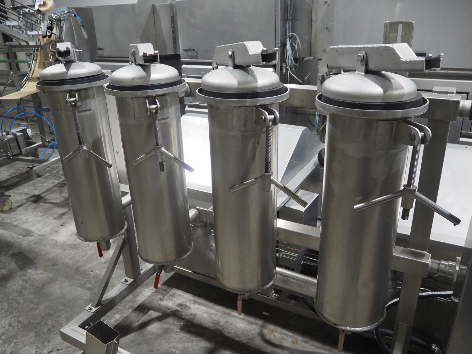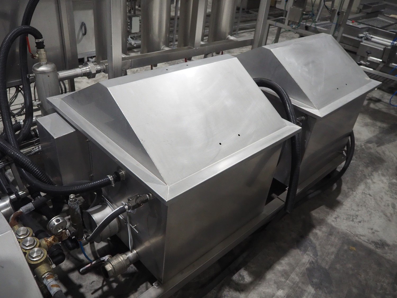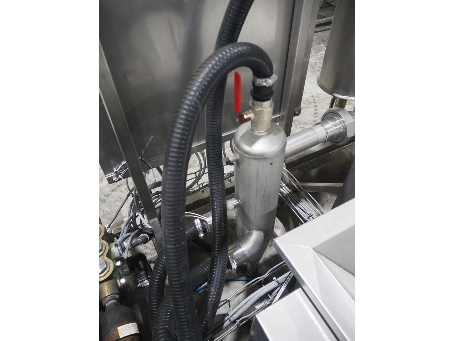 Van de Vecht de-sticker machine, 4 stations, inside dimensions: Ø 180 mm x 380 mm, total dimensions: 3200 mm x 1500 mm x 1440 mm.