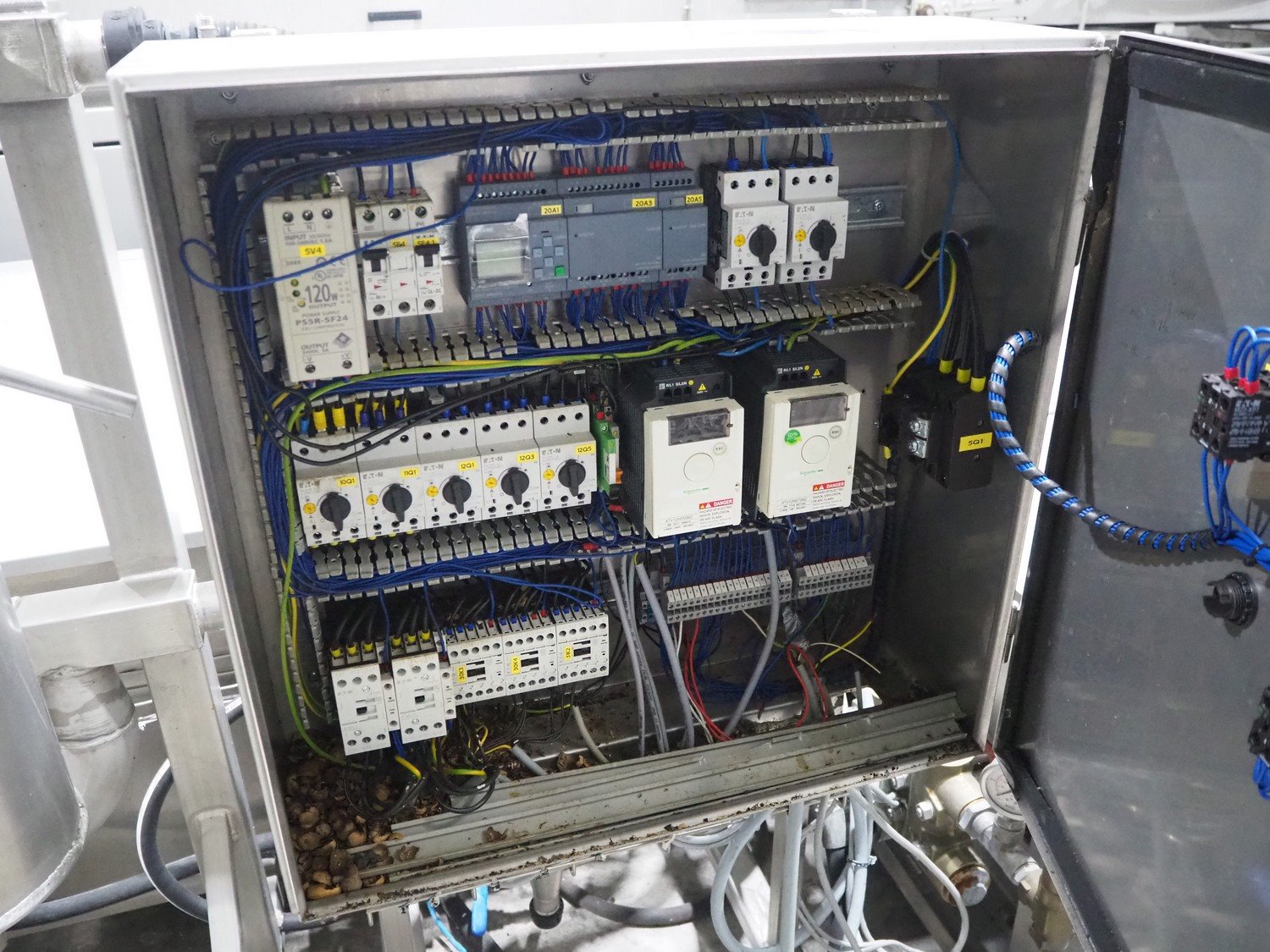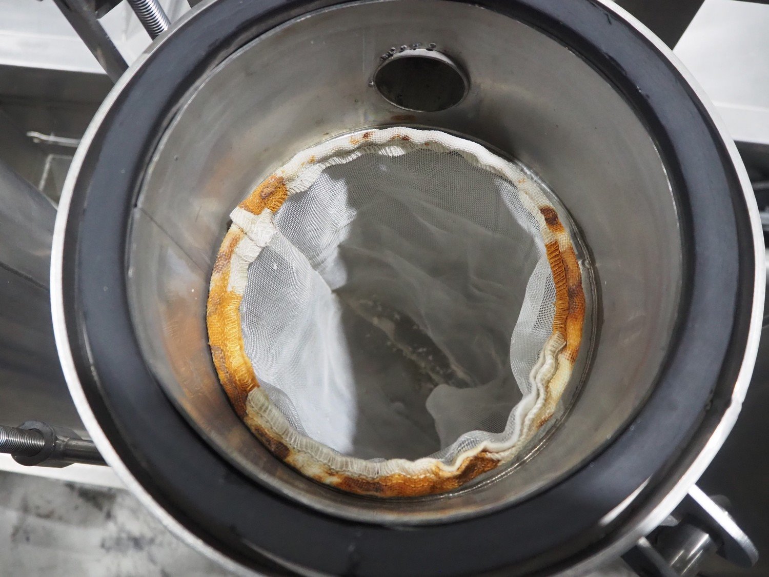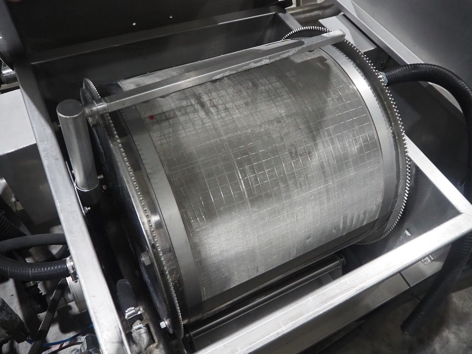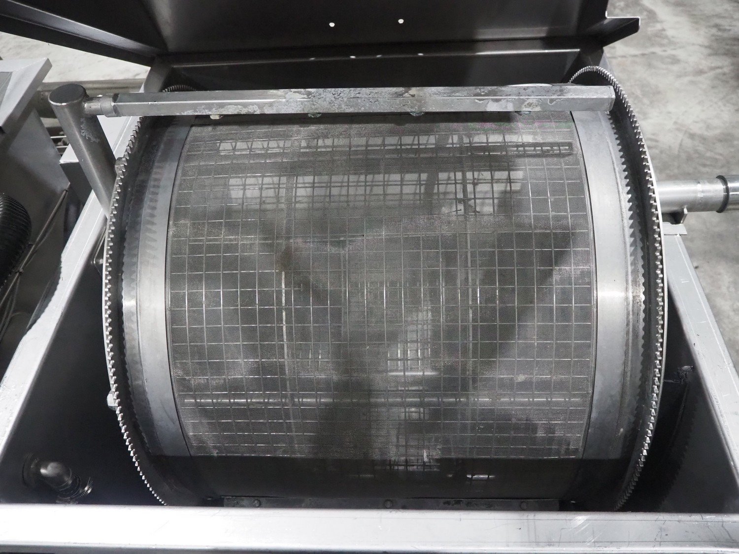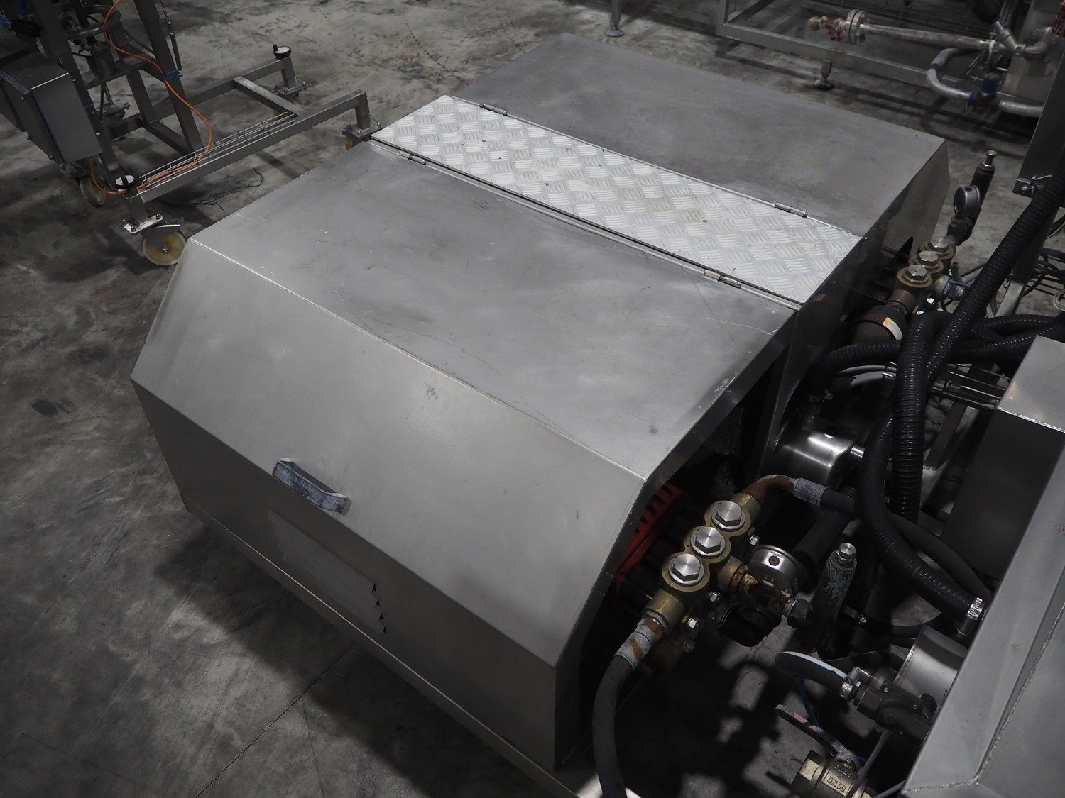 Van de Vecht de-sticker machine, 4 stations, inside dimensions: Ø 180 mm x 380 mm, total dimensions: 3200 mm x 1500 mm x 1440 mm.