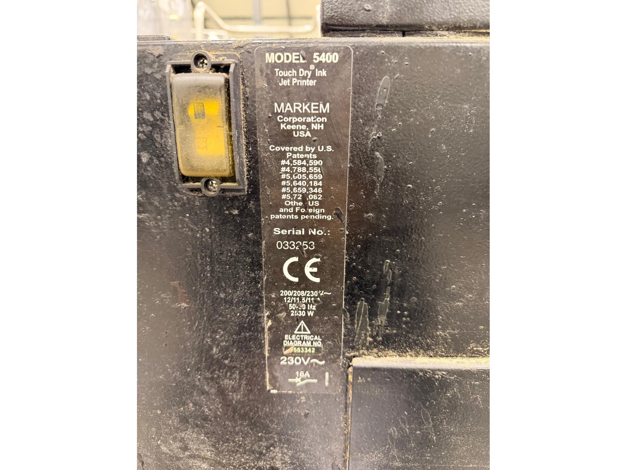 Marken printer, model: 5400, serial number: 033253, 230 V, 16 A, dimensions: 700 mm x 500 mm x 850 mm. Including box with parts.