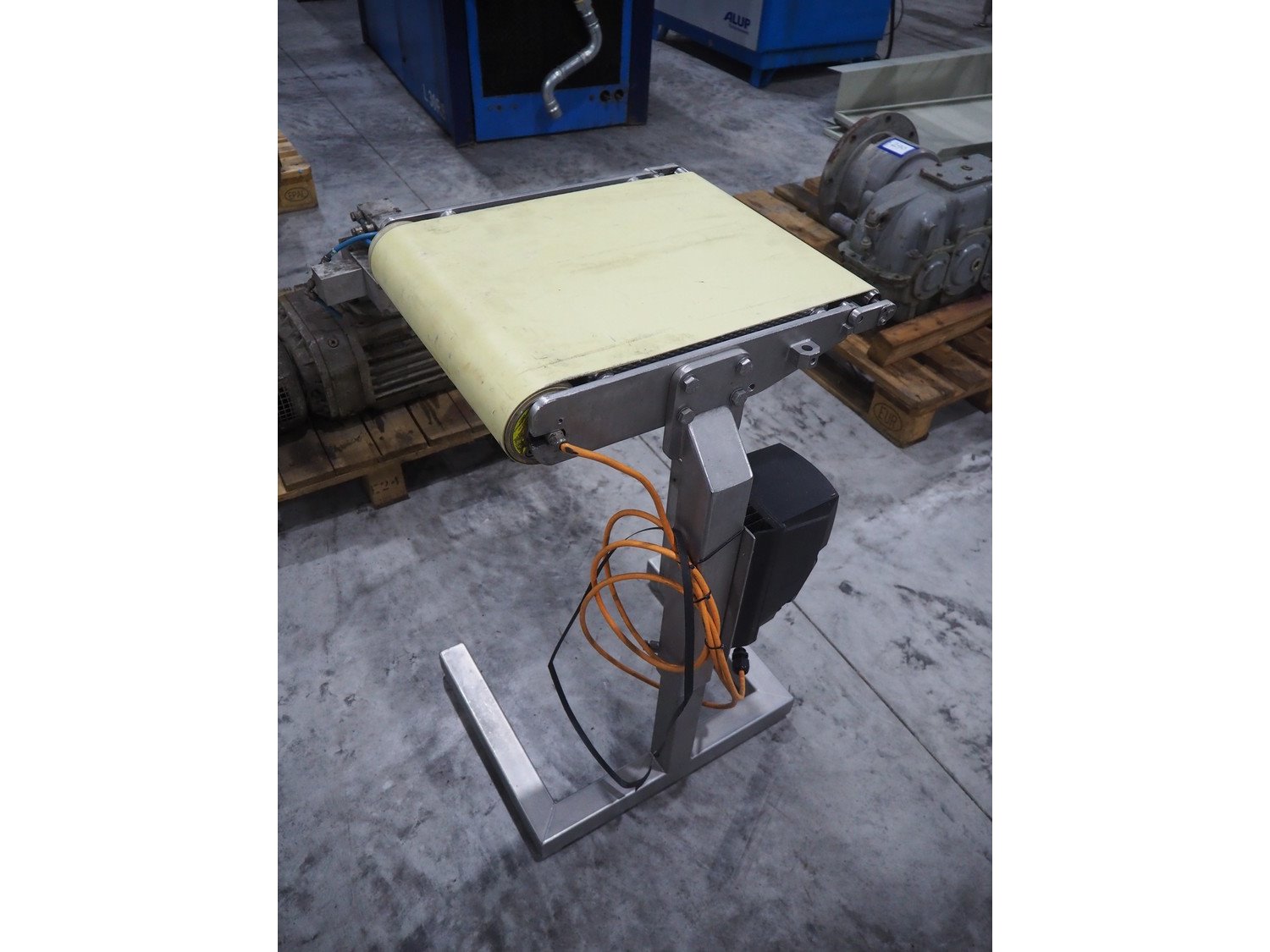 S/s transport belt, plastic belt, belt width: 375 mm, total dimensions: 530 mm x 500 mm x 850 mm.