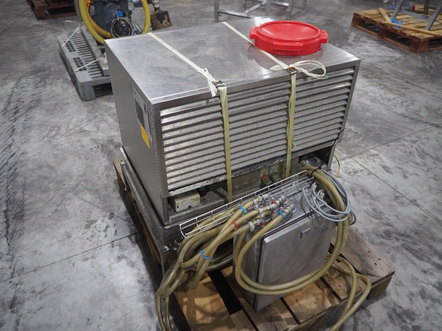 Hyfra cooling unit, type: VWK 7/1-s, machine number: 08060336, year of construction: 2008, 230 V, 1 Ph, 50 Hz, 4.90 A, 1.10 kW, refrigerant: R407C, 0.875 kg, dimensions: 750 m x 550 mm x 750 mm.