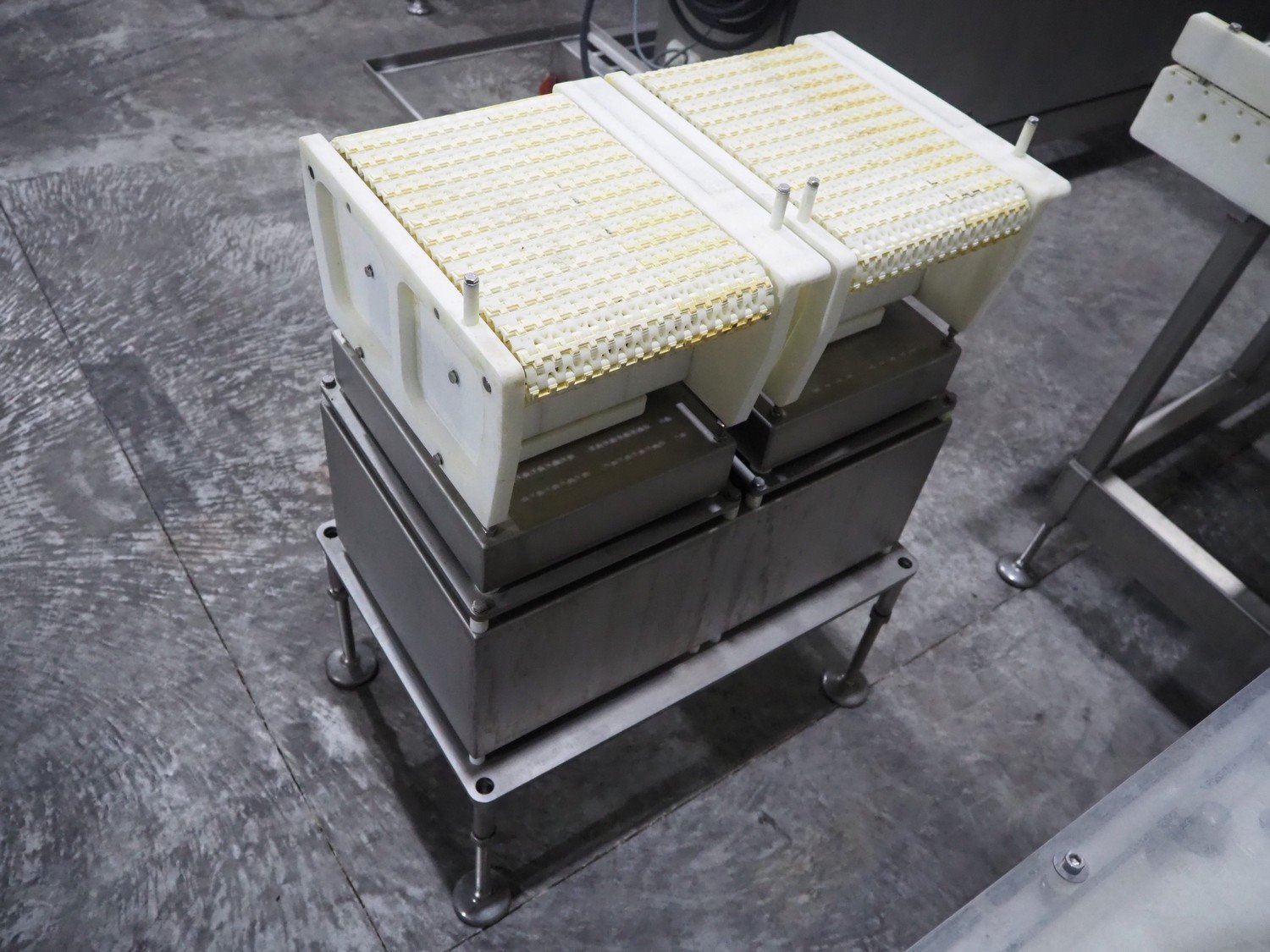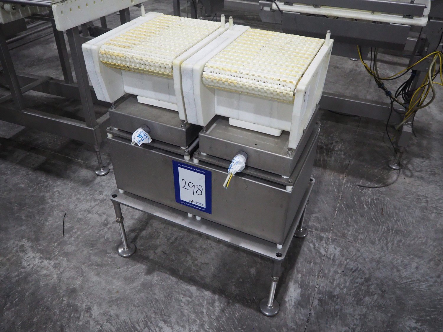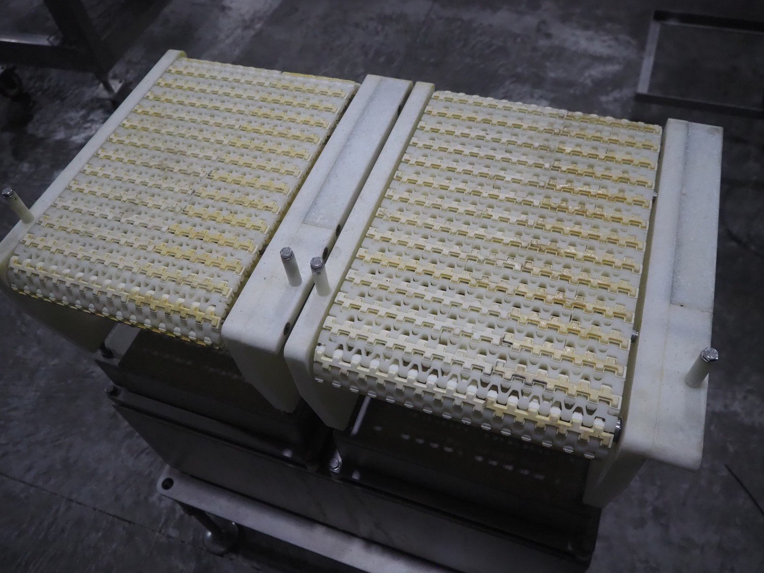Double weighing belt, plastic mesh belts, belt width: 250 mm, total dimensions: 700 mm x 470 mm x 970 mm.