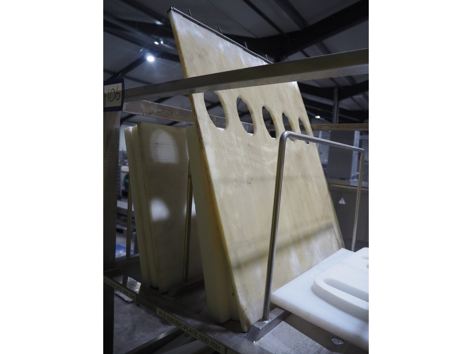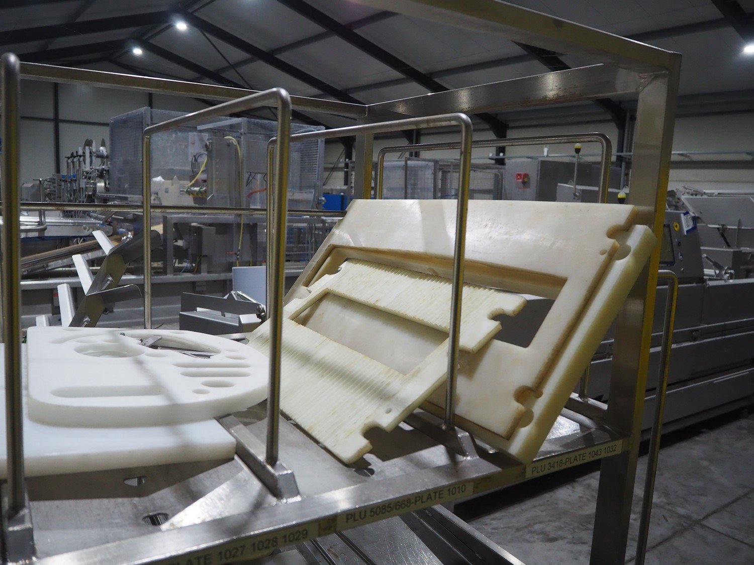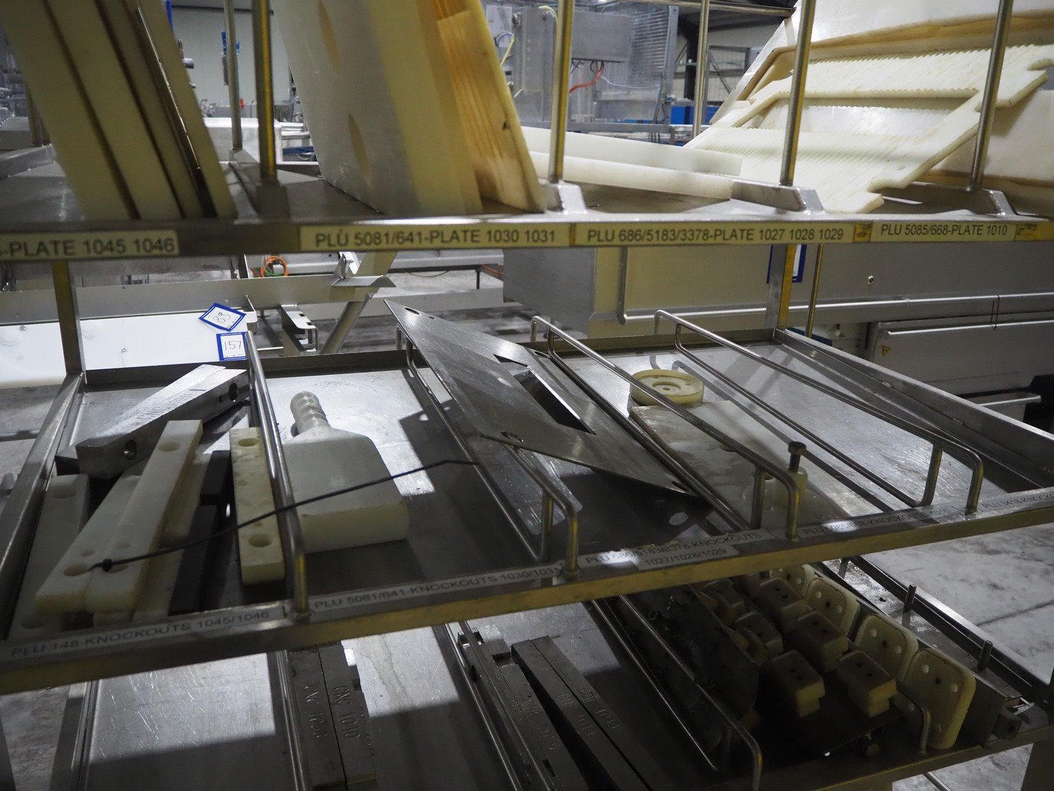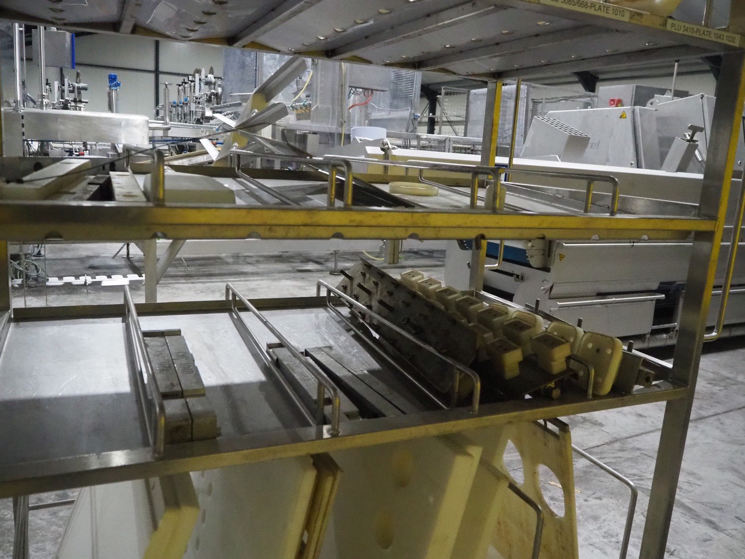 TVM mobile portioning machine, type: TVM - Portio 4000, serial number: 09-99.26445 138, year of construction: 1999, 400 V, 3 Ph, 50 Hz, 2.5 A, weight: 380 kg, plastic belt, belt width: 205 mm, total dimensions: 1600 mm x 1100 mm x 2100 mm. Including s/s trolley with parts, dimensions: 860 mm x 620 mm x 1800 mm.