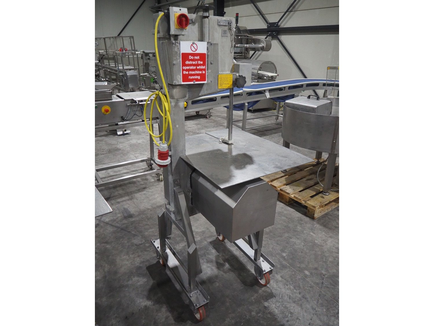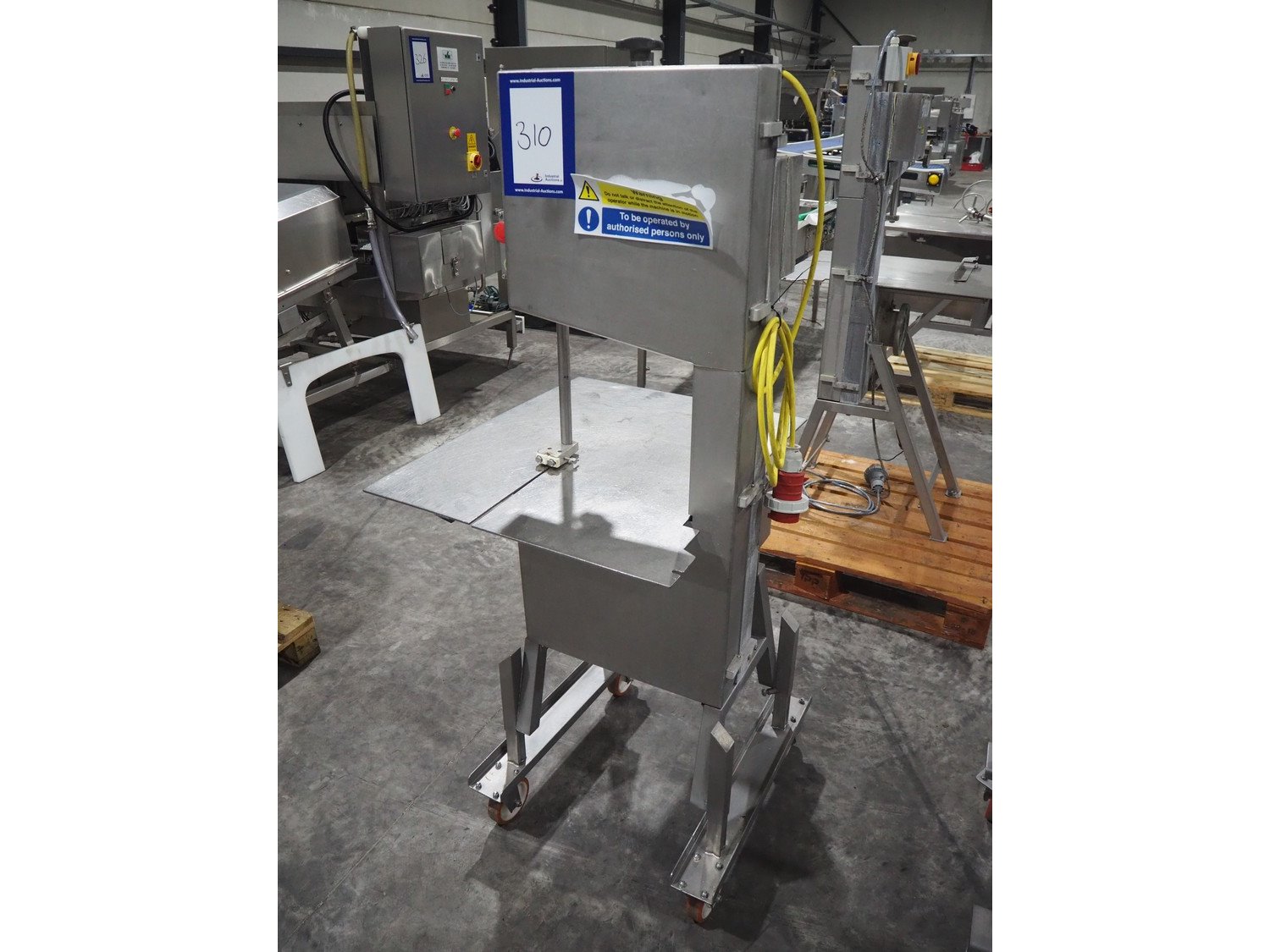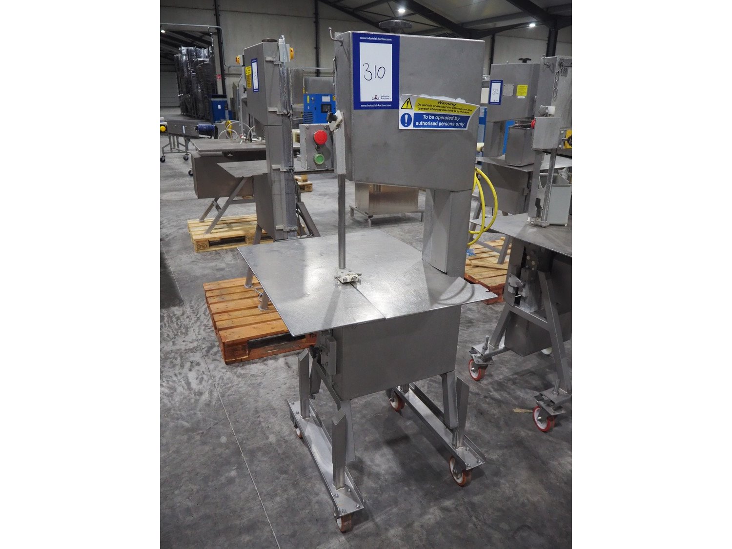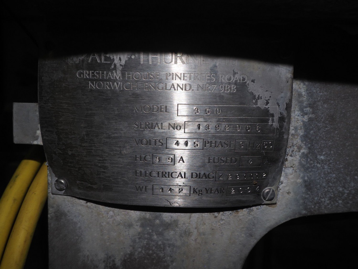 AEW Thurne Ltd mobile bandsaw, model: 350 bandsaw, serial number: 1392066, year of construction: 2004, 415 V, 3 Ph, 50 Hz, weight: 142 kg, table dimensions: 740 mm x 660 mm, total dimensions: 760 mm x 720 mm x 1750 mm. Incomplete, w ithout saw.