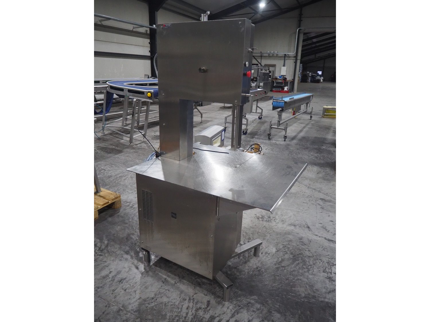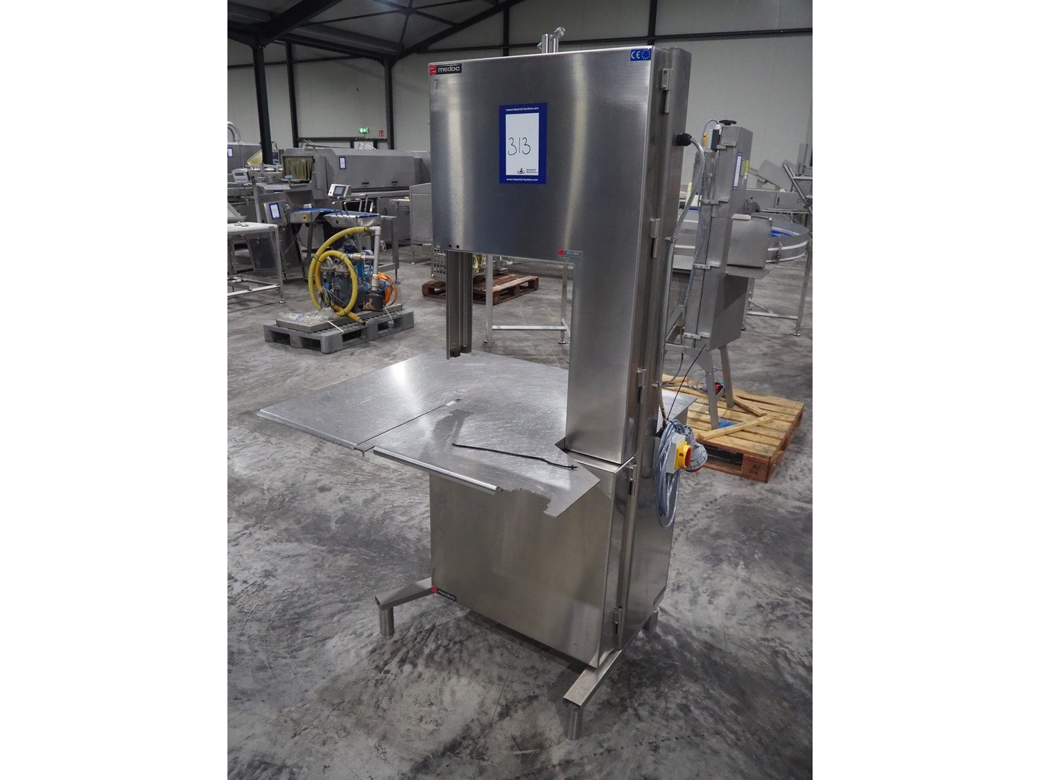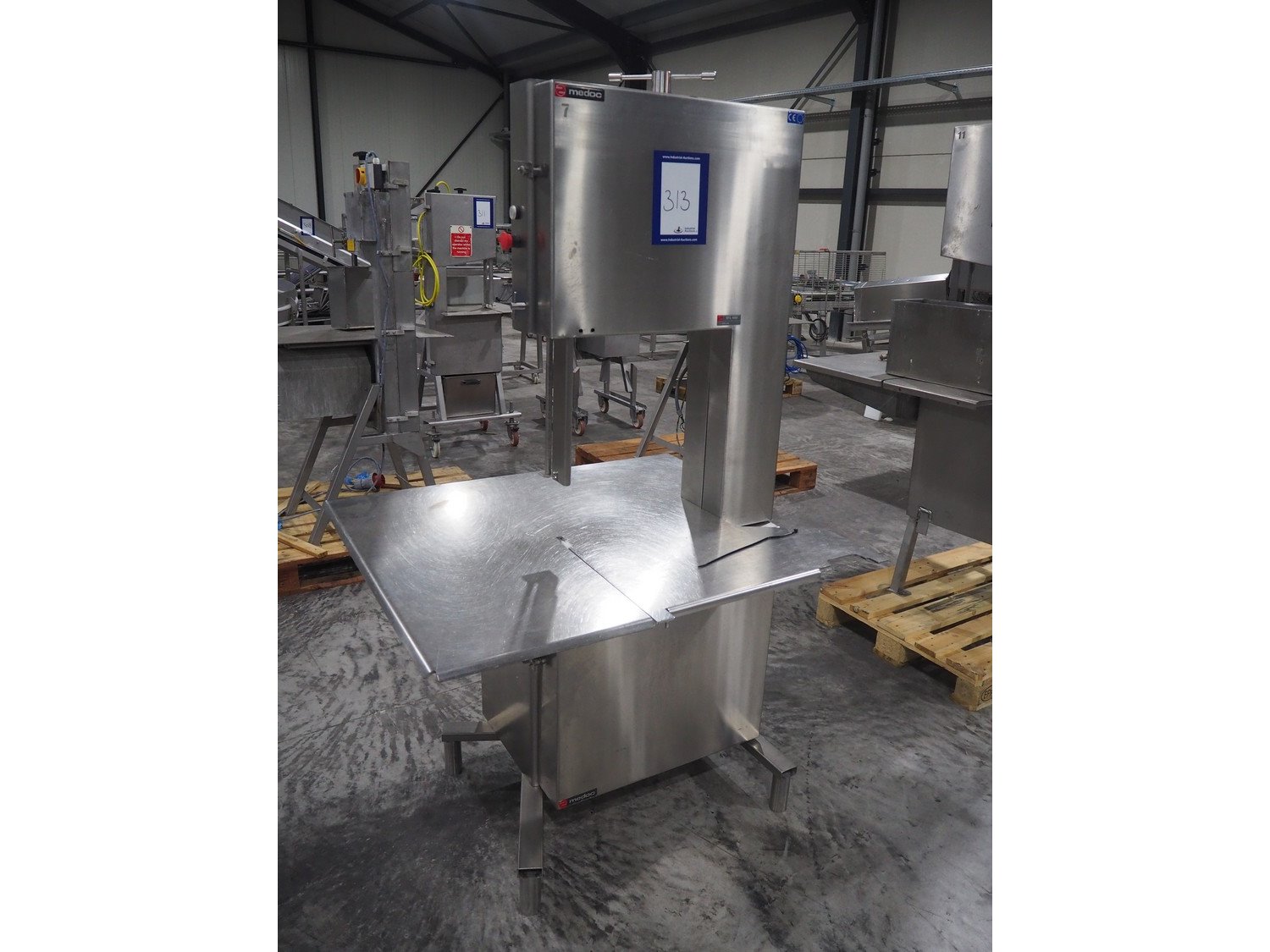 Medoc bandsaw, model: STL 480, table dimensions: 1080 mm x 940 mm, total dimensions: 1080 mm x 1060 mm x 1900 mm. Incomplete, w ithout saw.