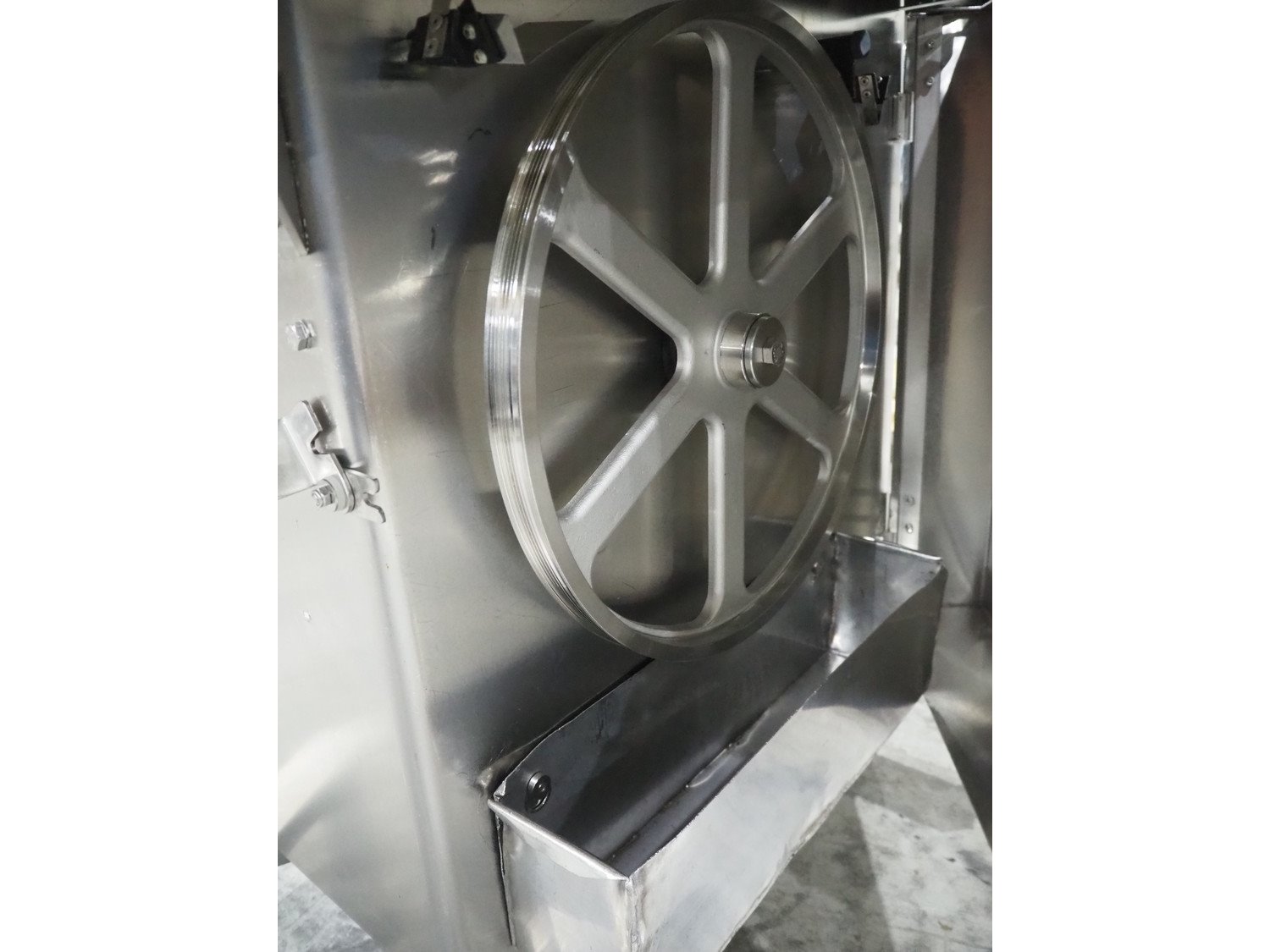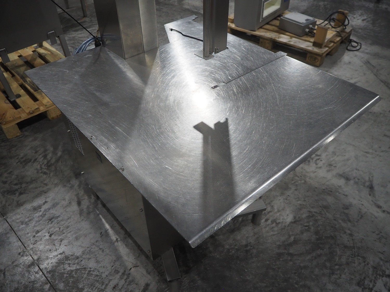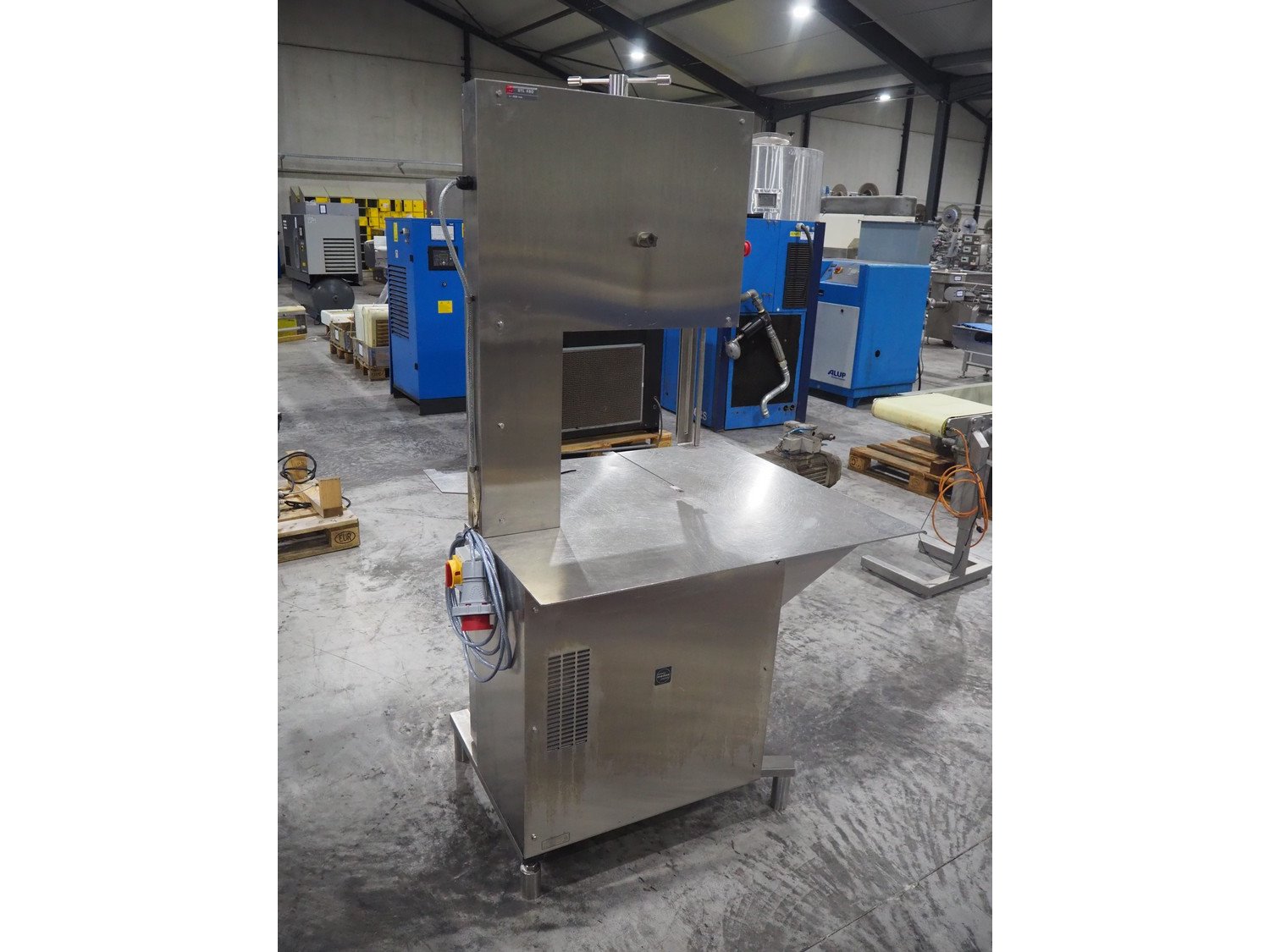 Medoc bandsaw, model: STL 480, table dimensions: 1080 mm x 940 mm, total dimensions: 1080 mm x 1060 mm x 1900 mm. Incomplete, w ithout saw.
