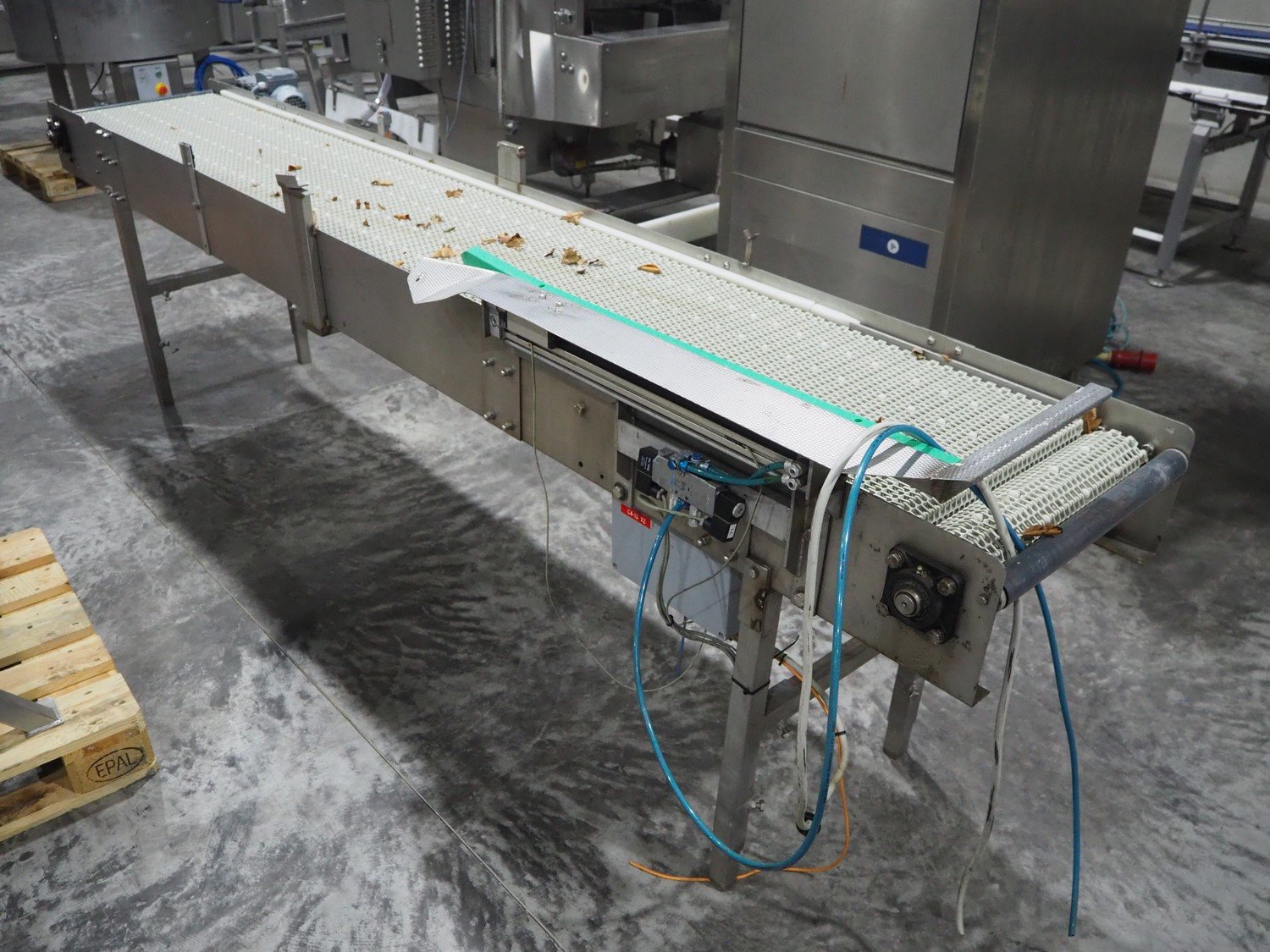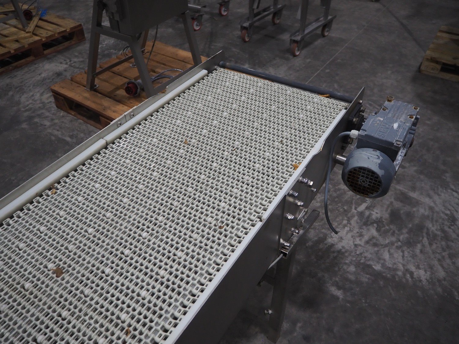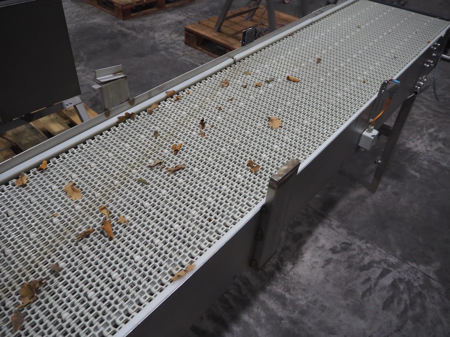 Transport belt, plastic mesh belt, belt width: 250 mm, total dimensions: 4350 mm x 560 mm x 1060 mm.