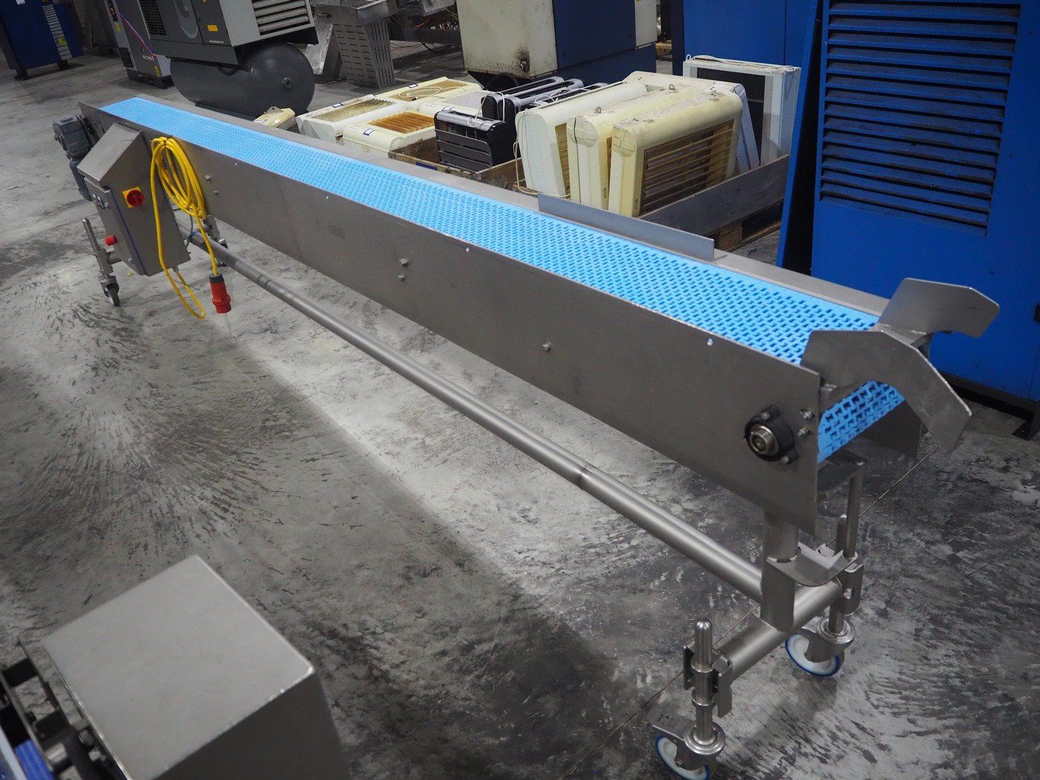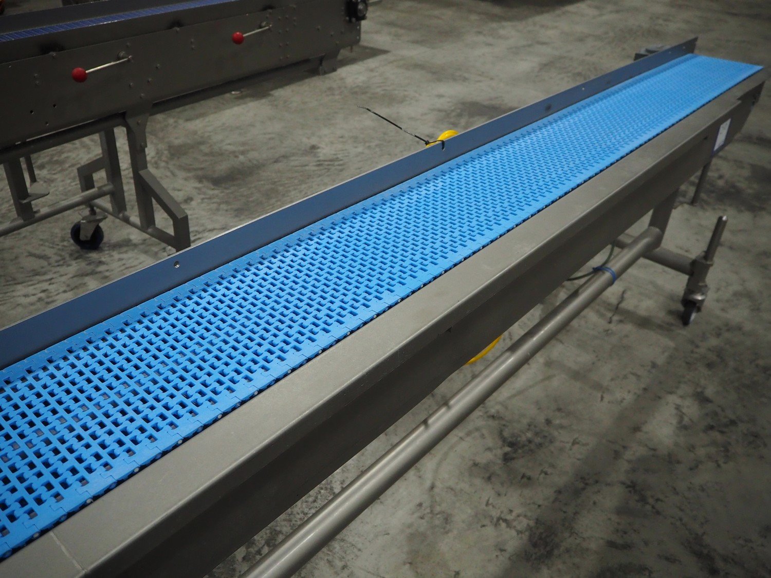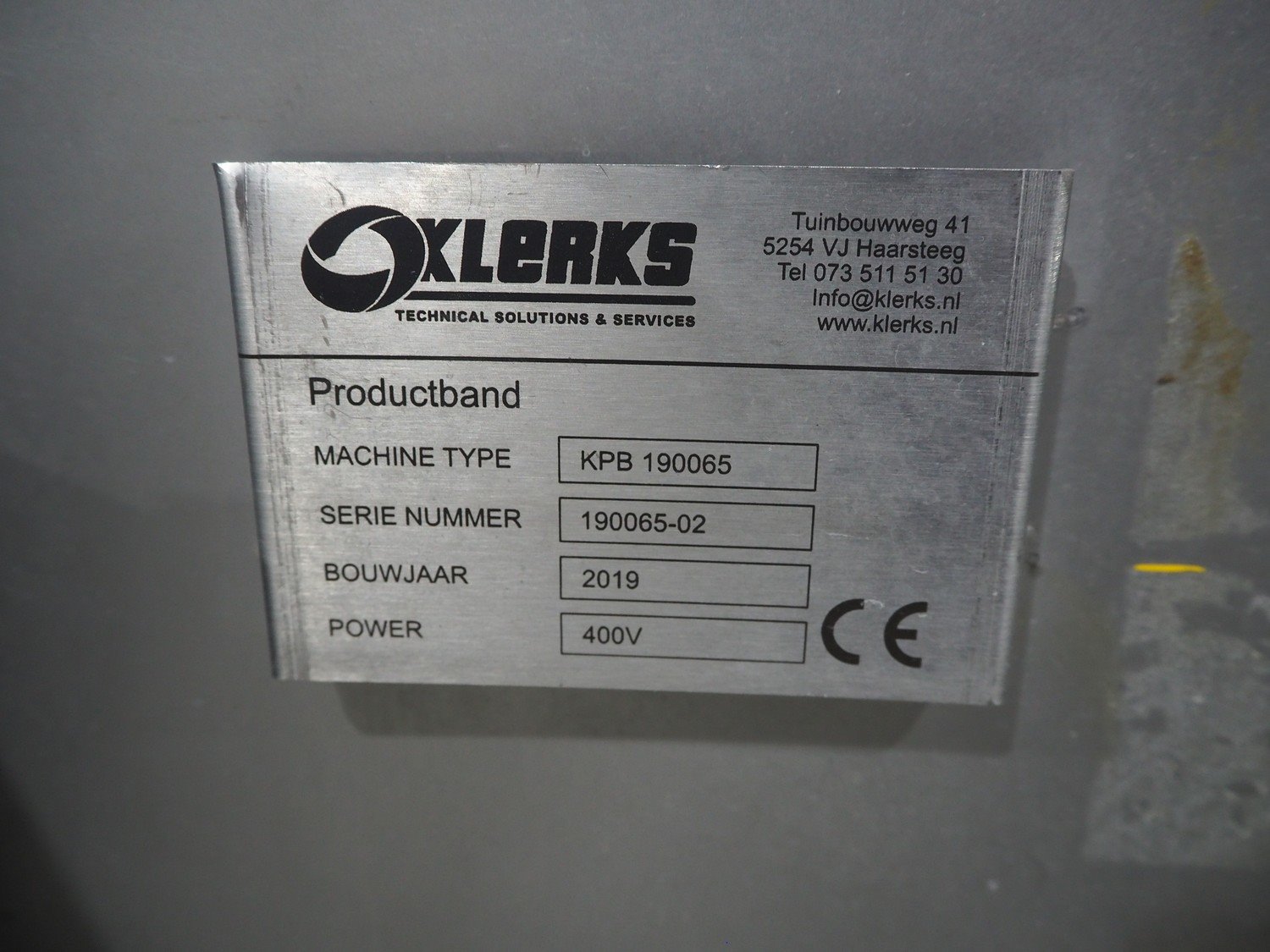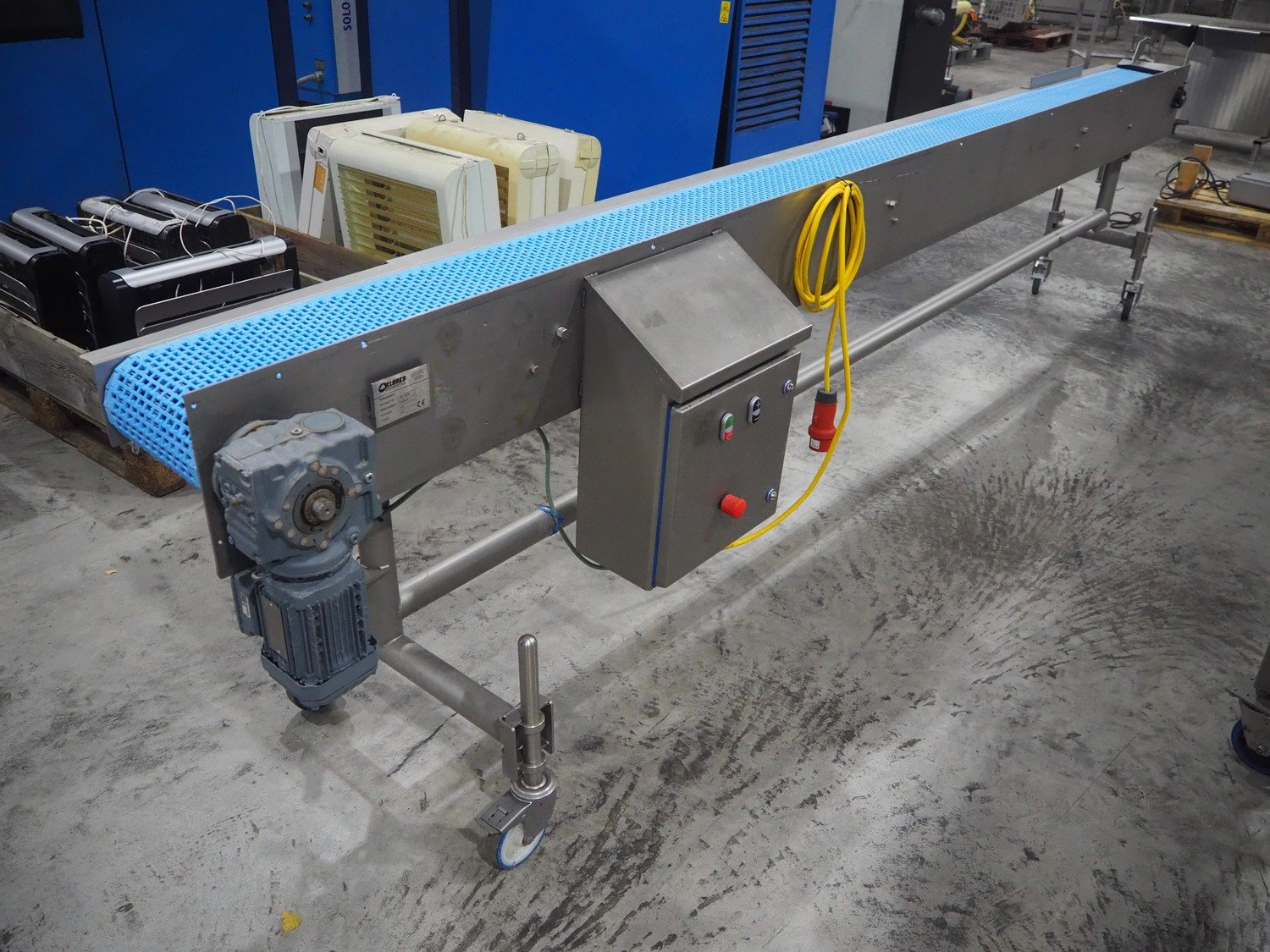 Klerks mobile transport belt, type: KPB 190065, serial number: 190065-02, year of construction: 2019, 400 V, plastic mesh belt, belt width: 250 mm, total dimensions: 4350 mm x 560 mm x 1050 mm.