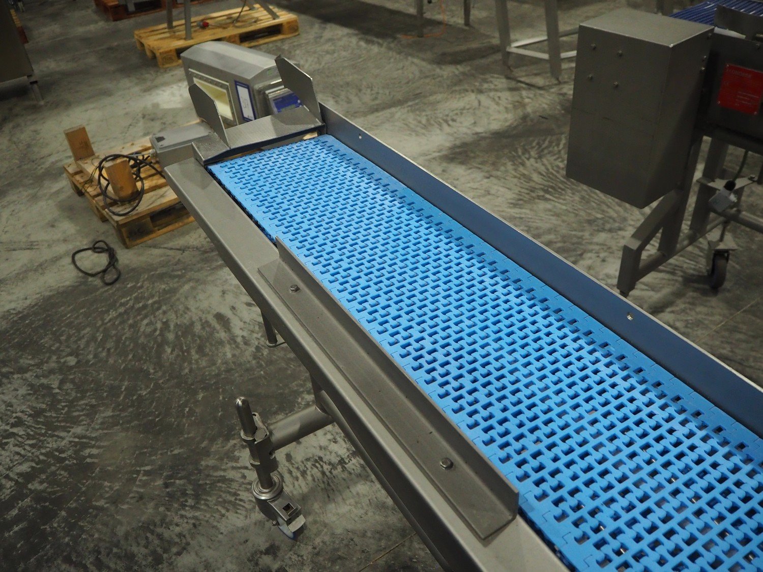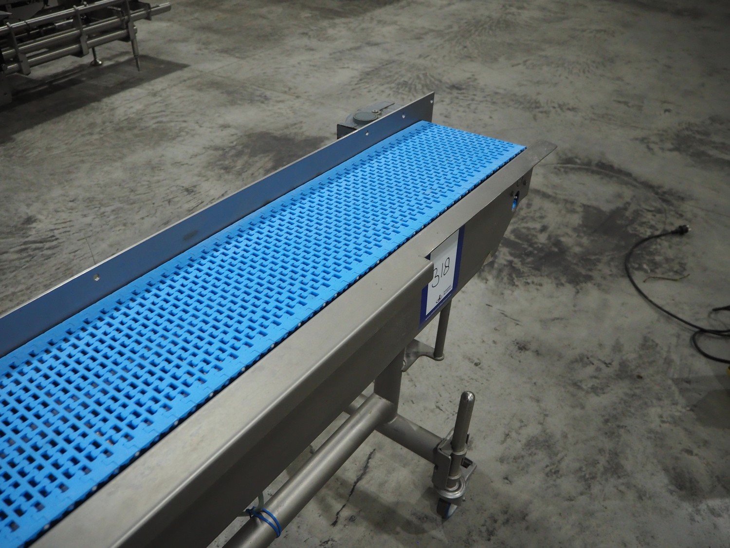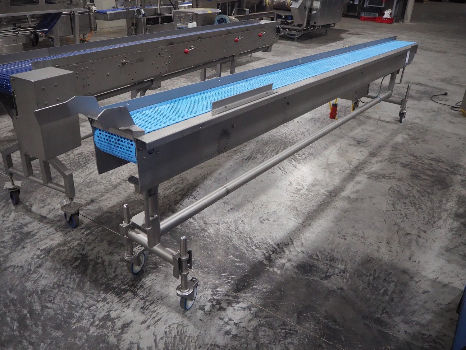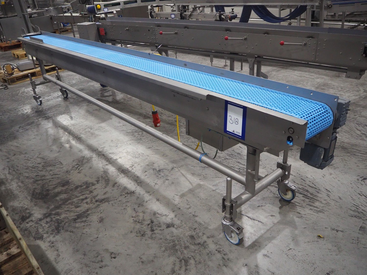 Klerks mobile transport belt, type: KPB 190065, serial number: 190065-02, year of construction: 2019, 400 V, plastic mesh belt, belt width: 250 mm, total dimensions: 4350 mm x 560 mm x 1050 mm.