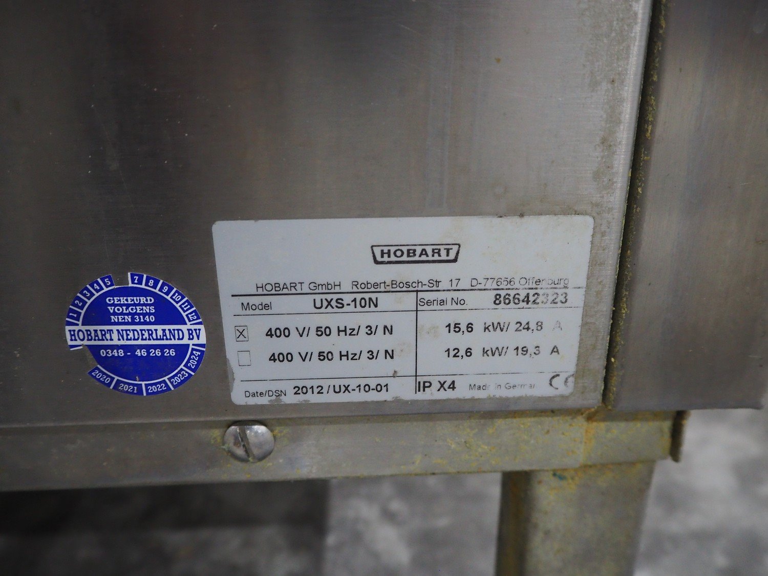 Hobart dishwasher, type: UXS-10N, serial number: 86642323, year of construction 2012, 400 V, 3 Ph, 50 Hz, 24,8 A, 15,6 kW, dimensions: 950 mm x 790 mm x 1980 mm.