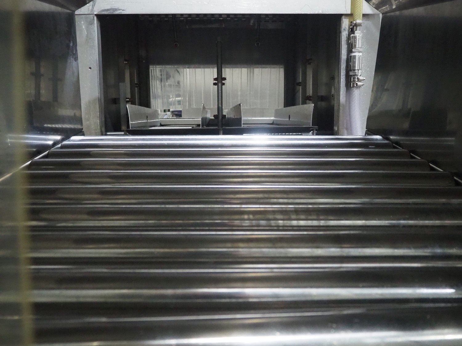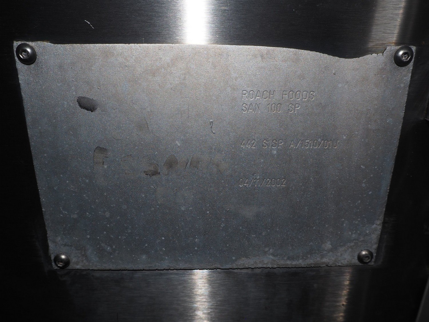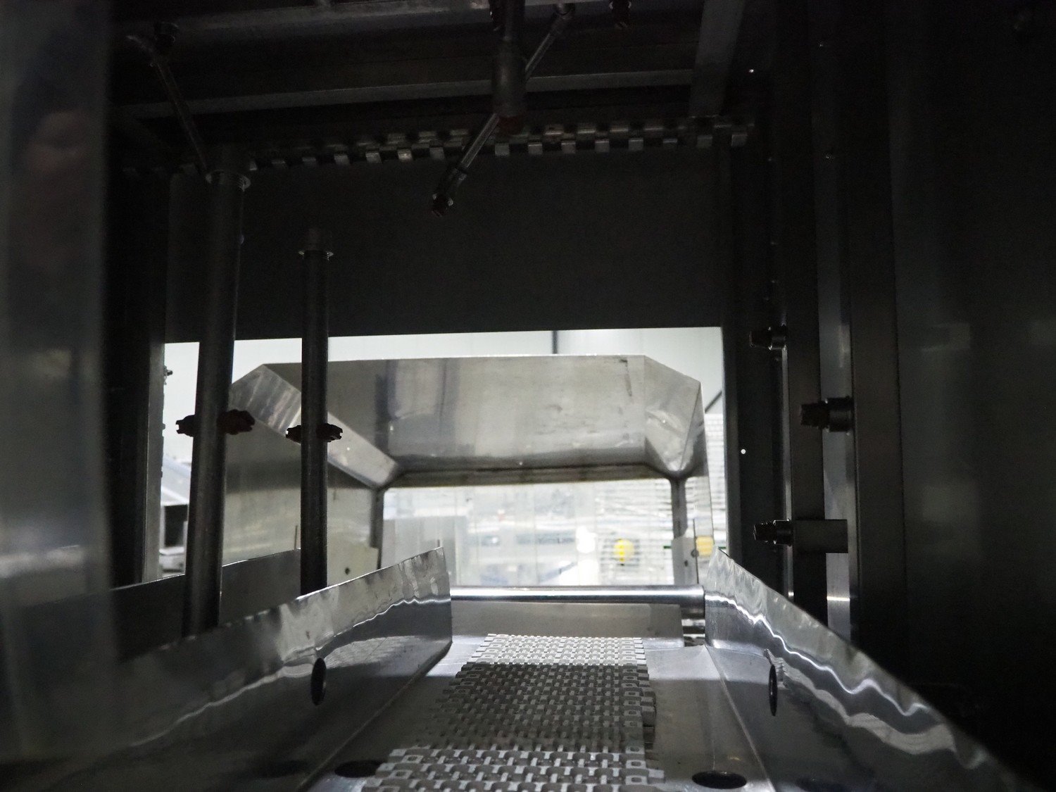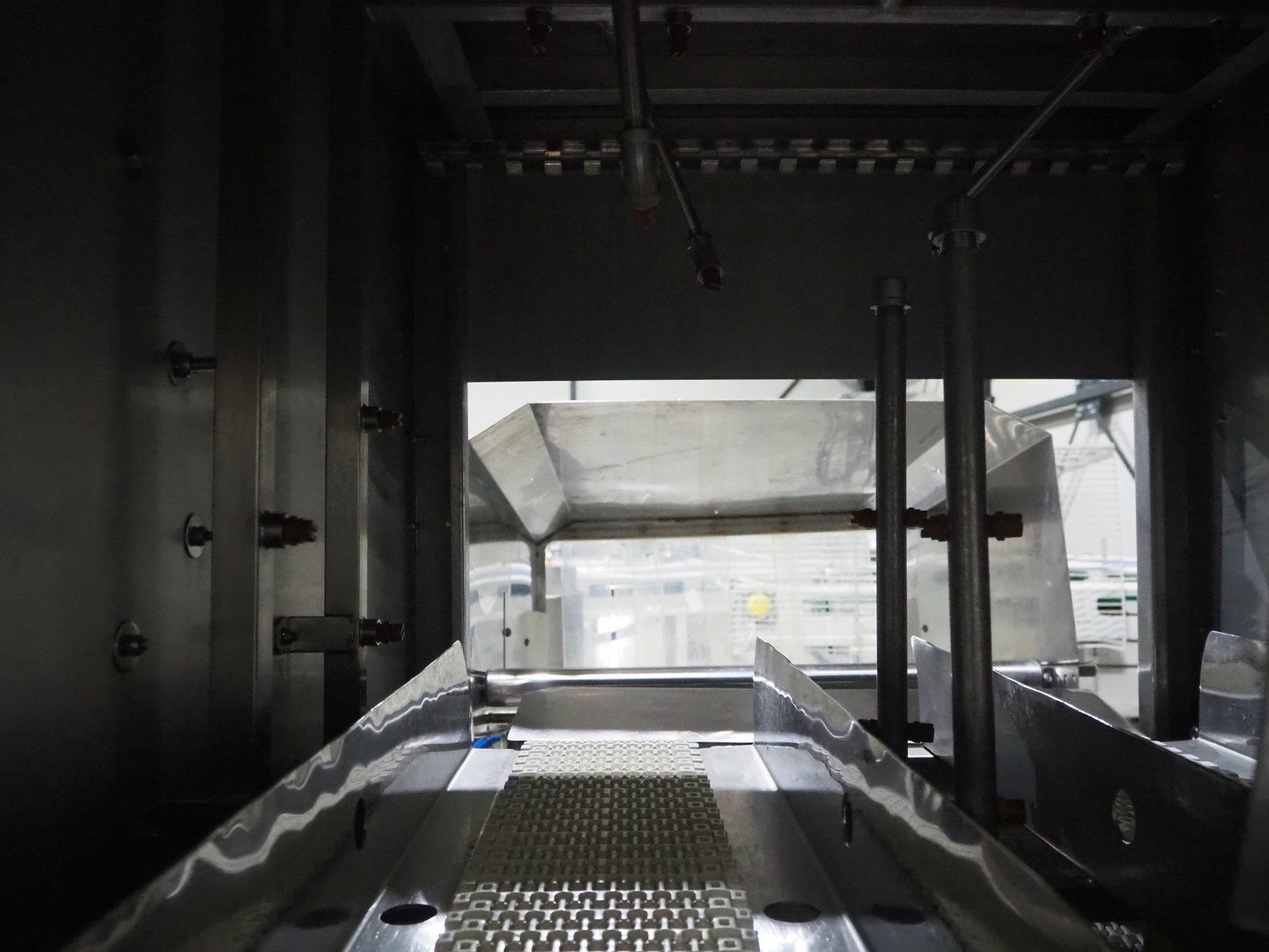 Industrial Washing Machines crate washer, type: SAN 100 SP, number: 442 S1SP A/1510/01U, year of construction: 04/11/2002, plastic mesh belt, belt width: (2x) 150 mm, clearance: (2x) 265 mm x 290 mm, total dimensions: 2500 mm x 1400 mm x 1950 mm.