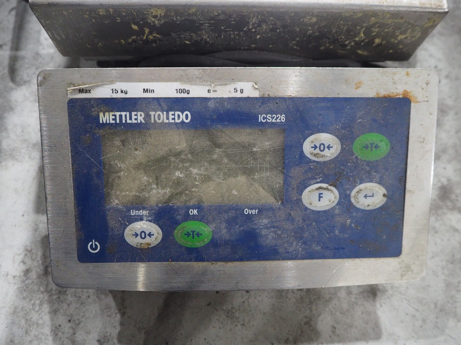Metler toledo weighing scale, model: ECS226, maximum weight: 15 kg, minimum weight: 100 g, e= 5g, dimensions scale: 230 mm x 230 mm, total dimensions: 380 mm x 330 mm x 105 mm.