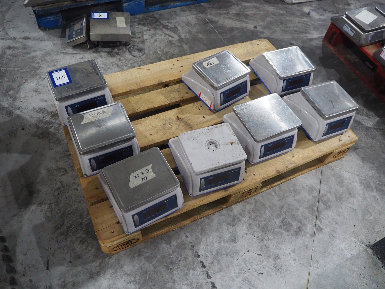 8 Baxtran weighing scales, model: SS15 CS, max: 15 kg, dimensions scale: 225 mm x 190 mm, total dimensions: 260 mm x 225 mm x 120 mm.
