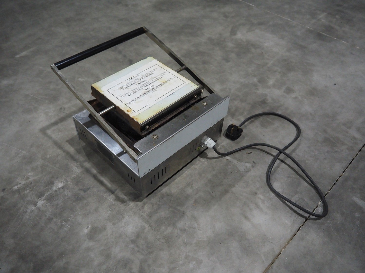 Parry Catering grill, model: Piastra Singola, serial number: 0321, year of construction: 01/2002, 230 V, 50 Hz, 3400 W, dimensions grill: 220 mm x 220 mm, total dimensions: 400 mm x 330 mm x 185 mm.