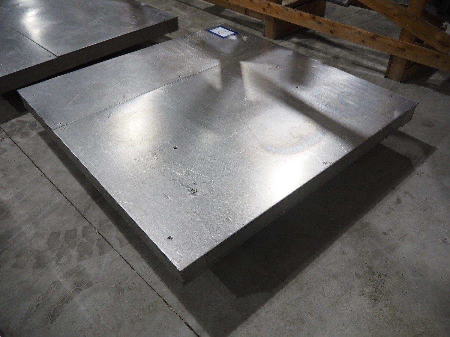 S/s floor weighing scale, dimensions: 1500 mm x 1500 mm x 105 mm. Without indicator.
