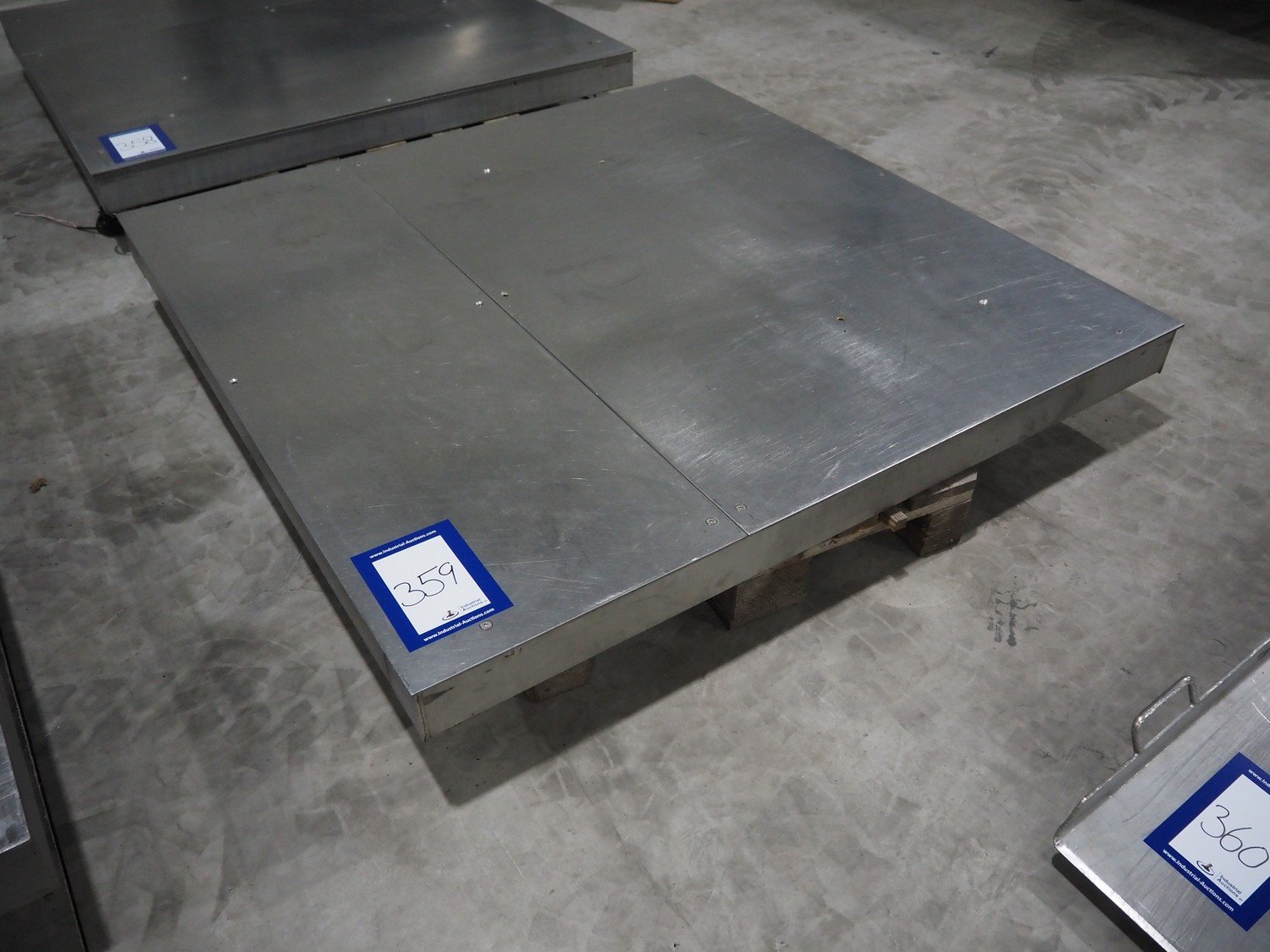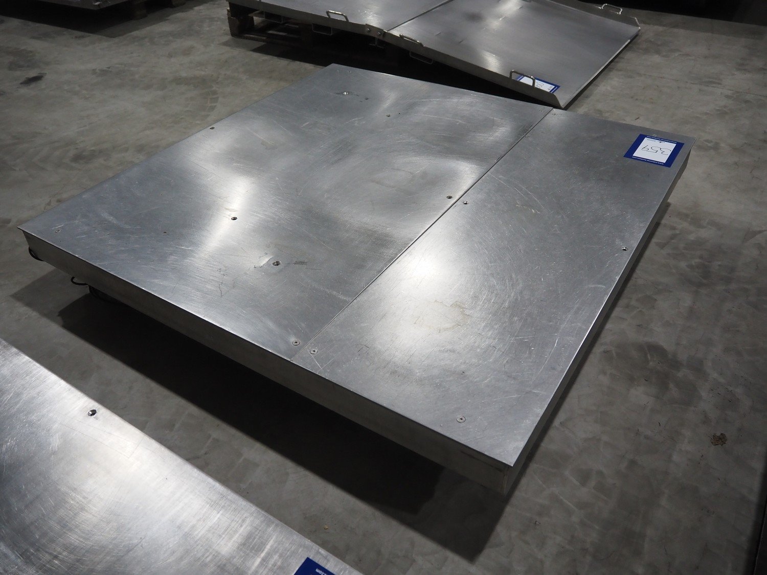 S/s floor weighing scale, dimensions: 1500 mm x 1500 mm x 105 mm. Without indicator.