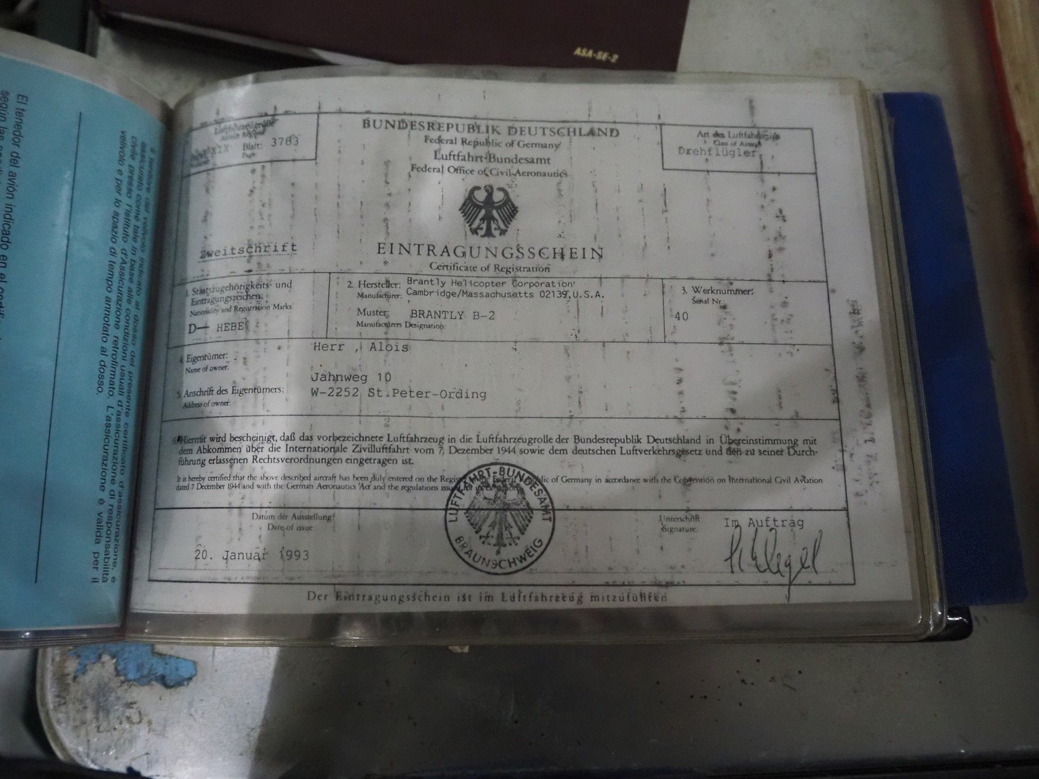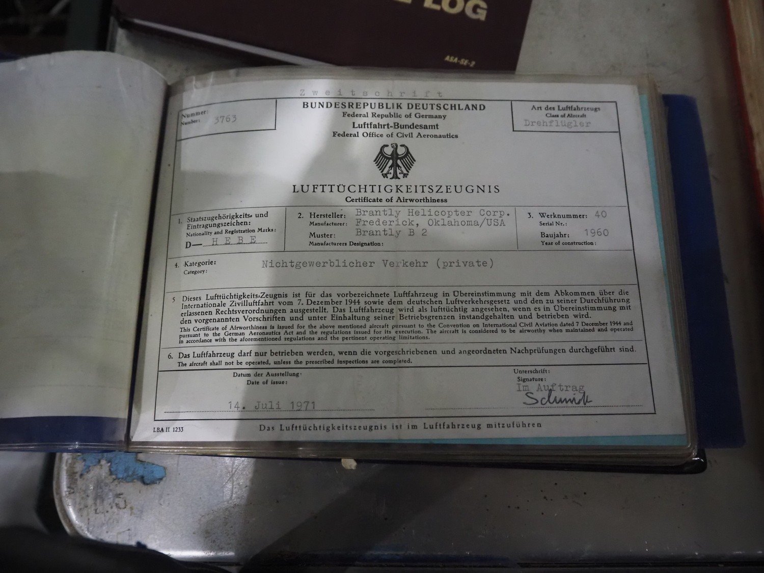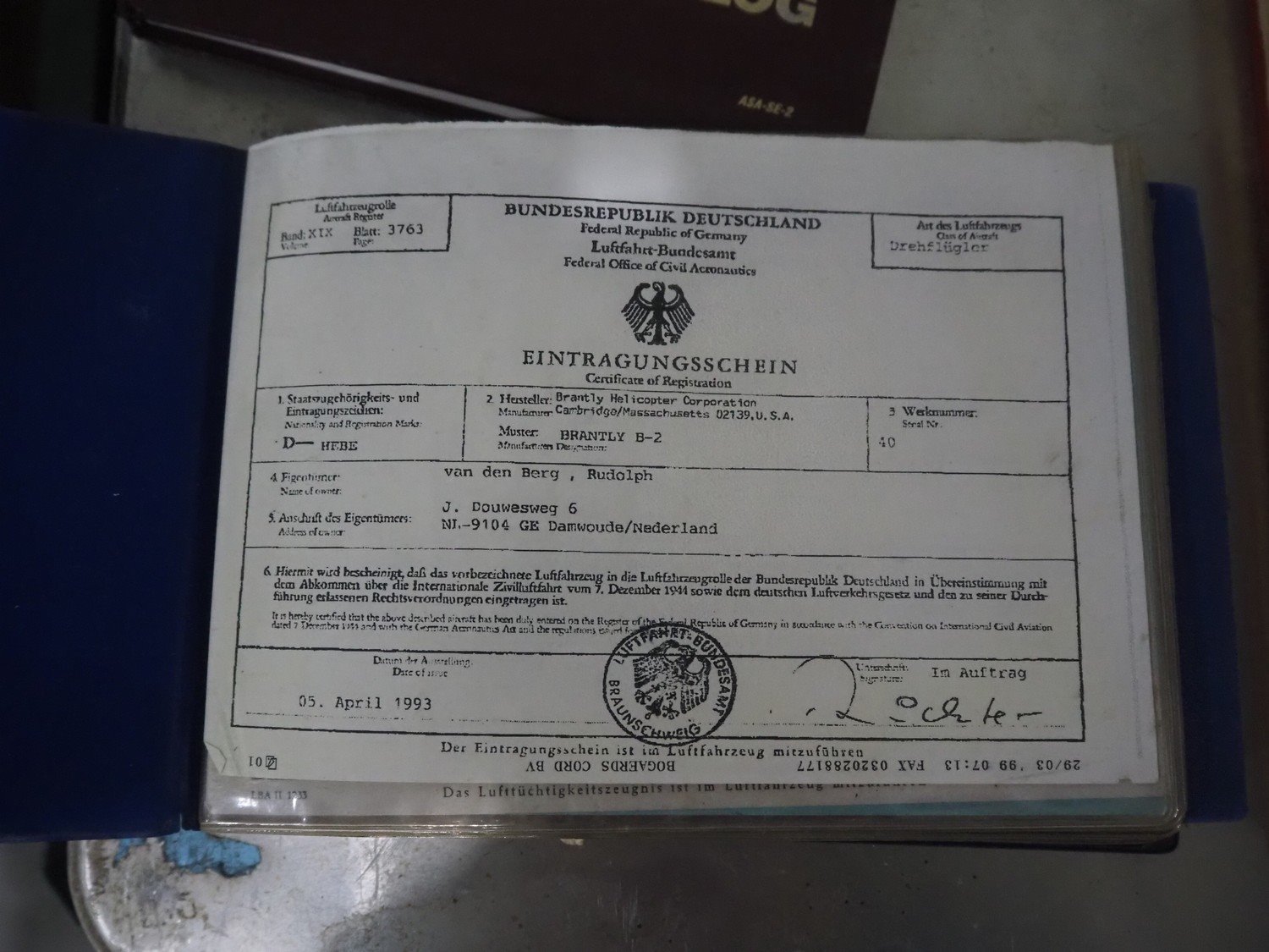 Brantly helicopter, model: B2, serial number: 40, year of construction: 05-1960, including 3 pallet boxes with various parts, and the blades.