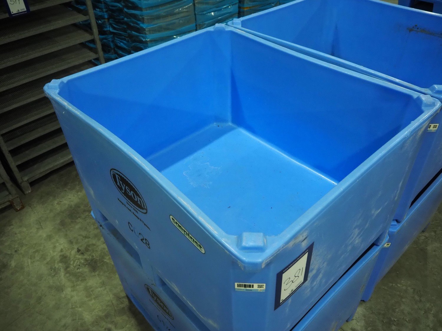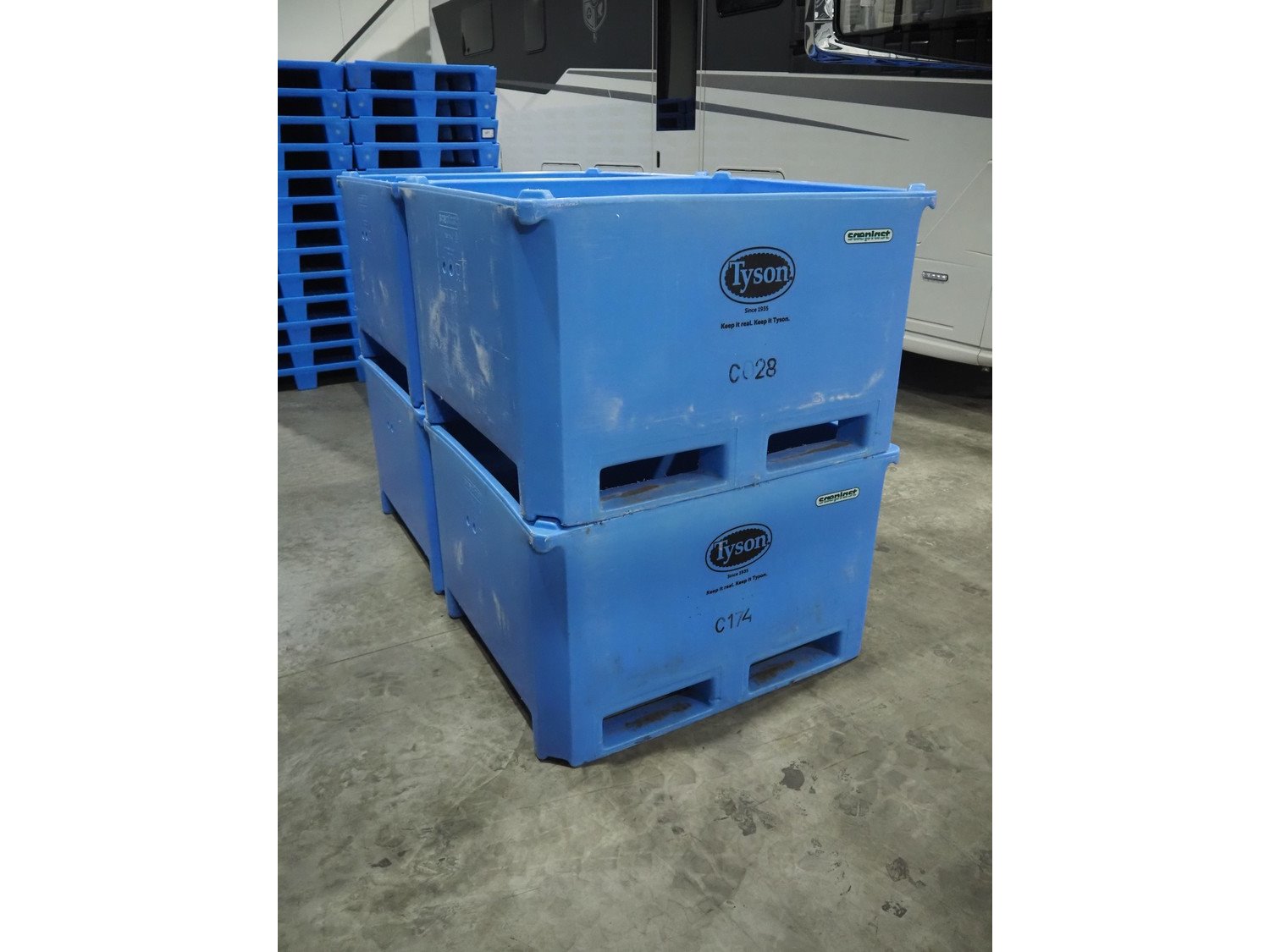 4 Saeplast pallet boxes, inside dimensions: (4x) 1135 mm x 935 mm x 570 mm.