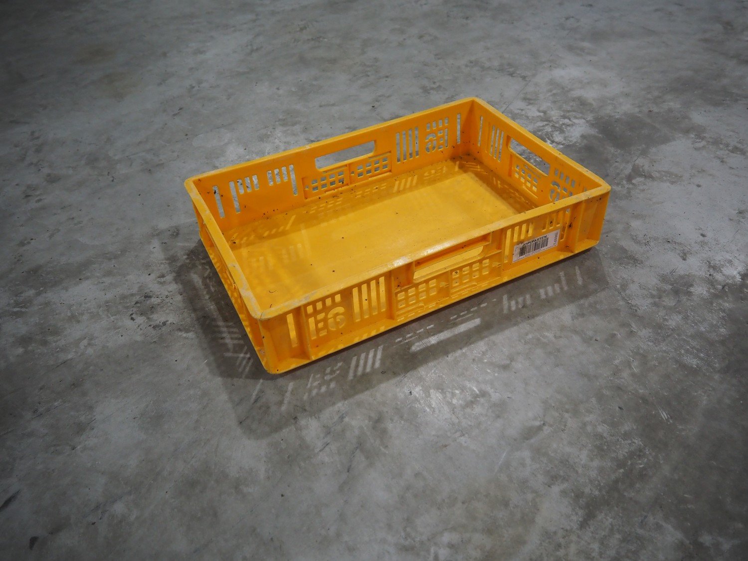 5 pallets with plastic crates, approximately 308 crates in total, crate dimensions: 590 mm x 390 mm x 110 mm, total dimensions: (5x) 1200 mm x 800 mm x 1810 mm.