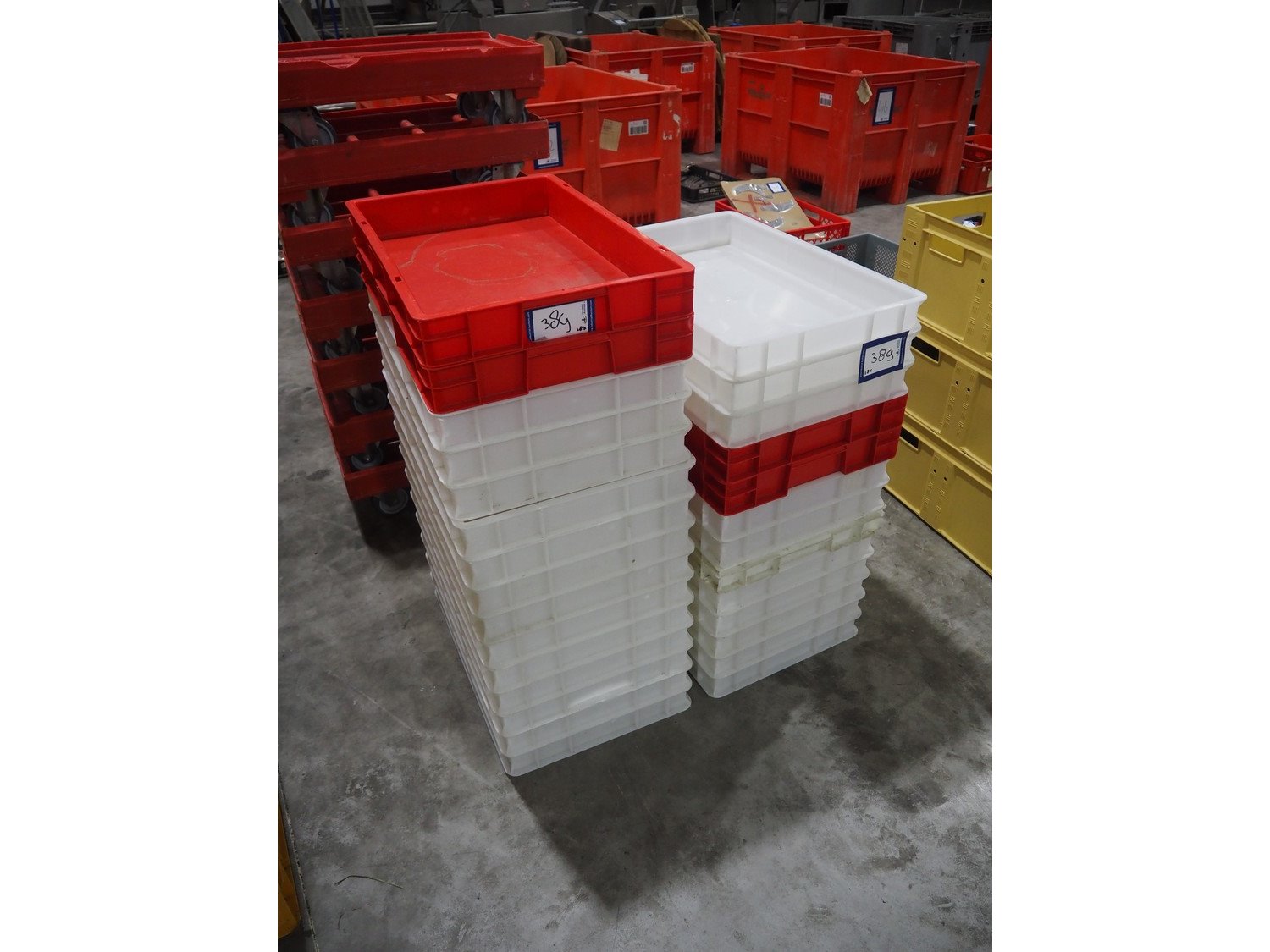 28 plastic crates, crate dimensions: 600 mm x 400 mm x 60 mm.