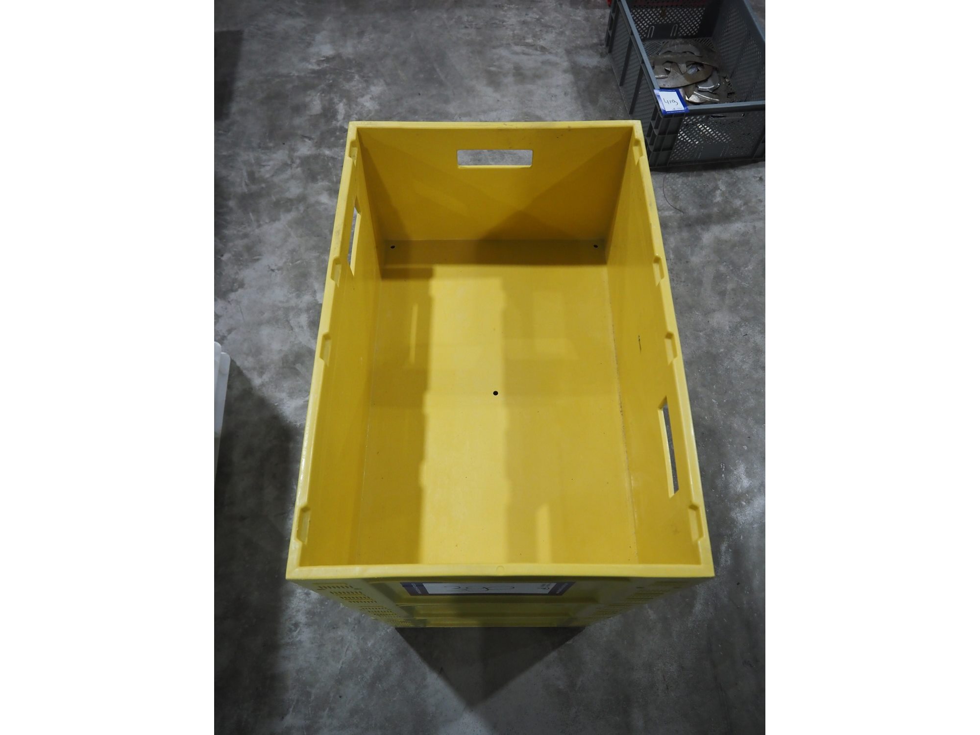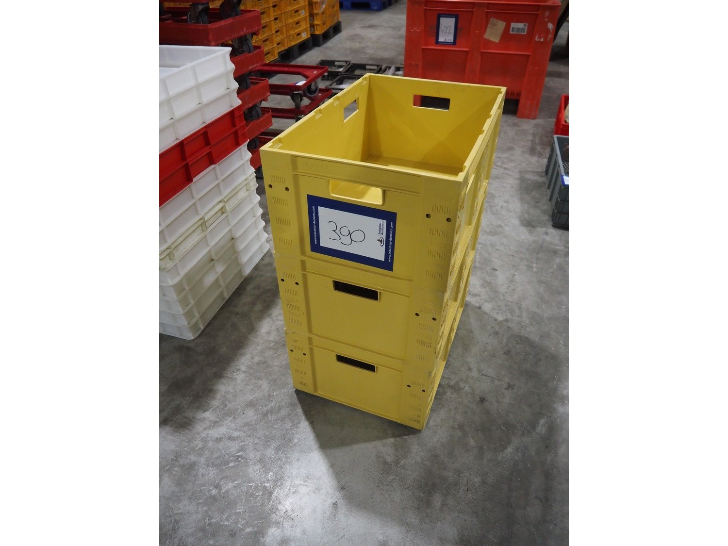 3 plastic crates, crate dimensions: 600 mm x 380 mm x 245 mm.