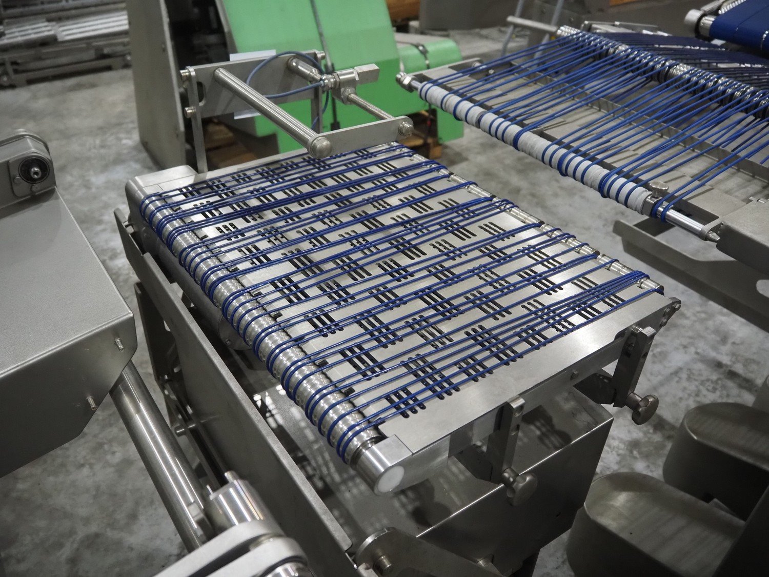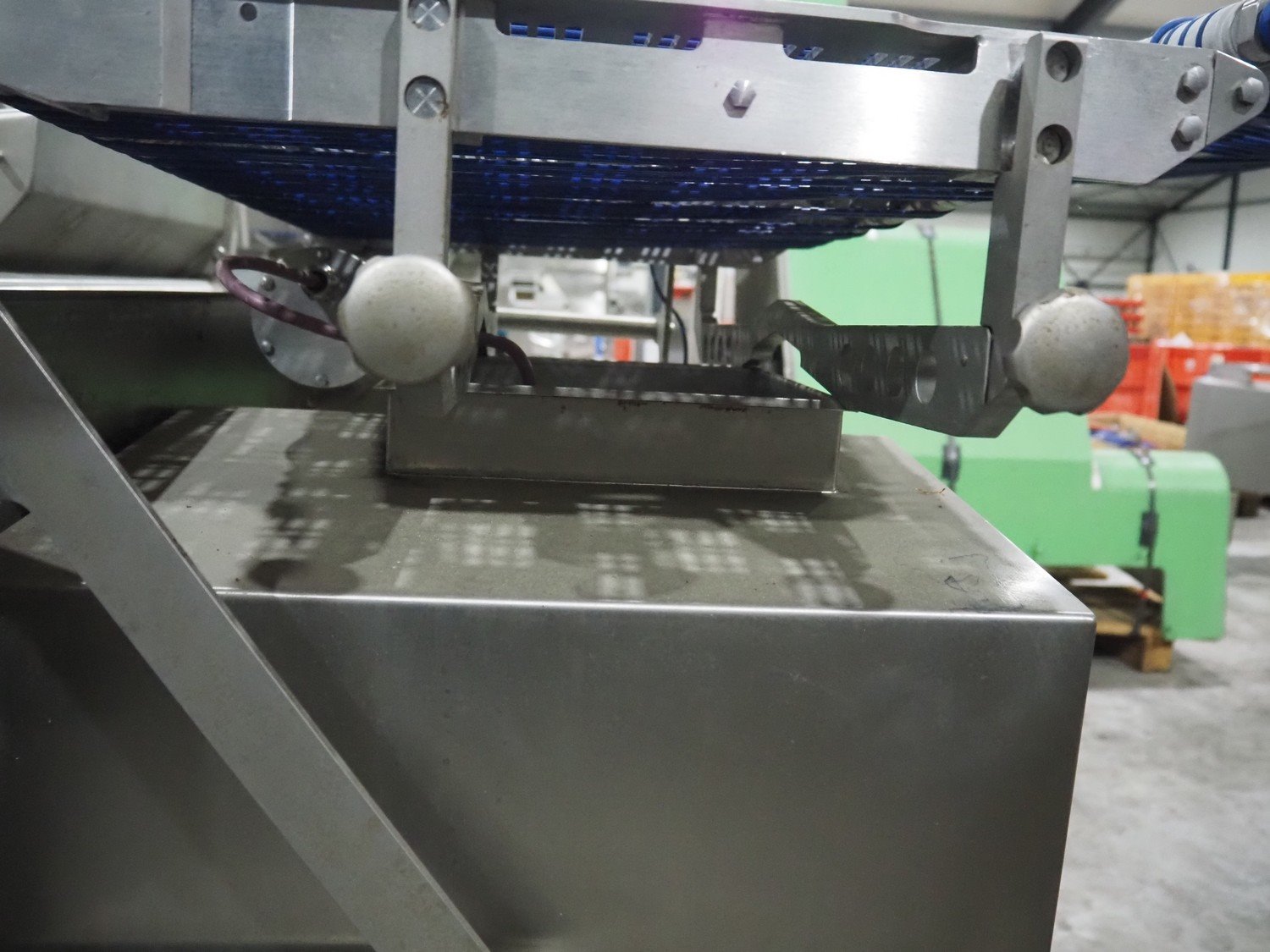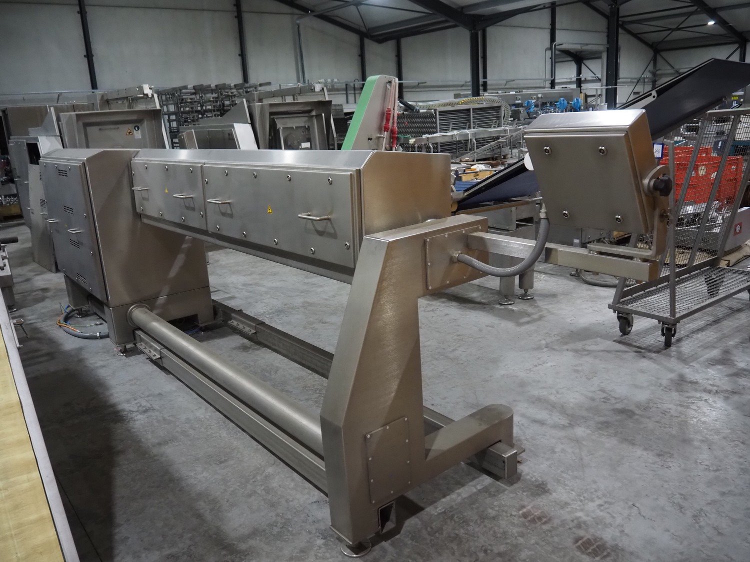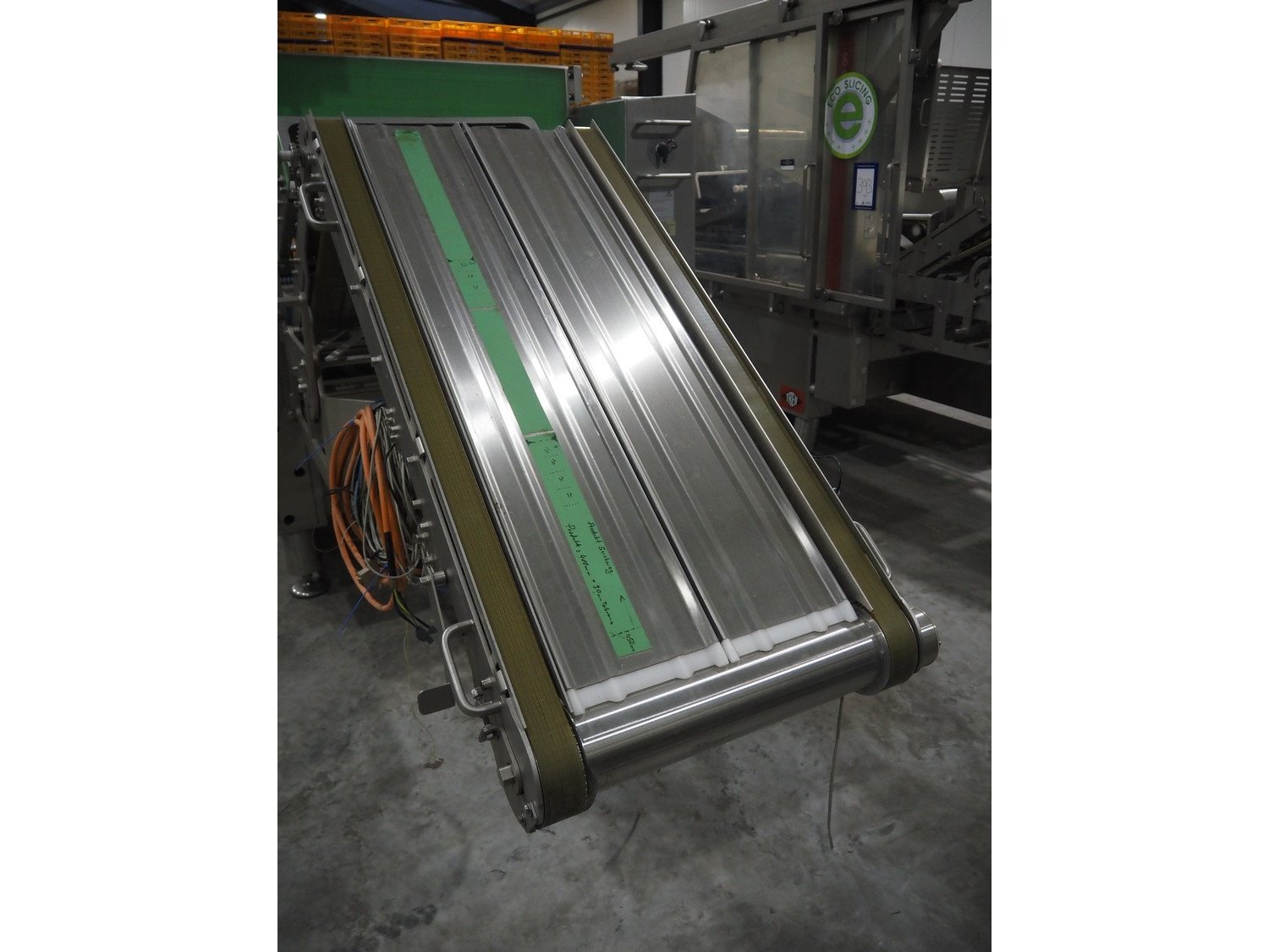 Treif Maschinenbau GmbH slicer line, consisting of: Slicer, model: Divider 880, machine number: 541304.184670.118165, year of construction: 2013, 400 V, 3 Ph, 50/60 Hz, 19 A, 2 lanes, plastic wire belt, belt width: 480 mm, dimensions: 5450 mm x 1950 mm x 2300 mm. Tray feeder line, model: Einlegerlinie, machine number: 430001.184789.116682, year of construction: 2013, 400 V, 3 Ph, 50/60 Hz, 24 A, 13 kW, weight: 2300 kg, plastic belt, belt width: 540 mm, dimensions tray feeder line: 5500 mm x 1760 mm x 1660 mm. Technical condition unkown.