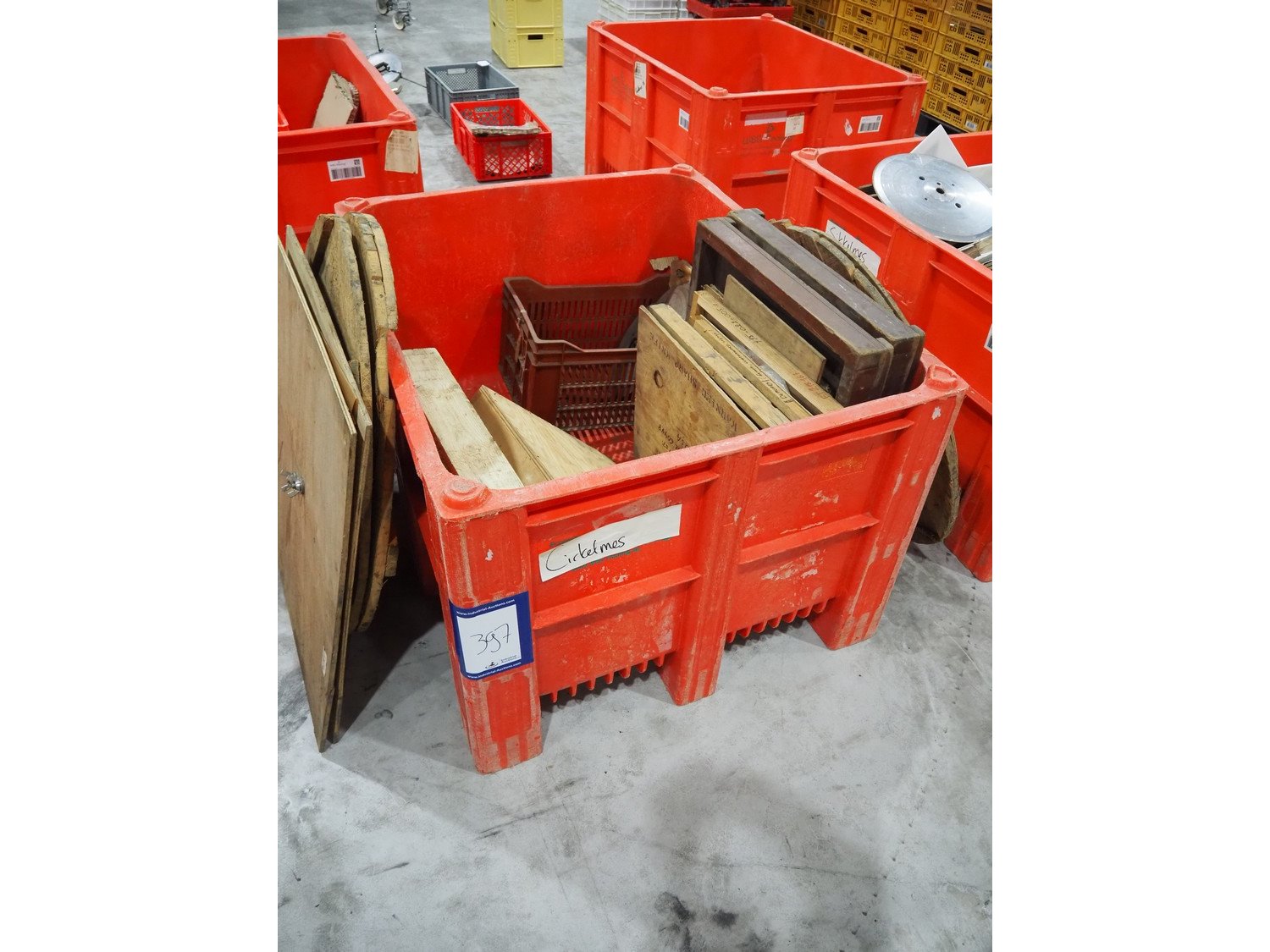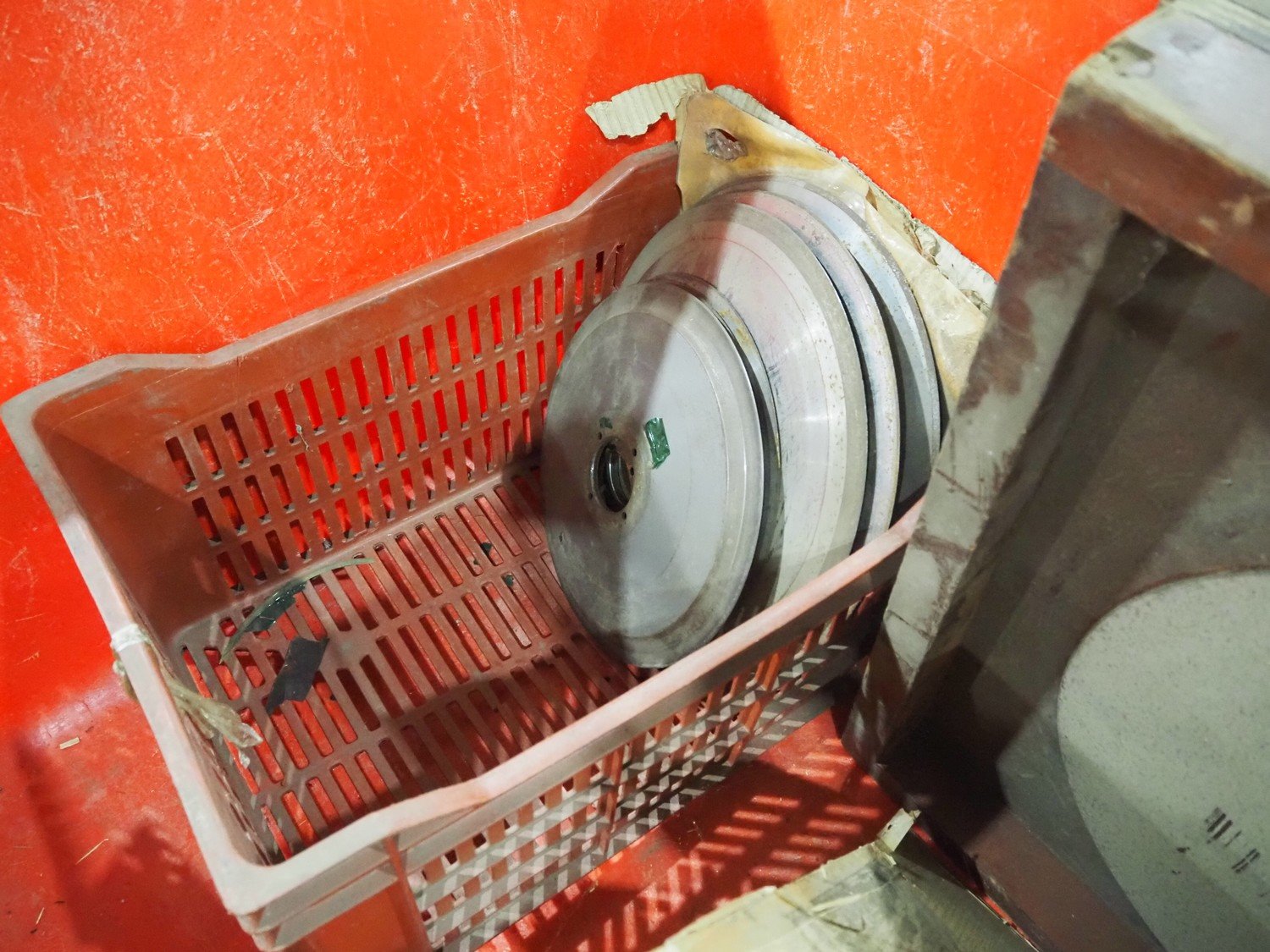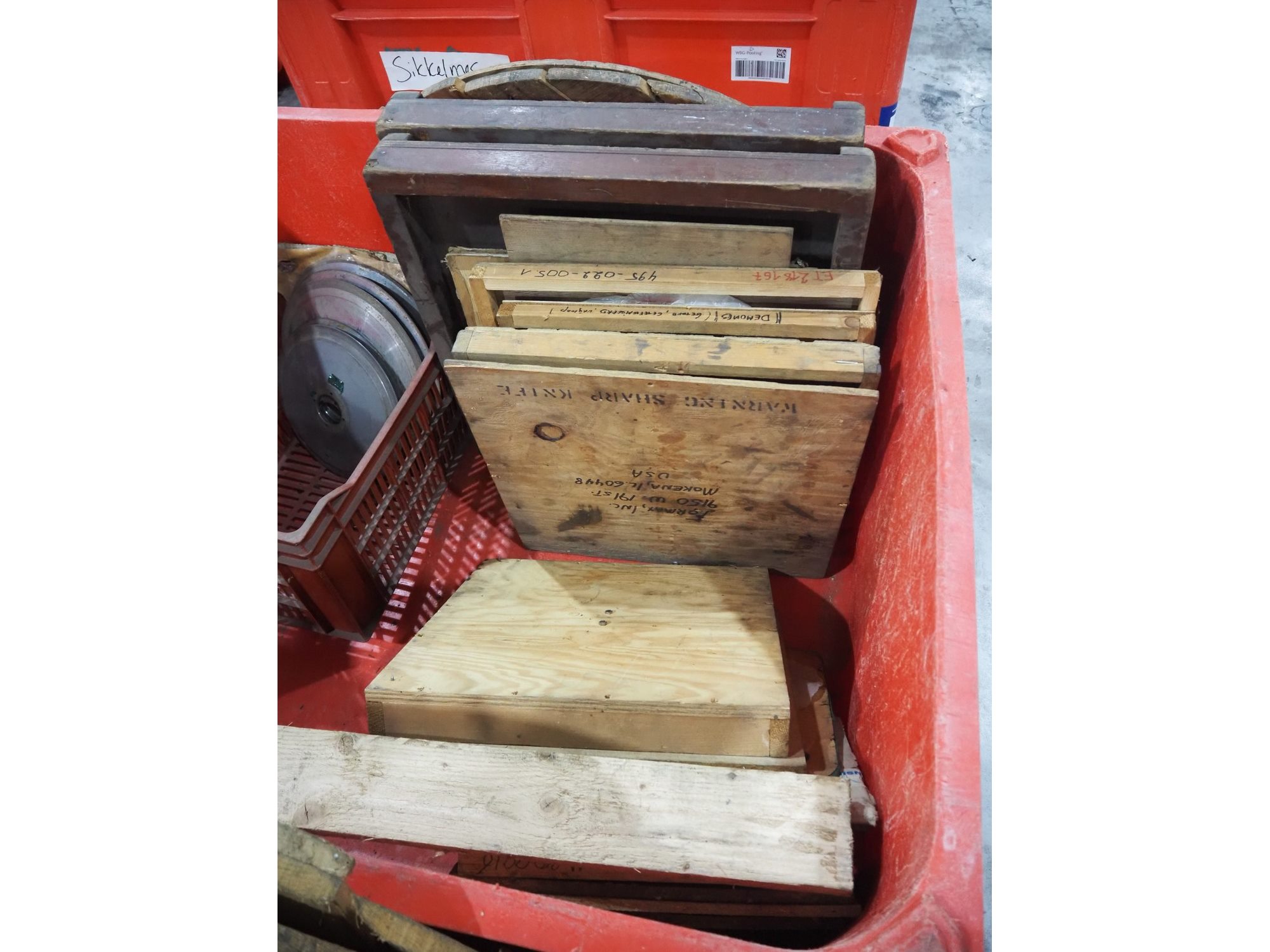 Plastic pallet box with various knifes for slicers.