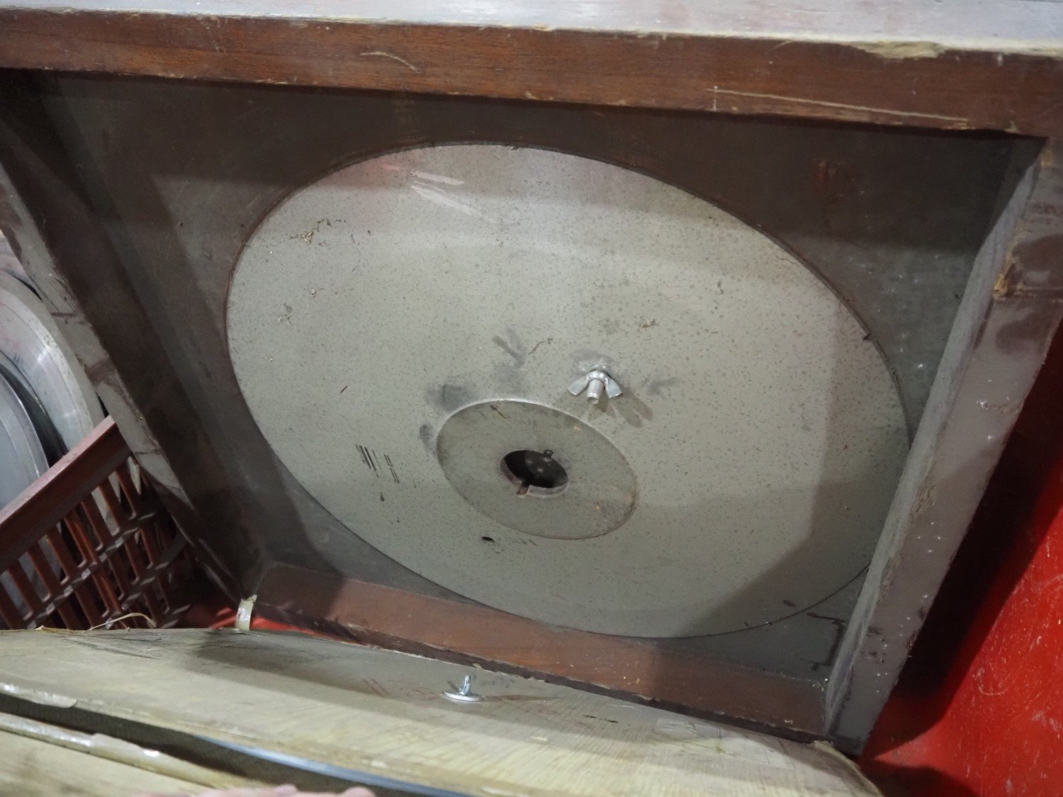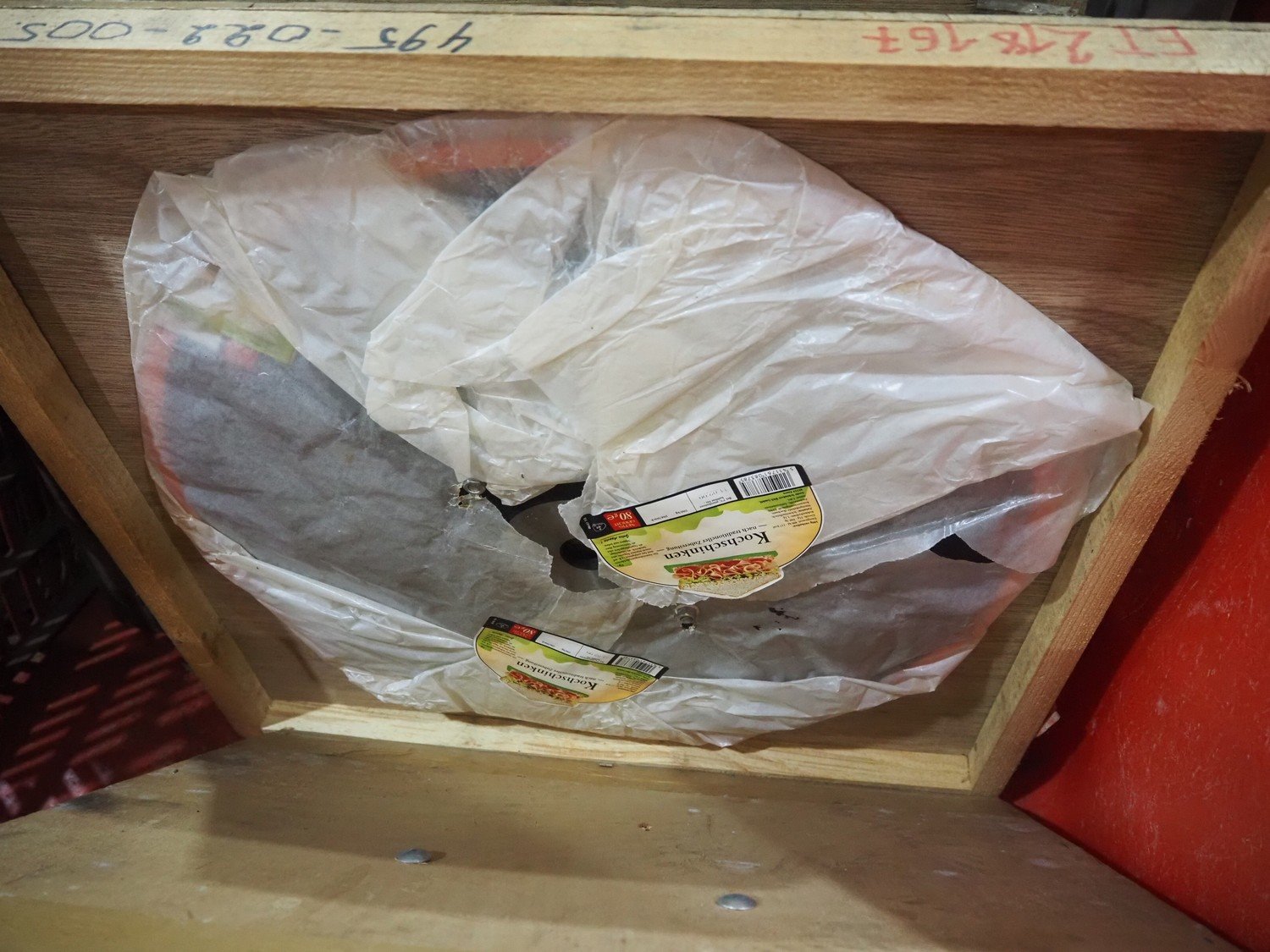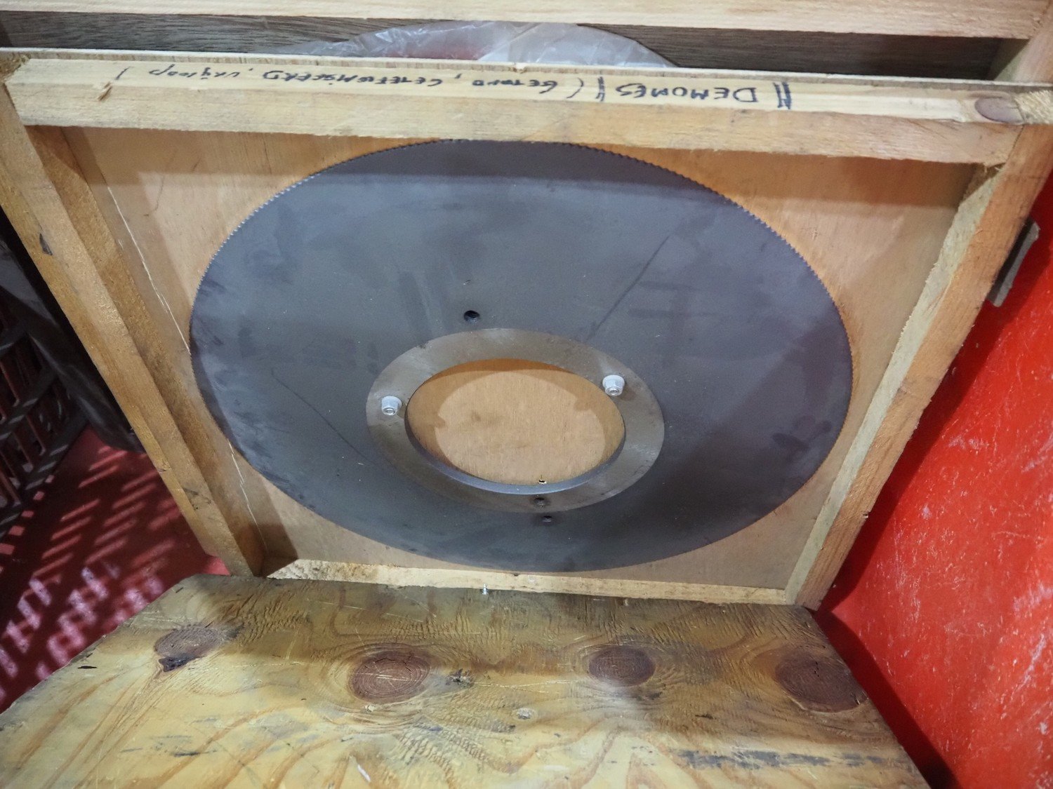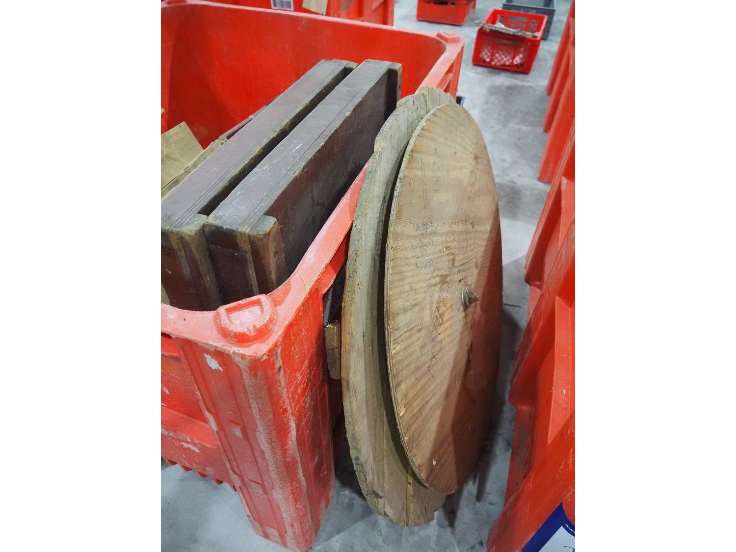 Plastic pallet box with various knifes for slicers.