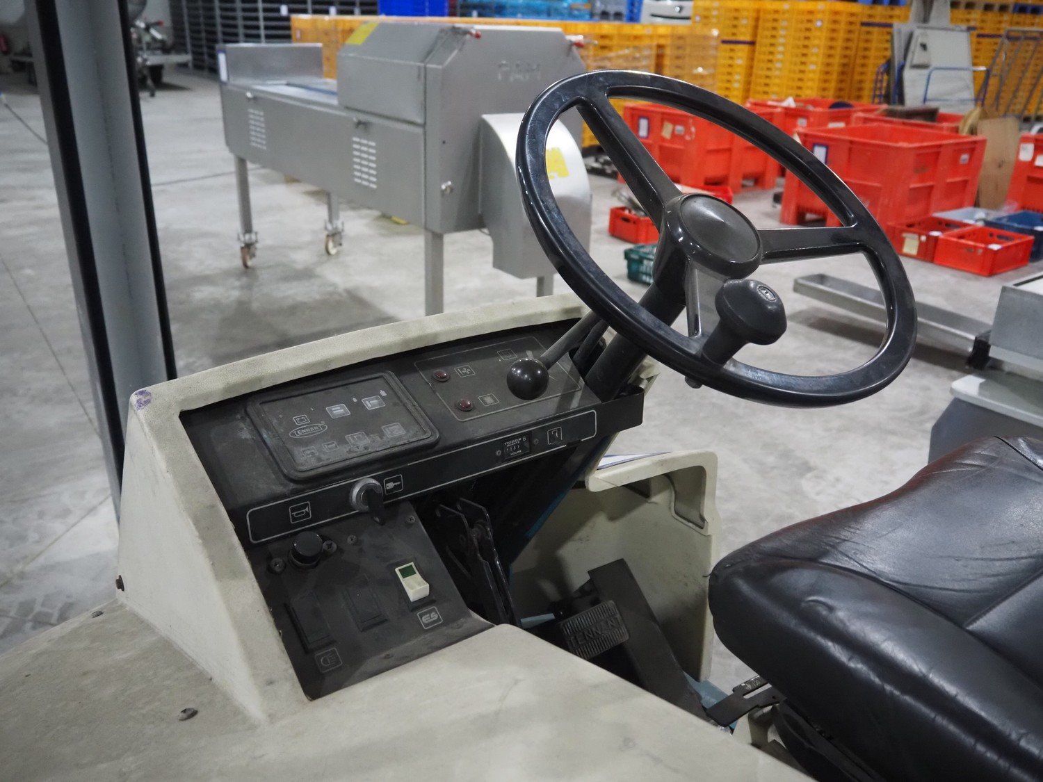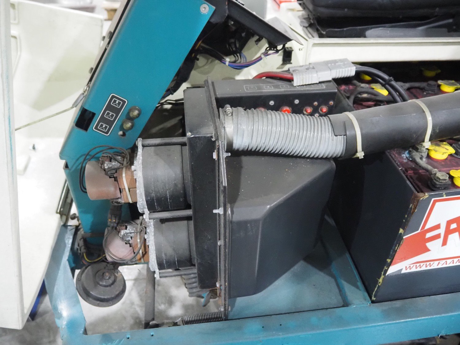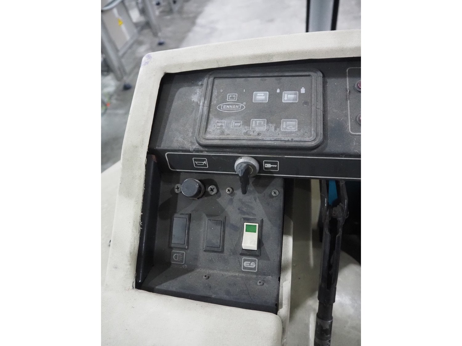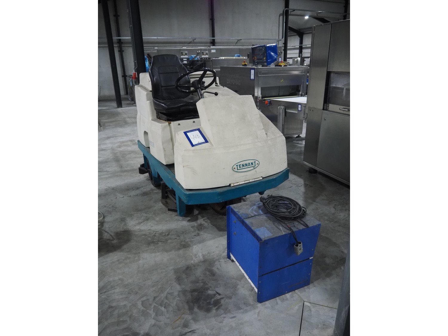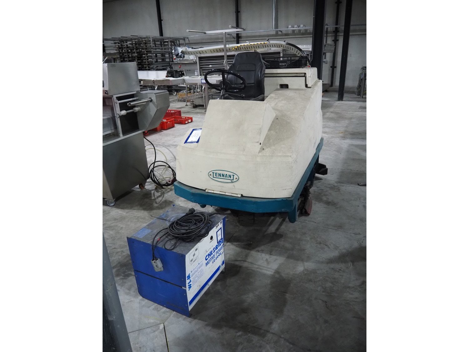 Tennant floor scrubbing machine, type: 18/5TTM435, serial number: 510550467, dimensions: 1200 mm x 2100 mm x 1600 mm. With Chloride motive power battery charger, 36 V.