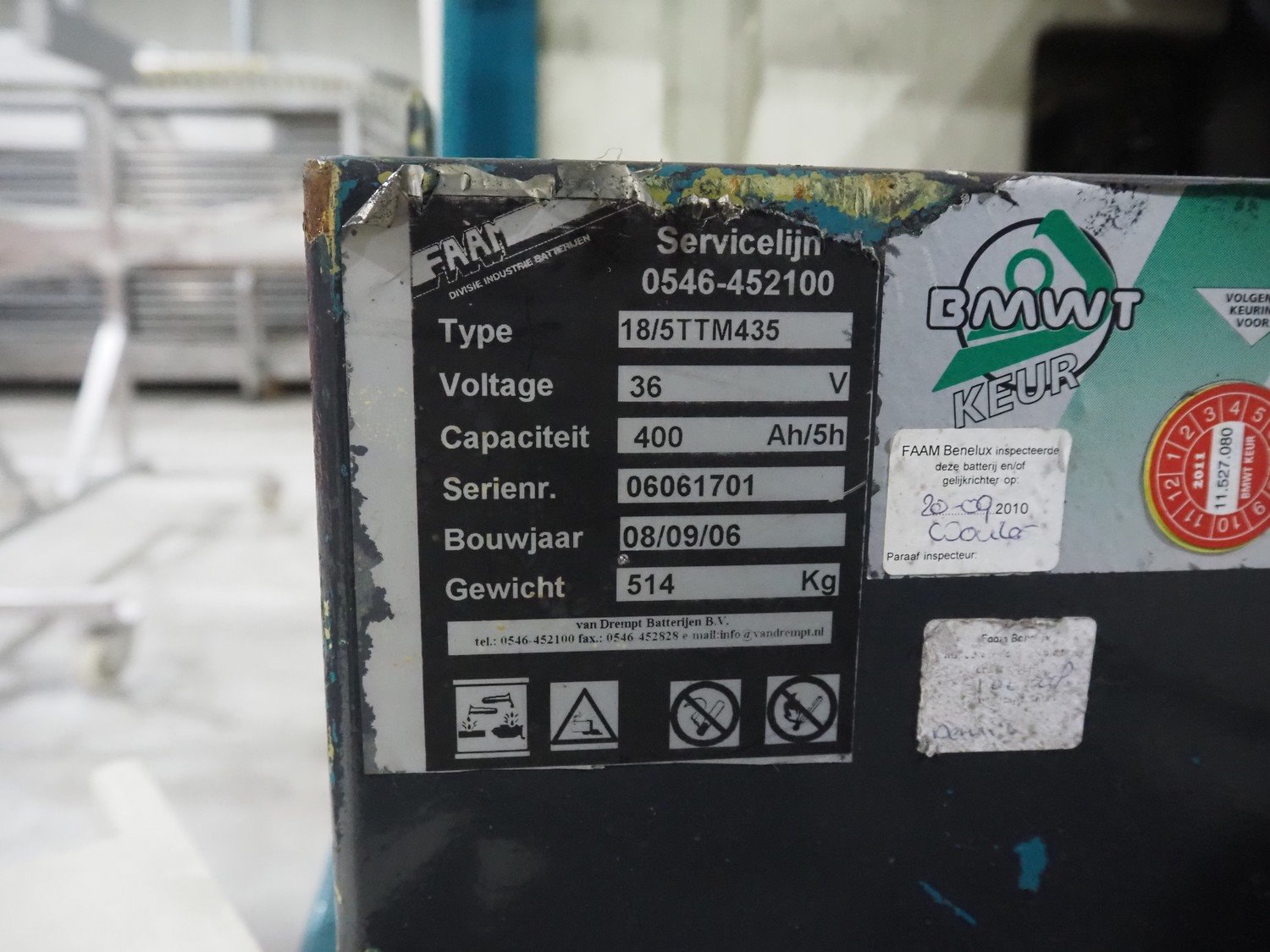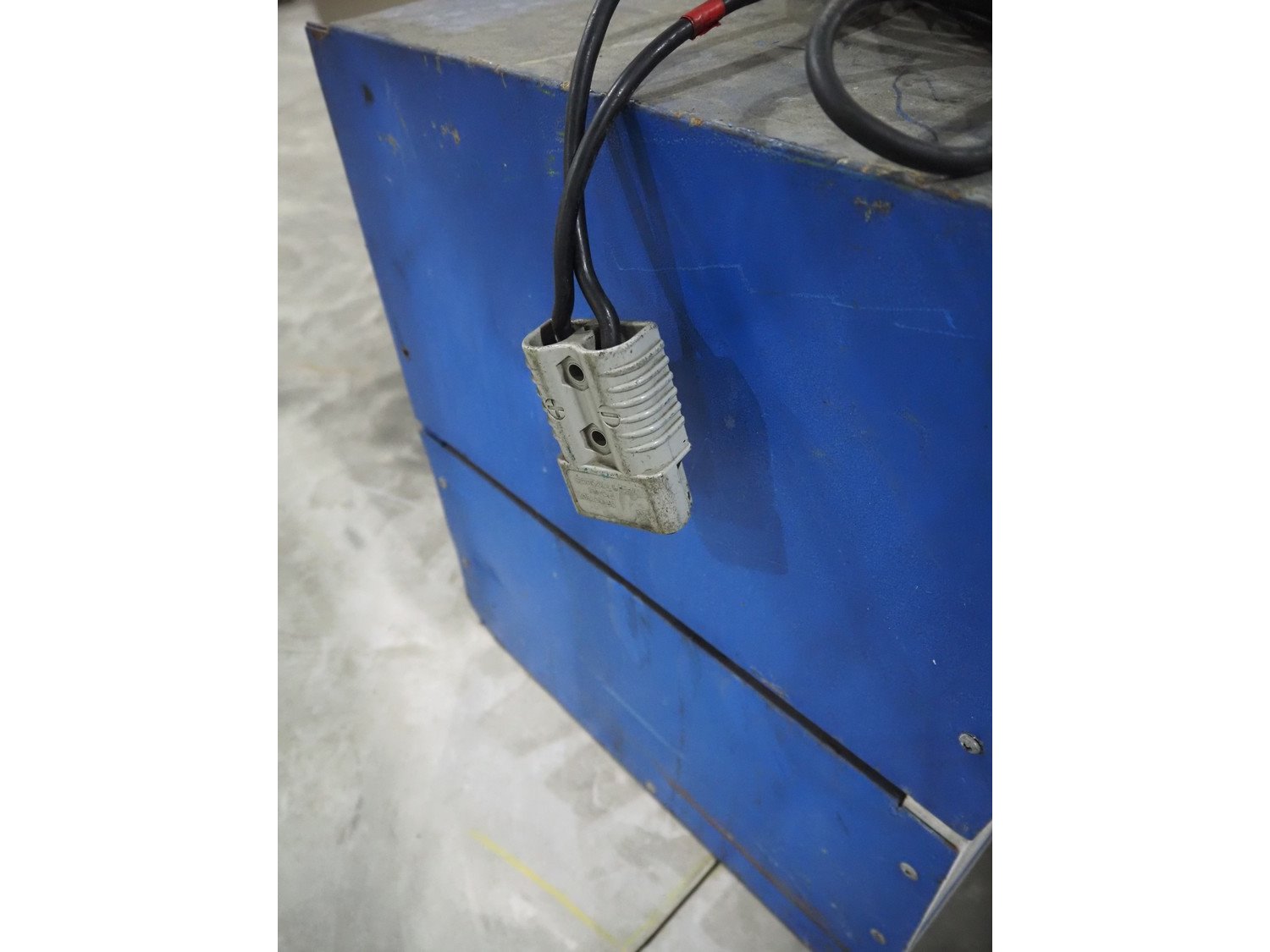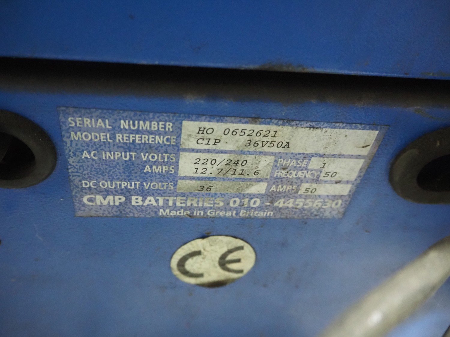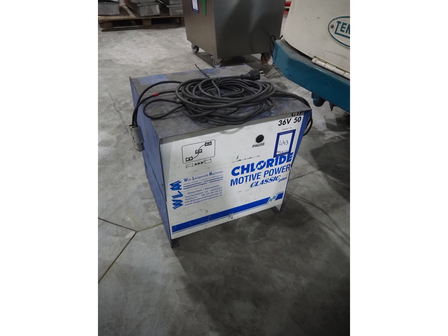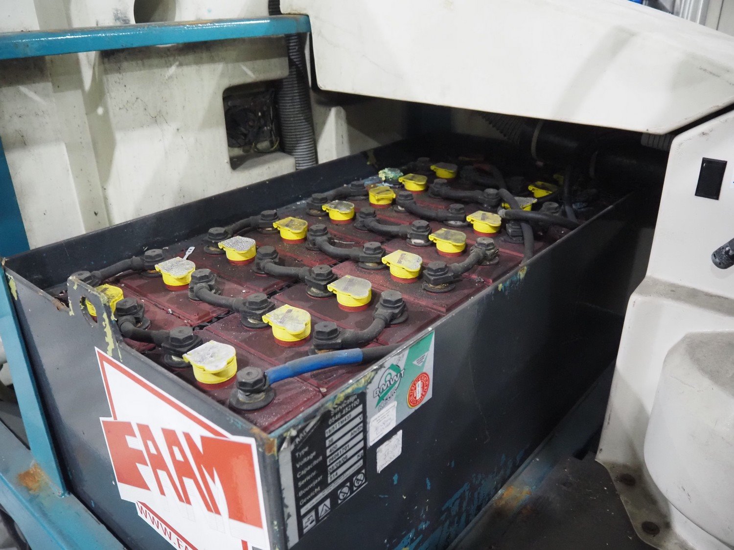 Tennant floor scrubbing machine, type: 18/5TTM435, serial number: 510550467, dimensions: 1200 mm x 2100 mm x 1600 mm. With Chloride motive power battery charger, 36 V.