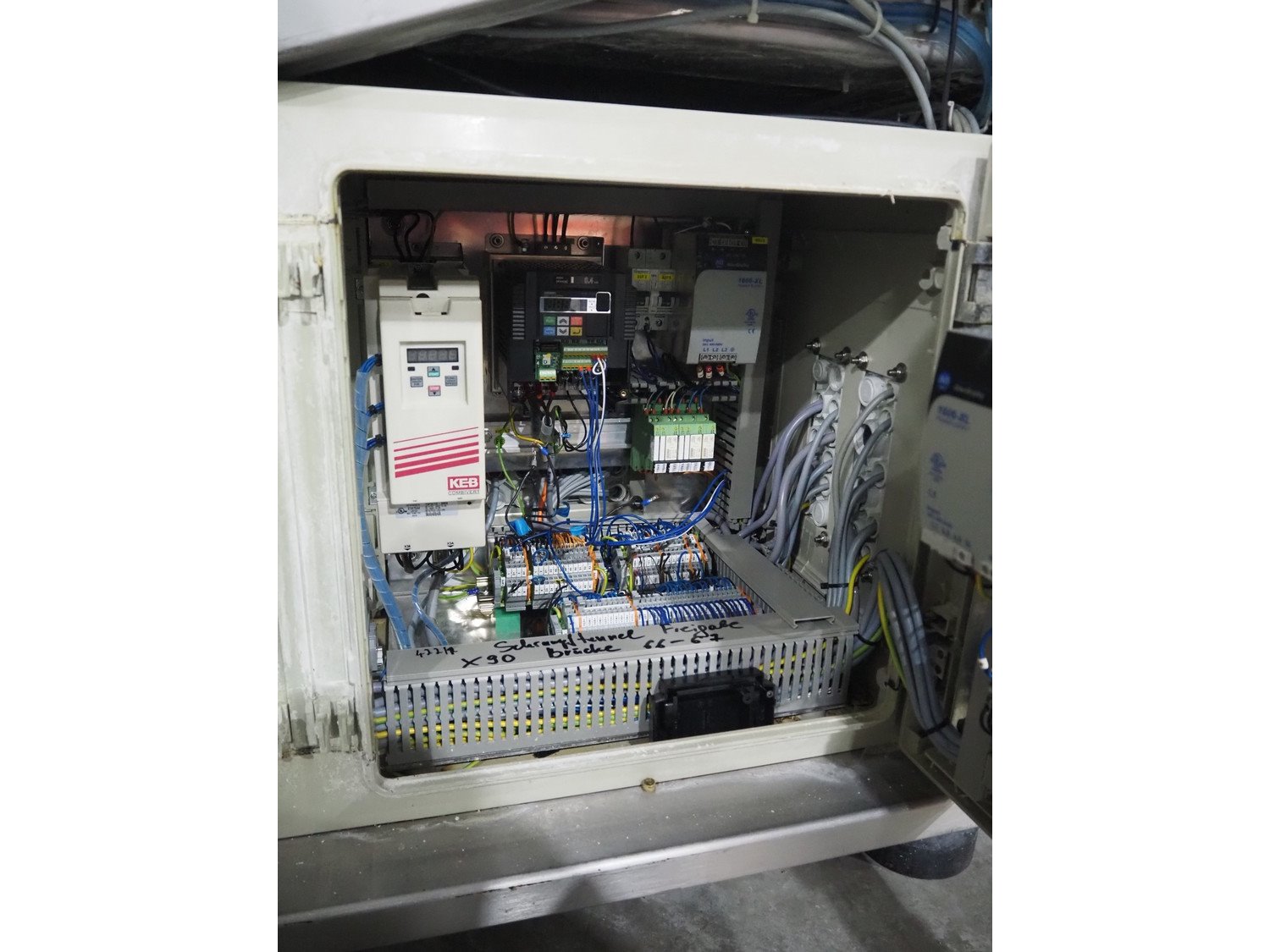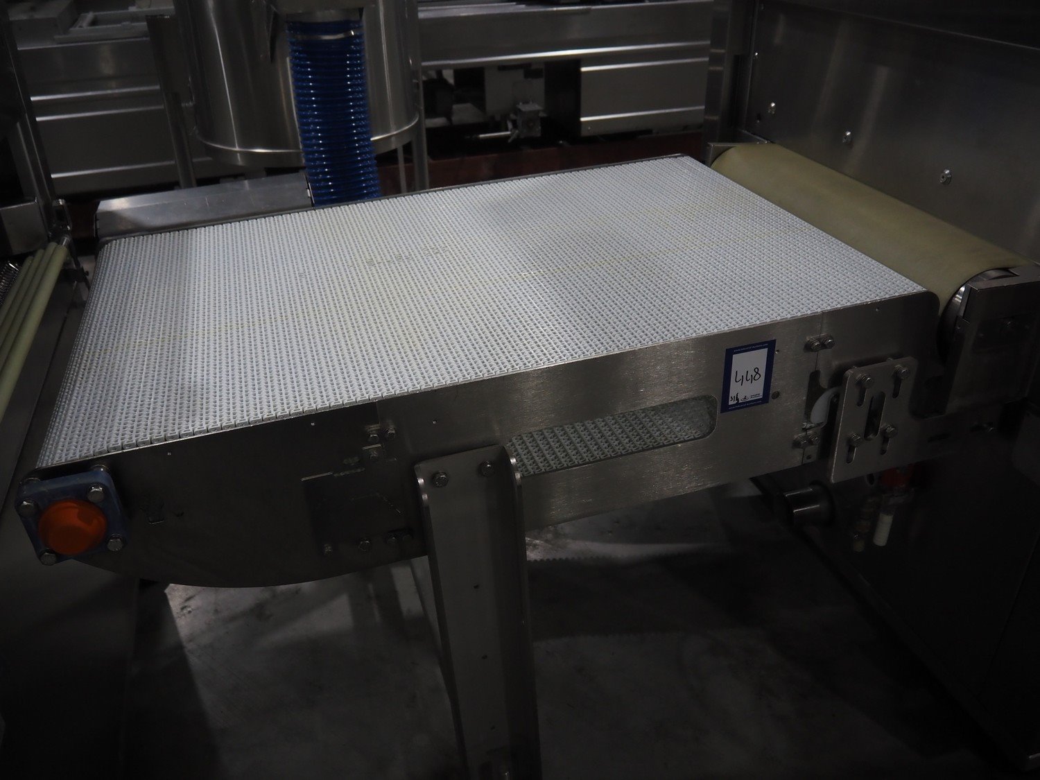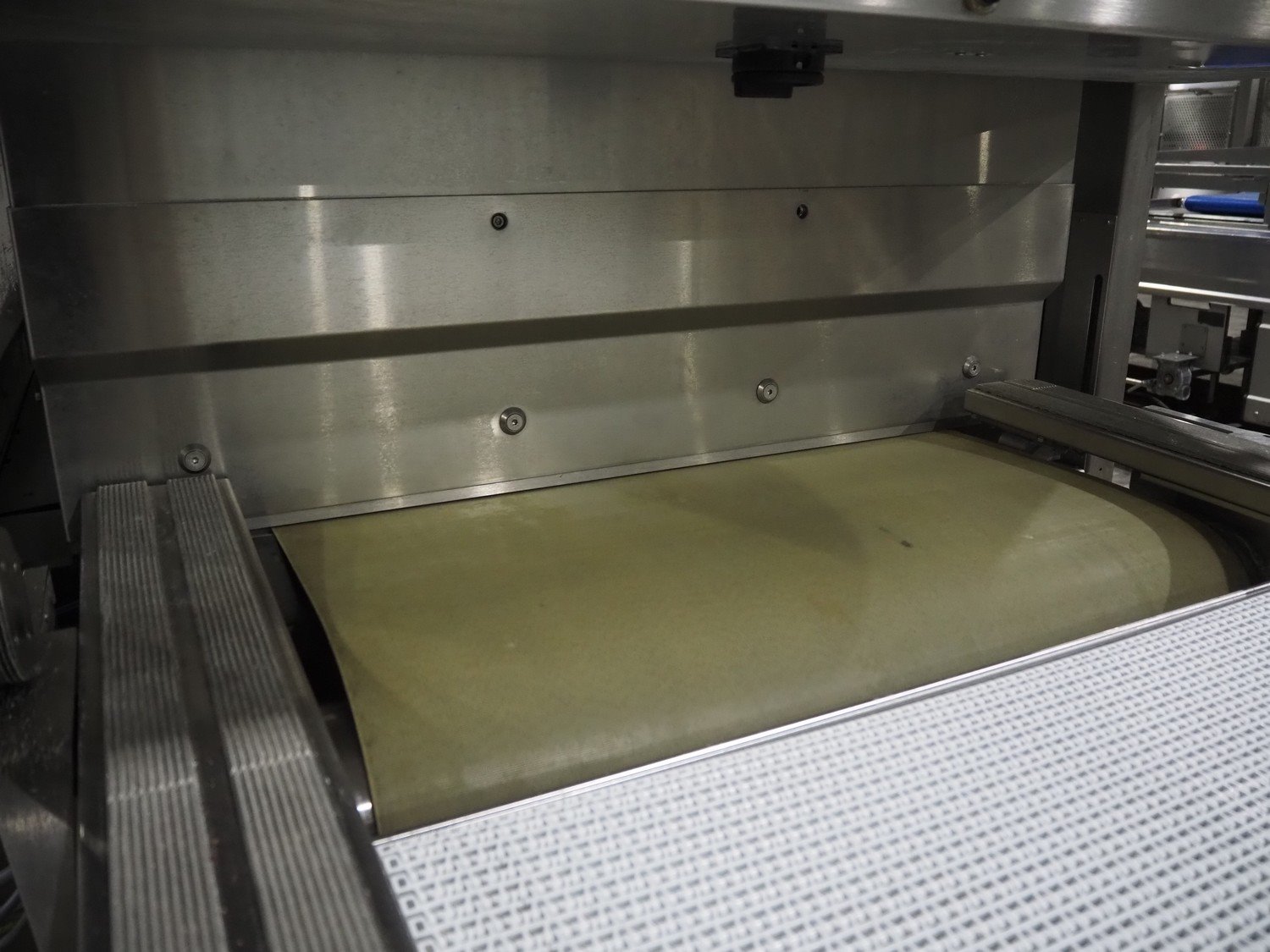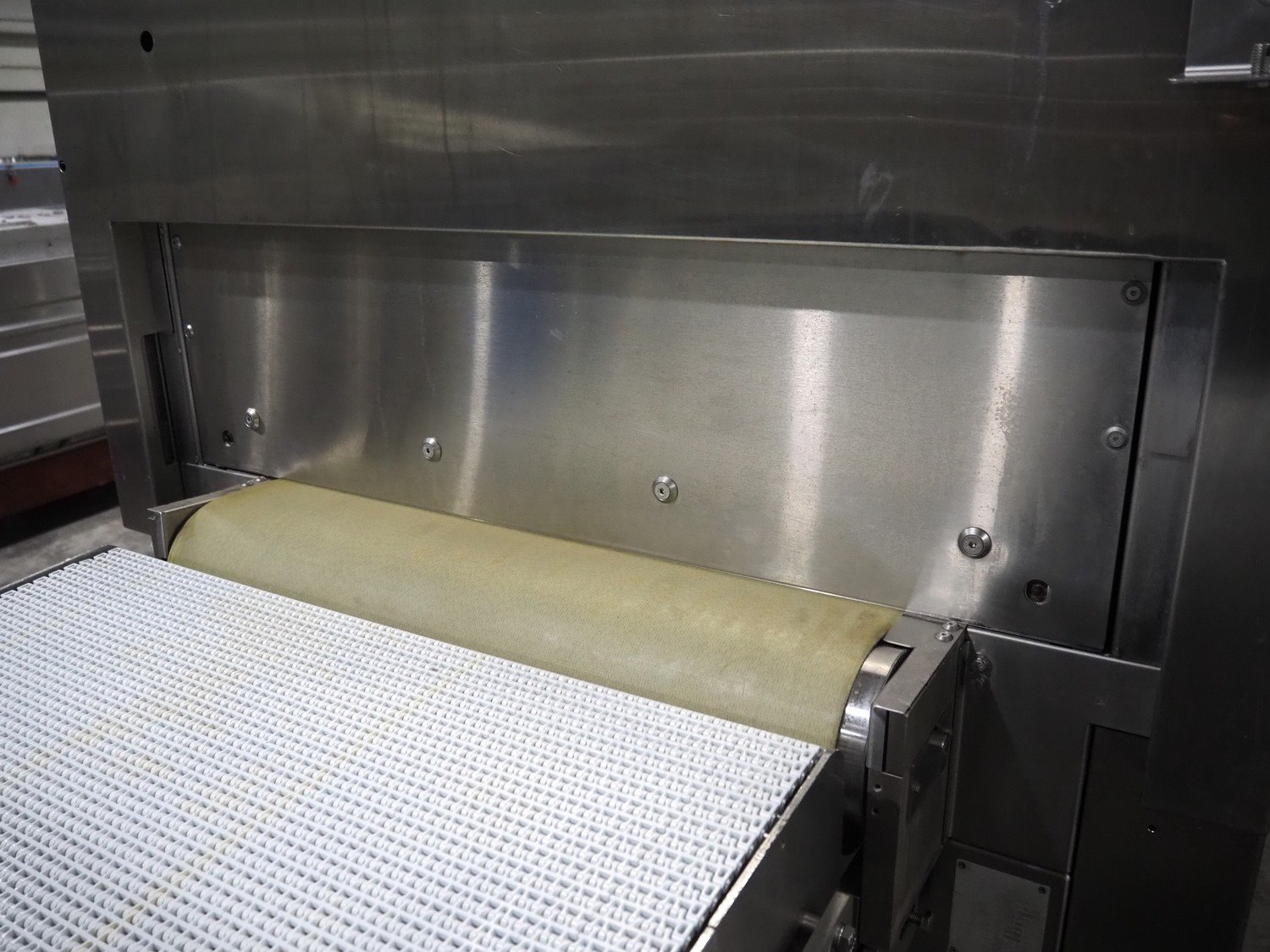 Cryovac belt vacuum machine, type: VS95TS, serial number: SN02408, year of construction: 2011, 400 V, 3 Ph, 50 Hz, 32 A, 18 kW, plastic belt, belt width: 730 mm Busch vacuum pump, type: WP: 1250 D 2F1, serial number: C1044000002, year of construction: 2010, capacity: 250 m³ per hour, total dimensions: 5000 mm x 1300 mm x 1900 mm. Including: infeed and outfeed belt: plastic mesh belt, belt width: (2x) 730 mm. Suction device, dimensions: Ø 540 mm x 1200.