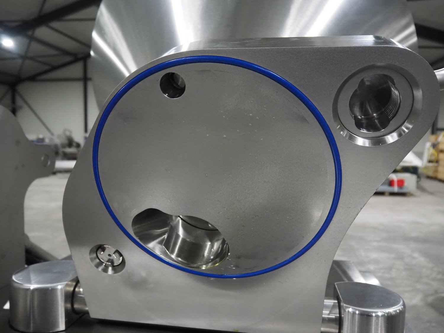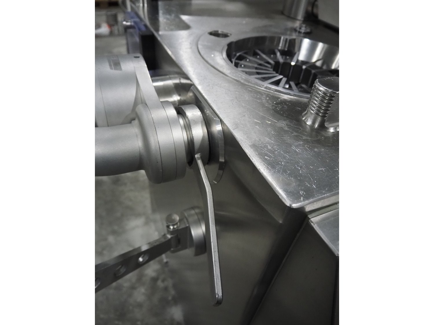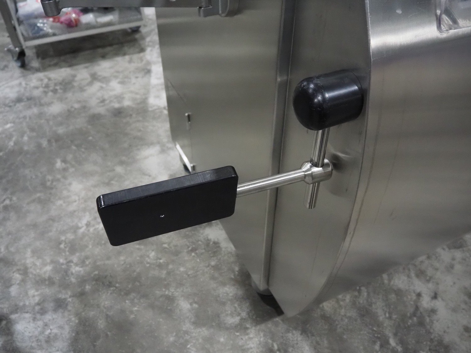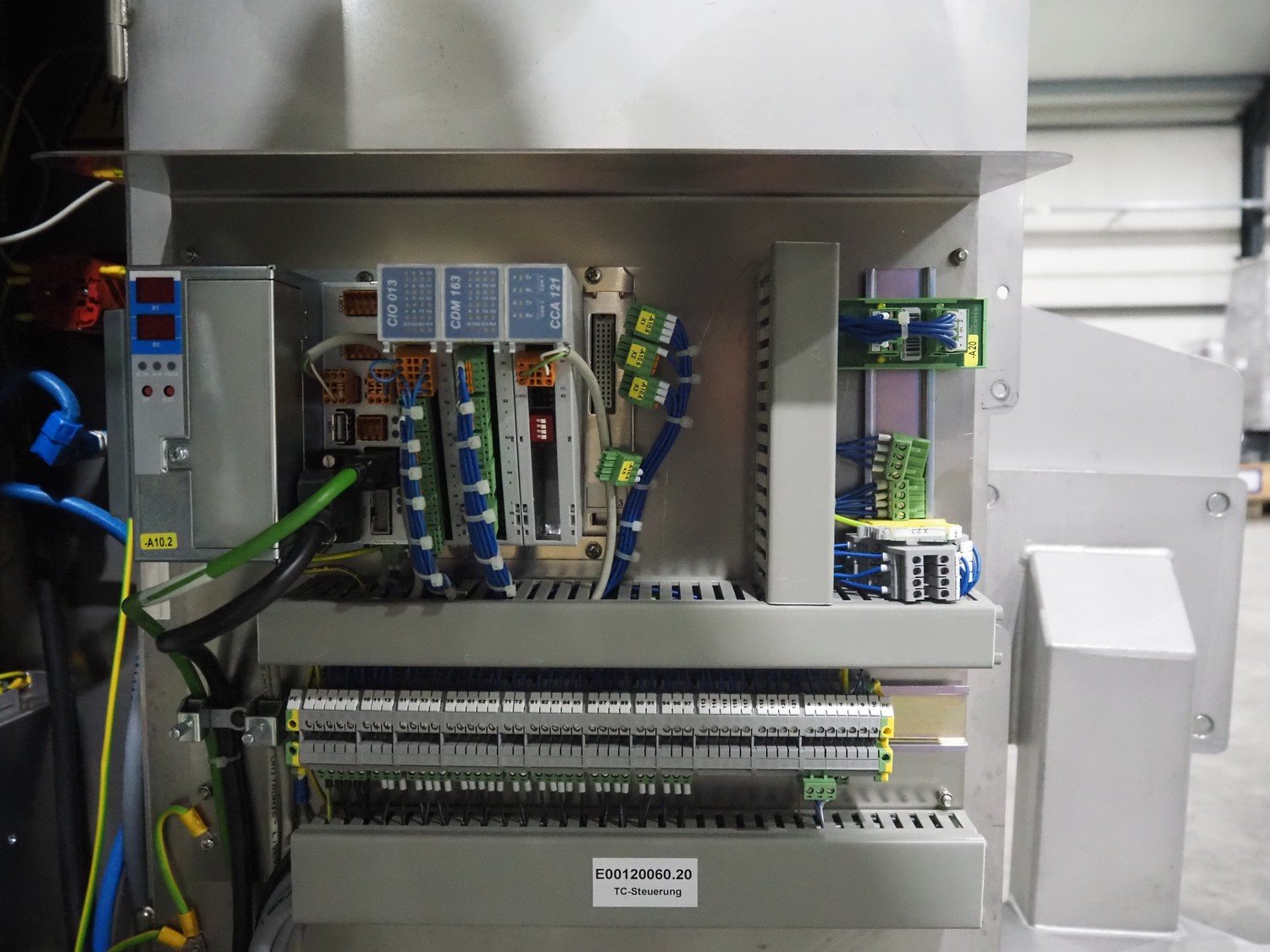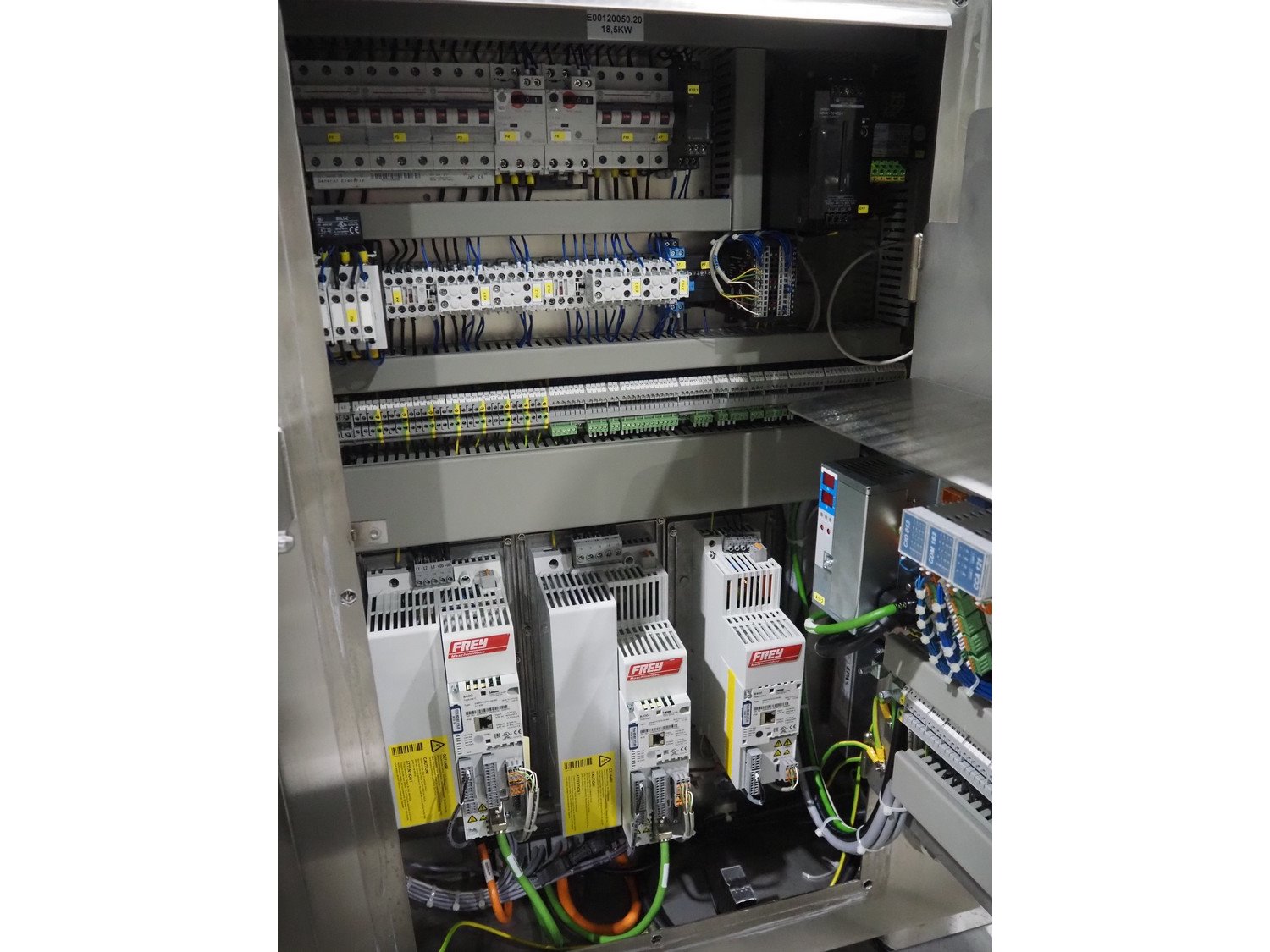 Frey Maschinenbau GmbH vacuum filler with lifter for 200 liter meat bins, type: F-Line F223, machine number: F223T1204018 WK, year of construction: 2018, 400 V, 50/60 Hz, 5.5 kW, dimensions: 2050 mm x 1350 mm x 2500 mm.