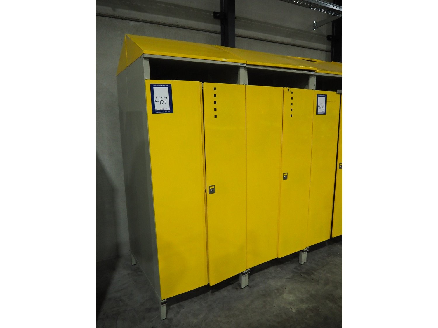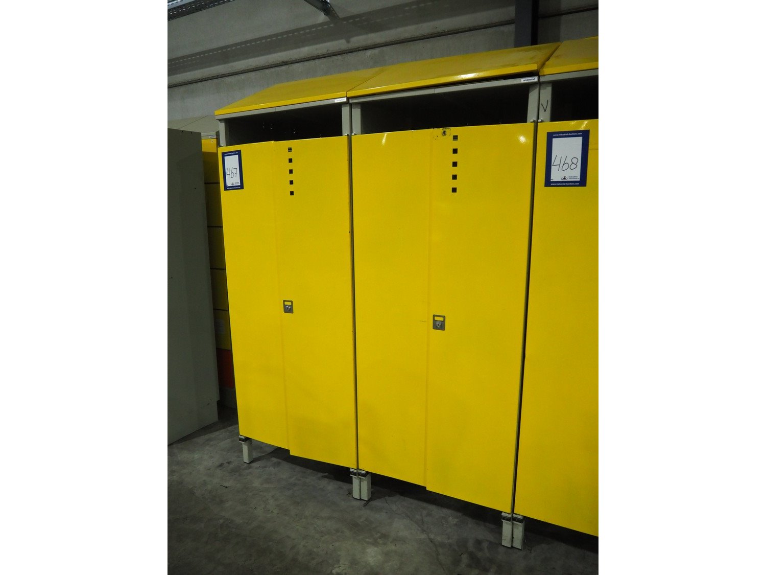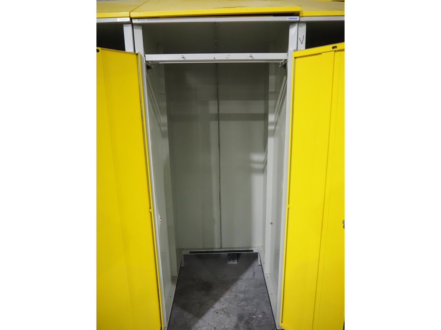 2 steel 2-doors lockers, dimensions inside: (2x) 1770 mm x 800 mm x 950 mm., total dimensions: (2x) 1000 mm x 800 mm x 2200 mm. Without keys.