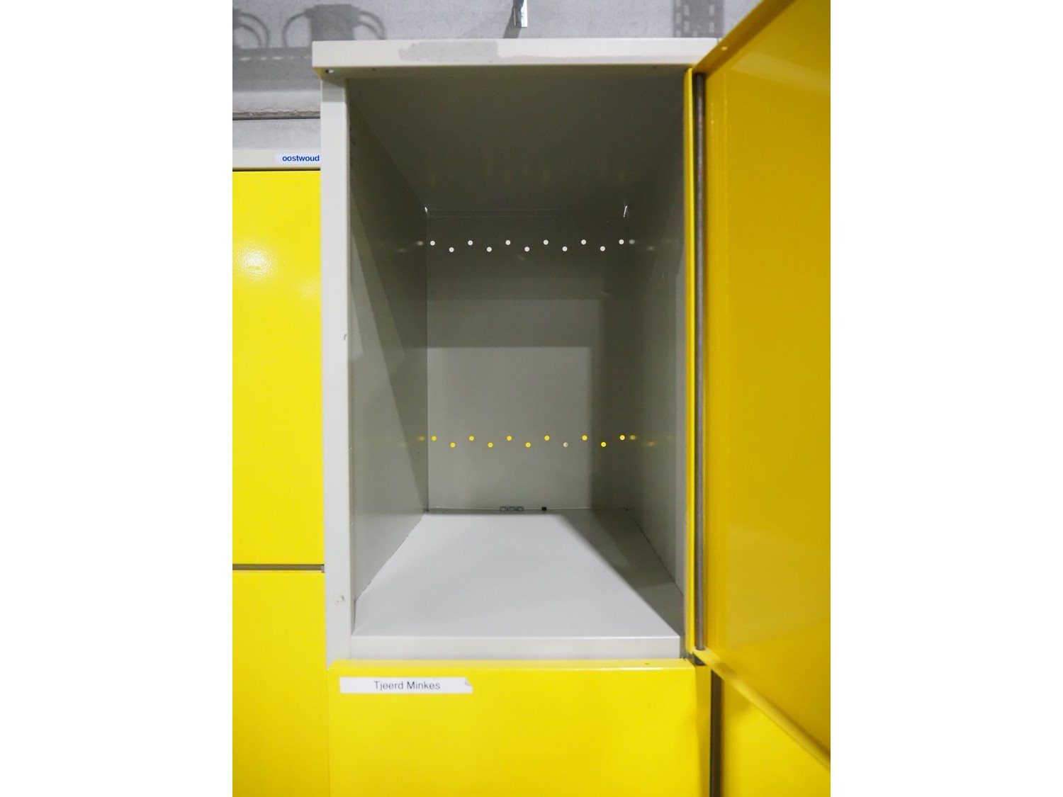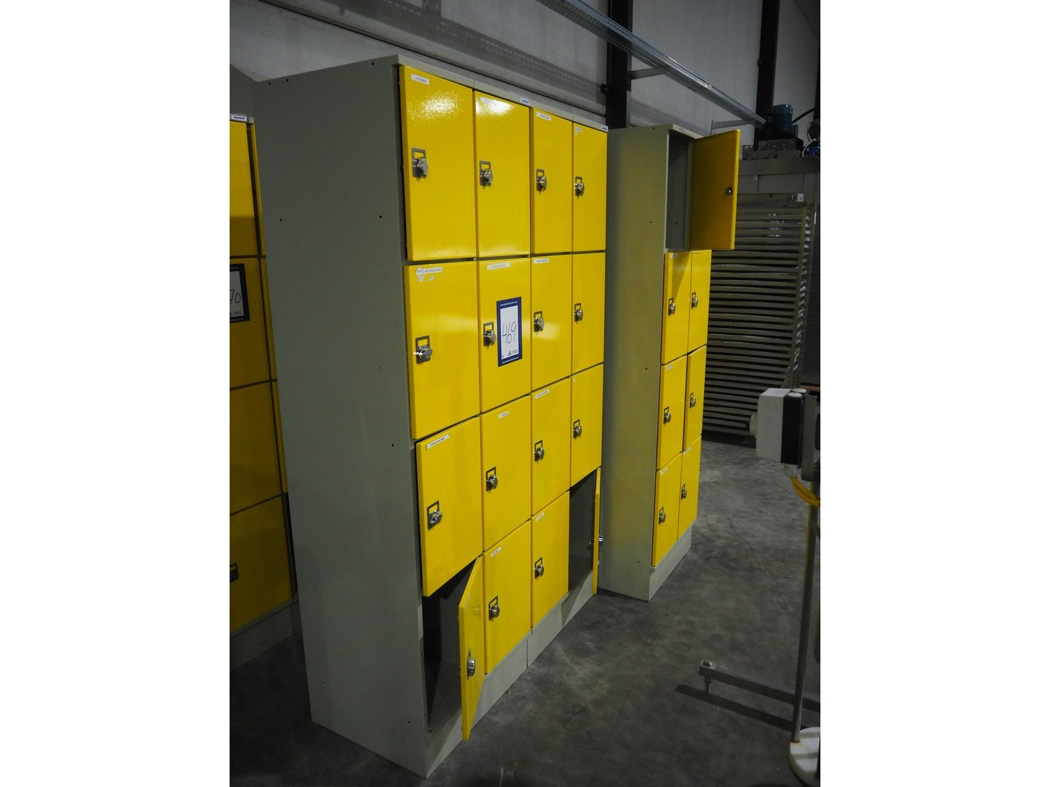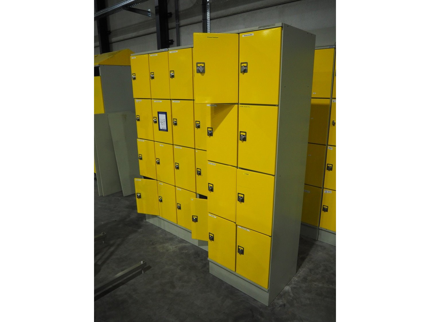 3 steel 8-doors lockers, inside dimensions: (14x) 470 mm x 300 mm x 440 mm, total dimensions: (3x) 600 mm x 500 mm x 1950 mm.