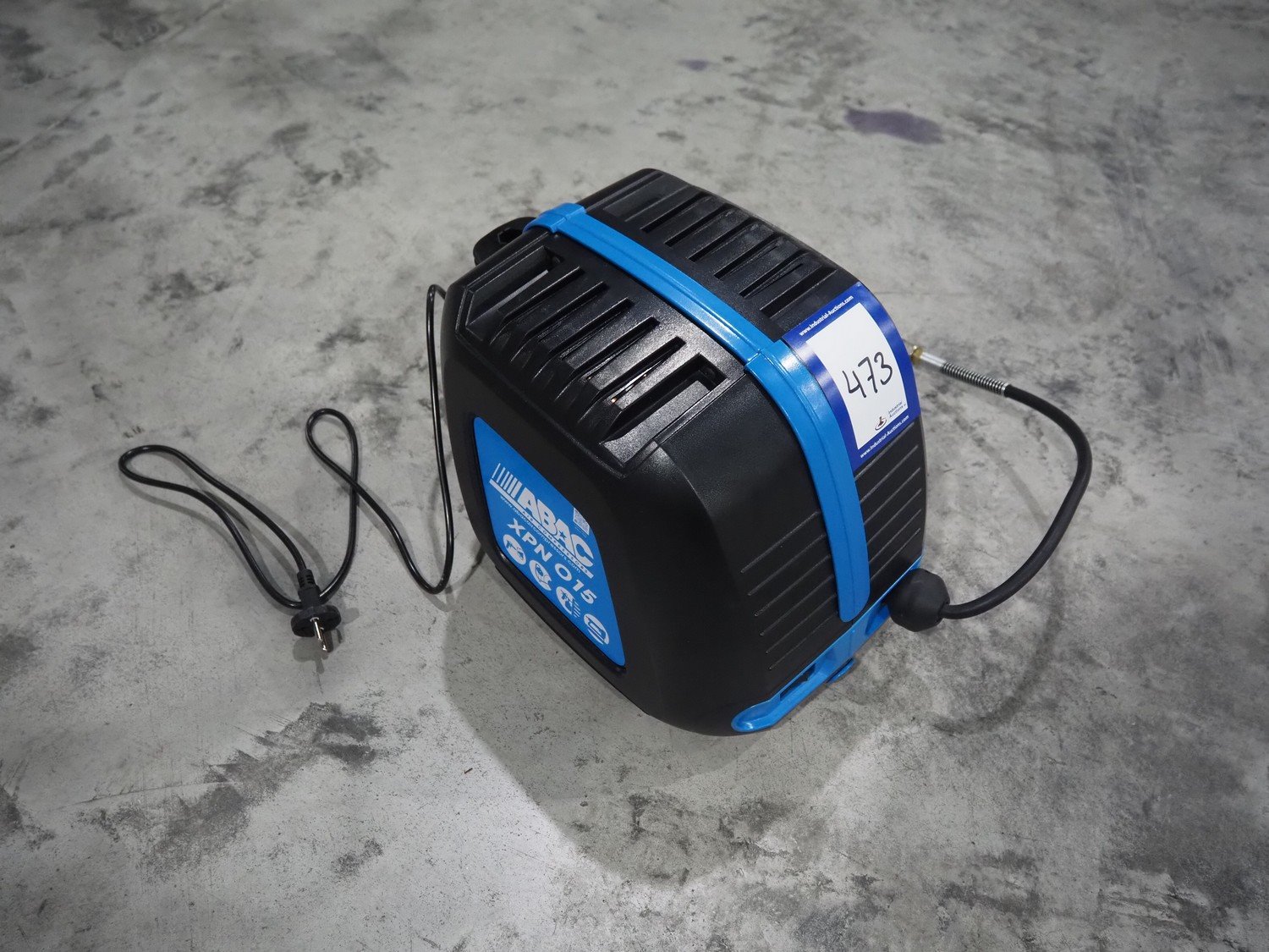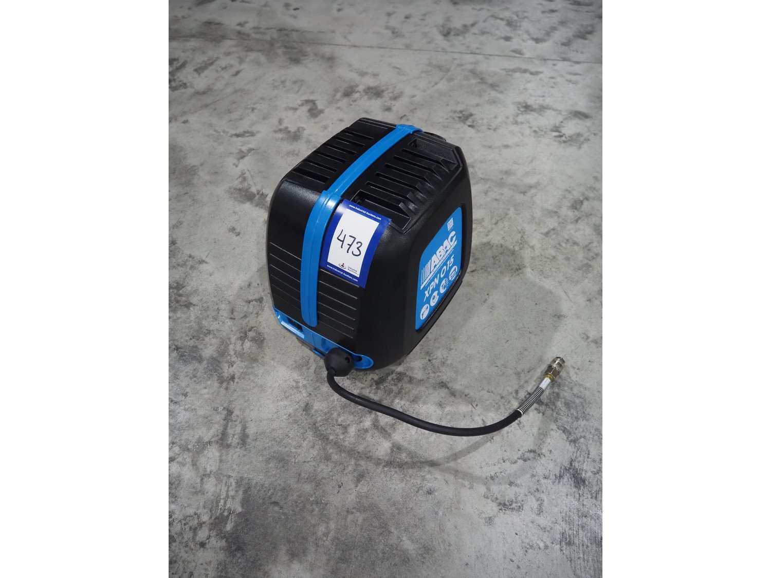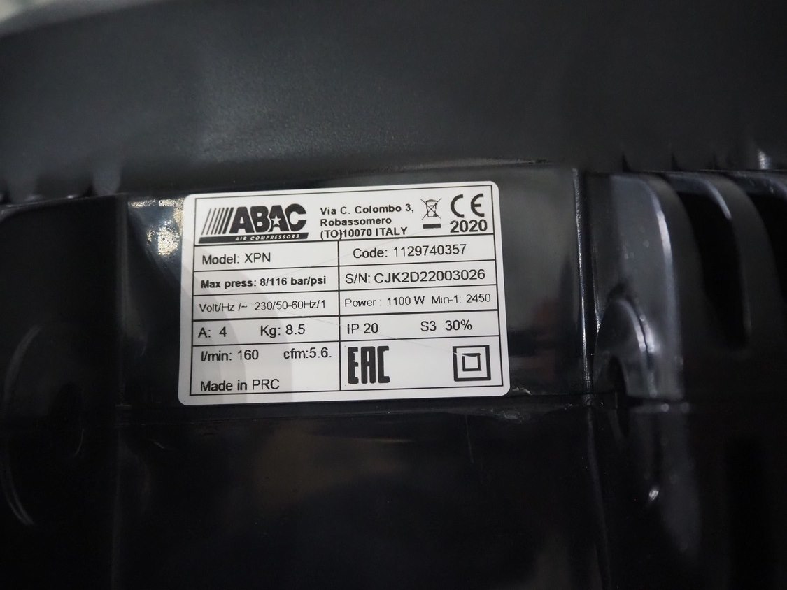 ABAC air compressors with hose reel, model: XPN, 230 V, 1 Ph, 50/60 Hz, 1100 W, weight: 8.5 kg, total dimensions: 400 mm x 250 mm x 300 mm.