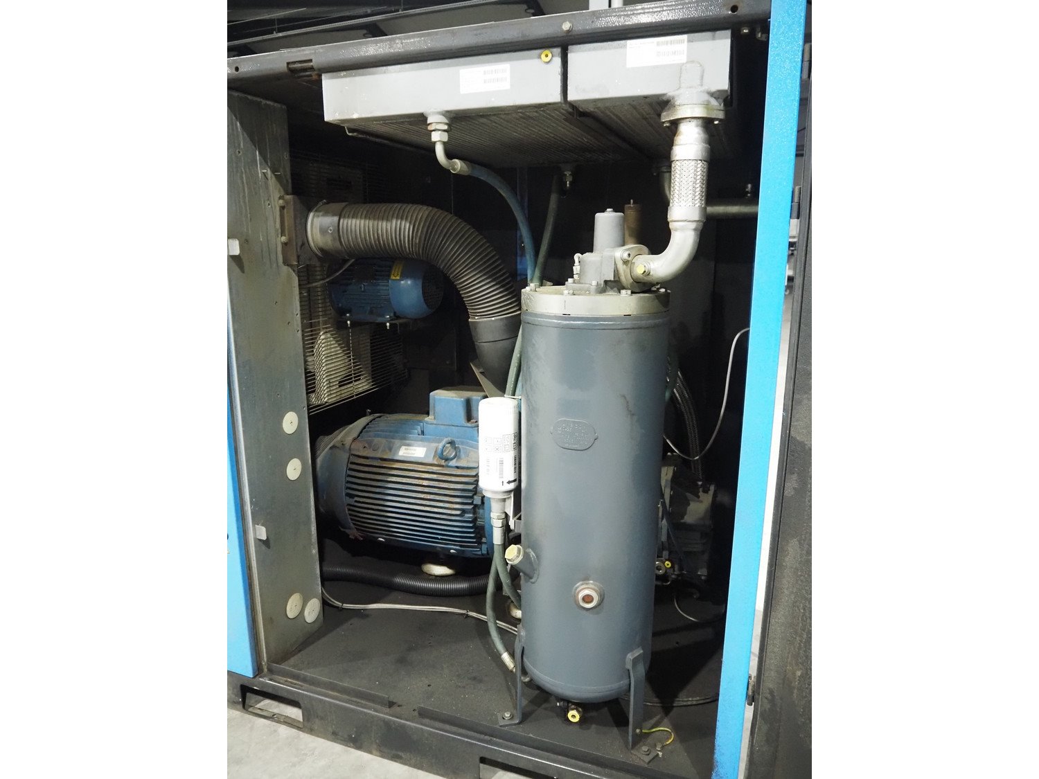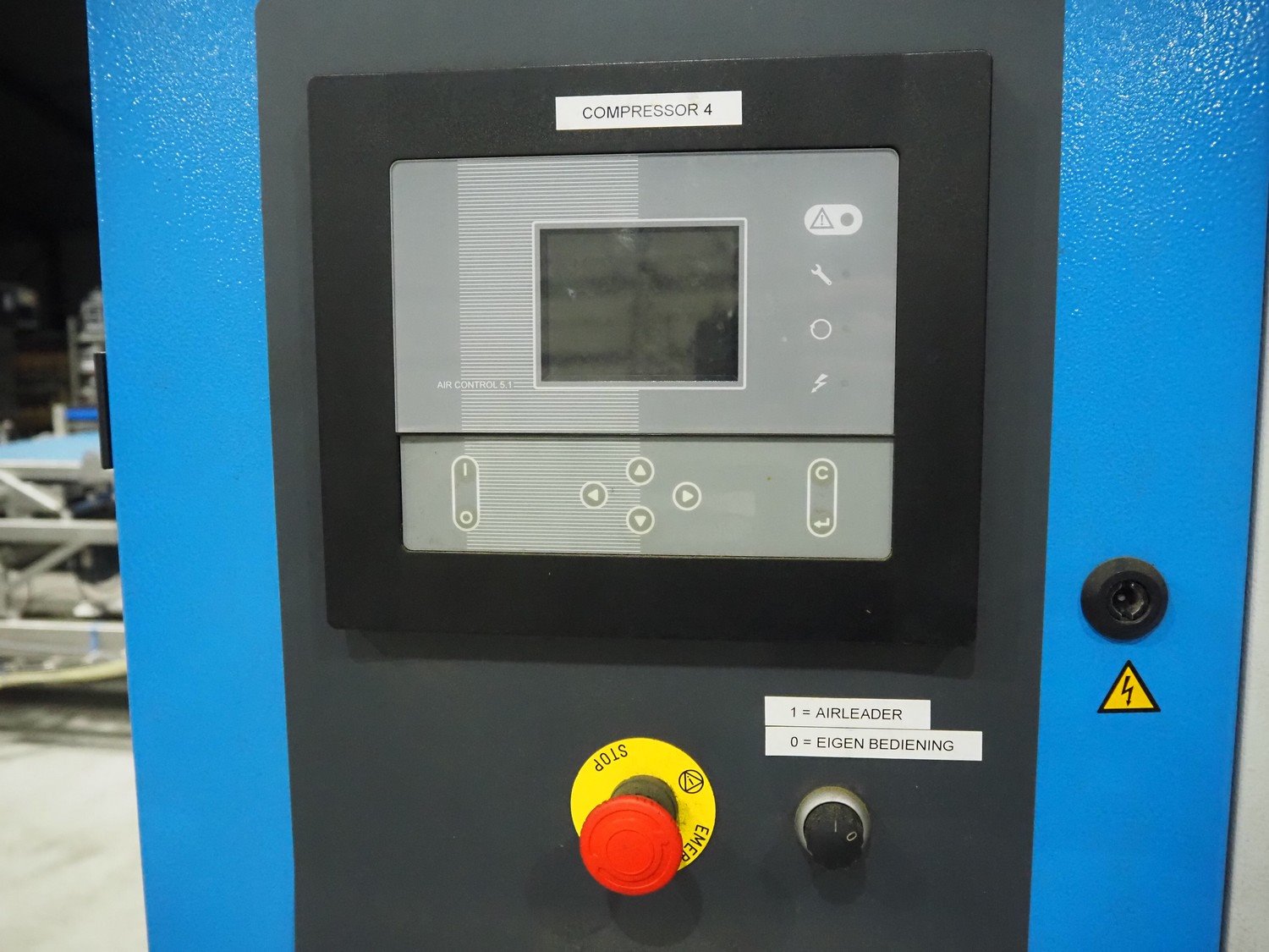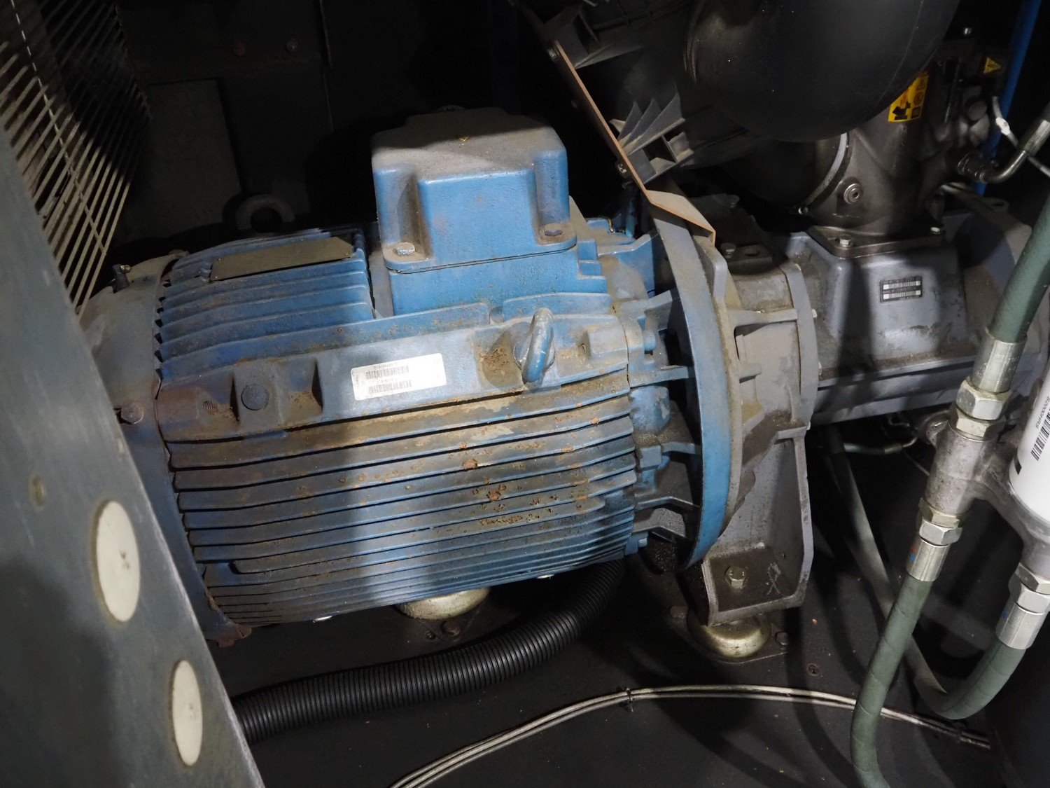 Alup screw compressor, type: LARG055, serial number: API170959, year of construction: 2013, 400 V, 3 Ph, 50 Hz, 55 kW, weight: 1130 kg, working hours: 20000 hours, dimensions: 1900 mm x 1100 mm x 1650 mm.