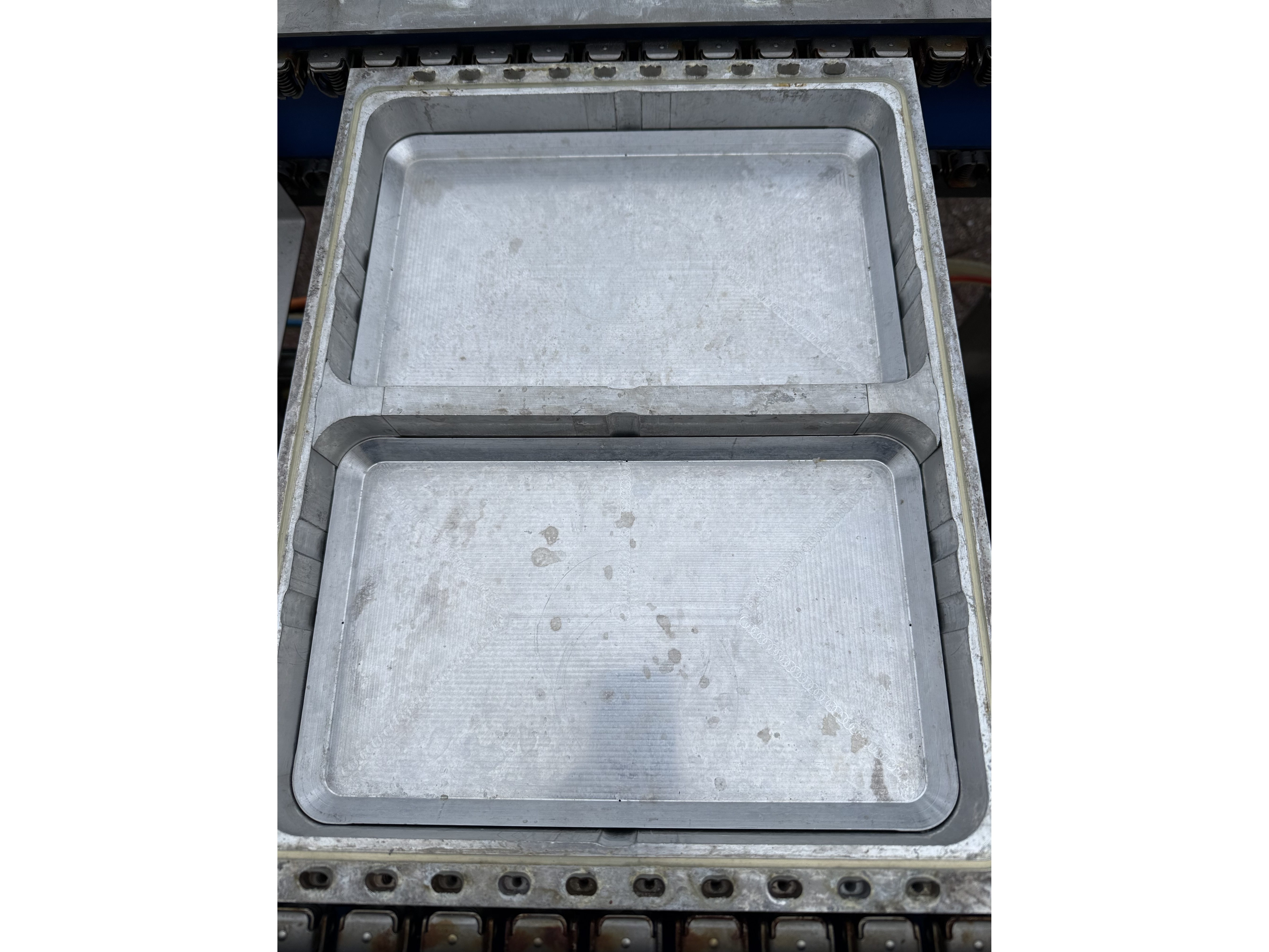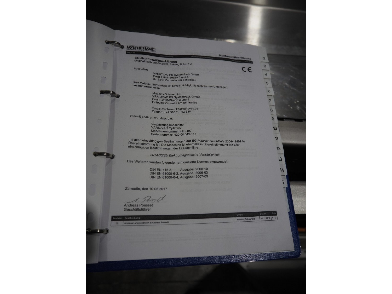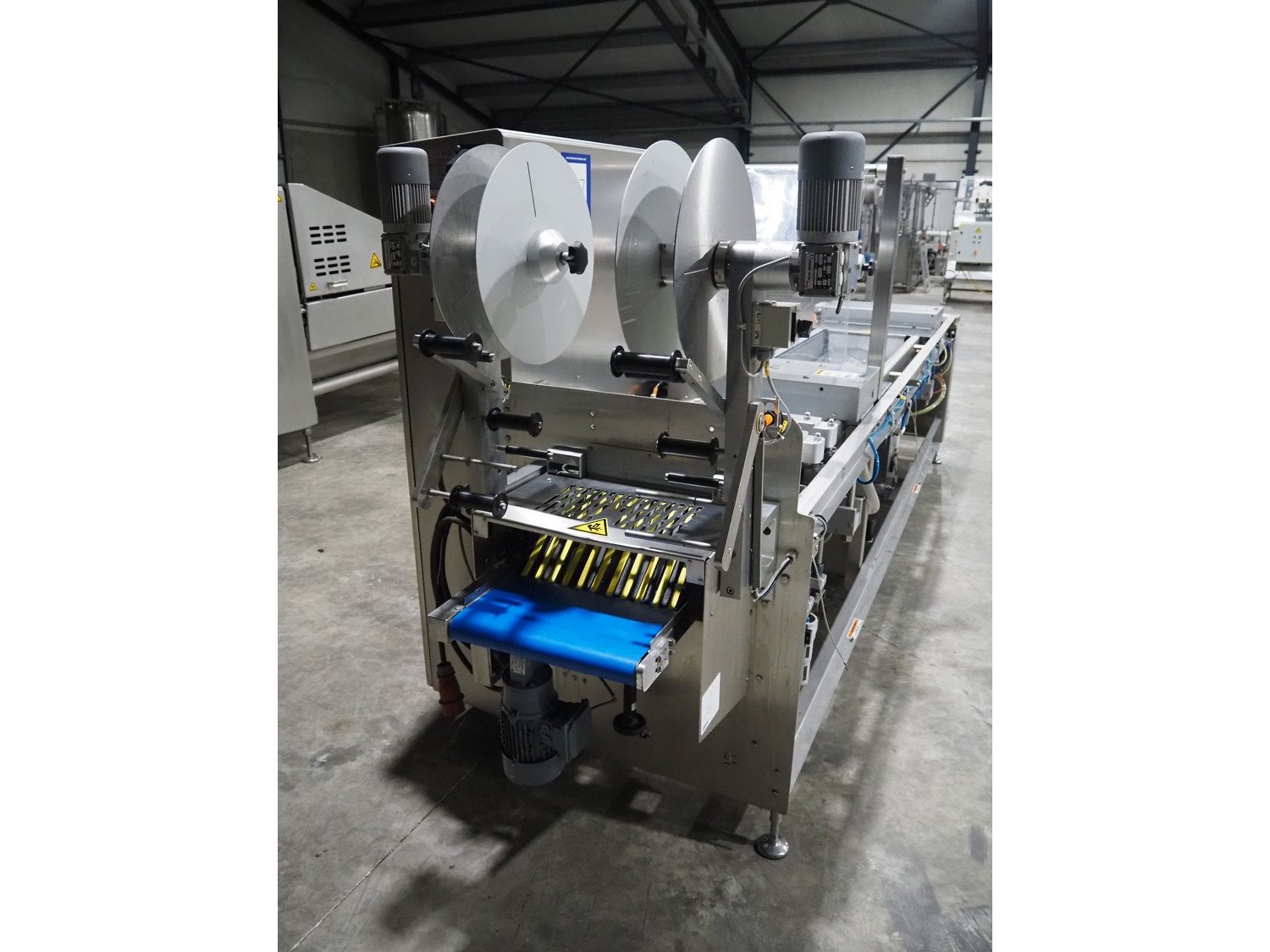 Variovac thermoformer, type: OPTIMUS, serial number: 420.OL0497.17, year of construction: 2017, 230/400 V, 50 Hz, 21 A, 13 kW, soft film, film width: 420 mm, dye: (2x) 172 mm x 255 mm, total dimensions: 4500 mm x 1100 mm x 1700 mm. Including pallet with foil, dimensions pallet: 850 mm x 600 mm x 550 mm.