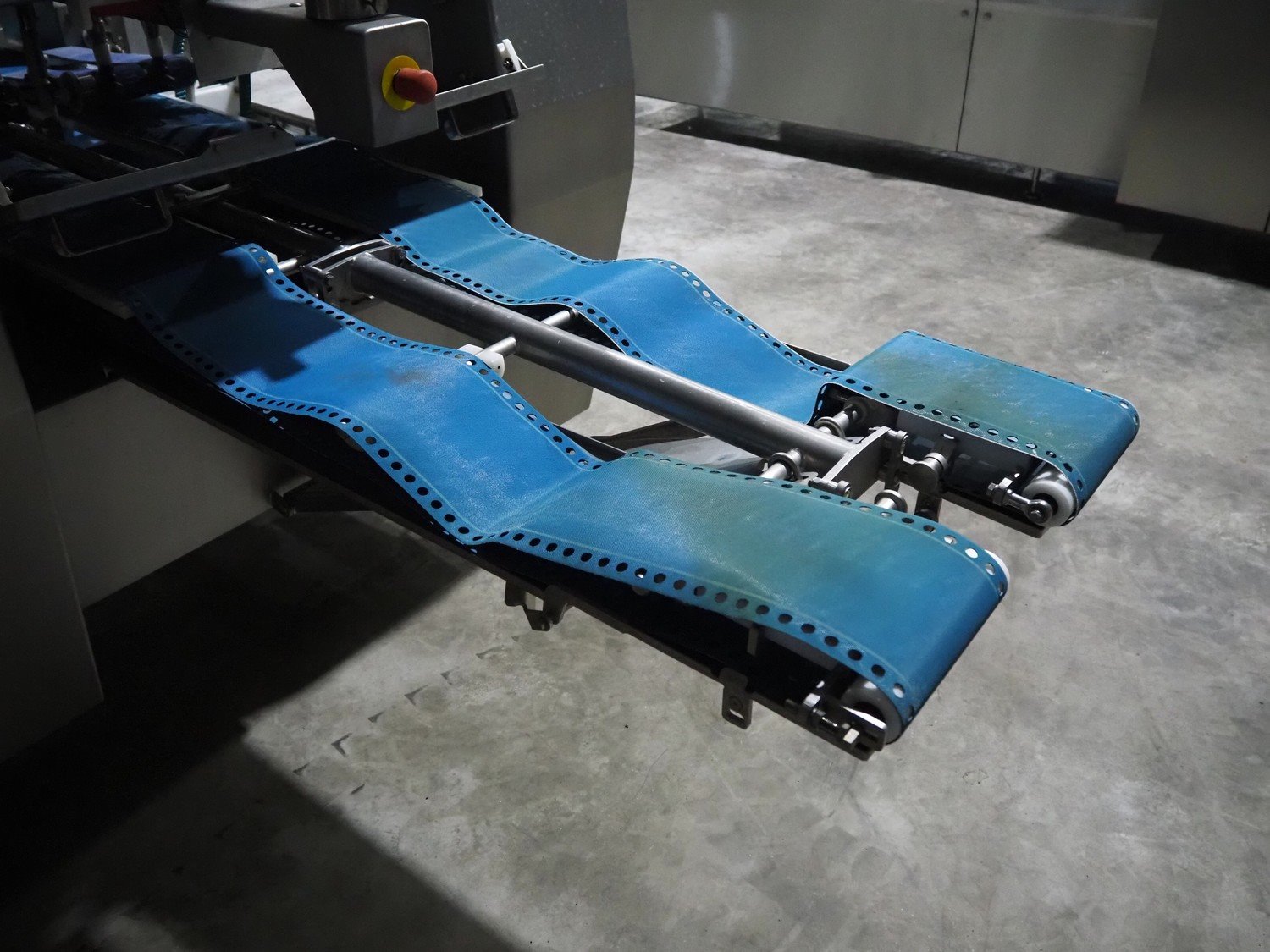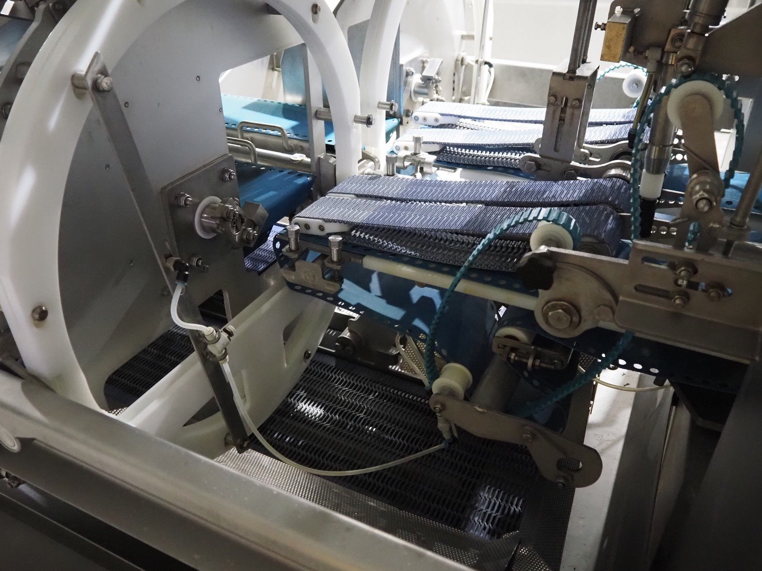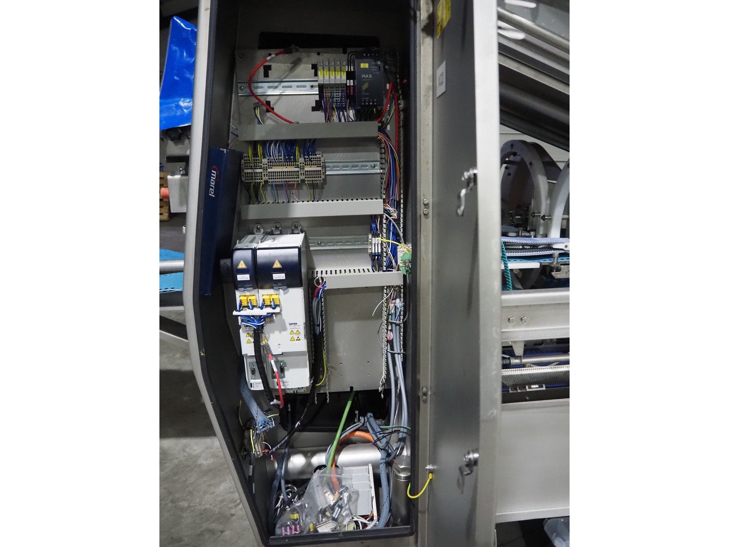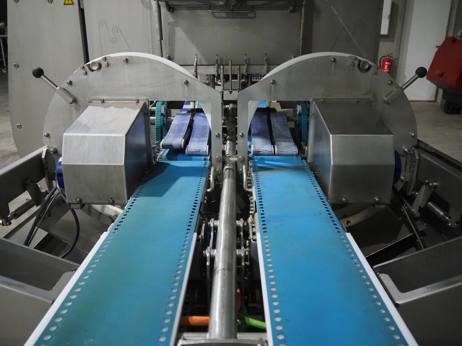 Marel Portion cutter, type: LR0325, model: I-Cut122, serial number: 10431550, year of construction: 2019, 380/480 V, 3 Ph, 50/60 Hz, 1 A, plastic belt, belt width: (2x) 200 mm, total dimenions: 4350 mm x 1520 mm x 1600 mm. Incomplete, technical condition unknown.