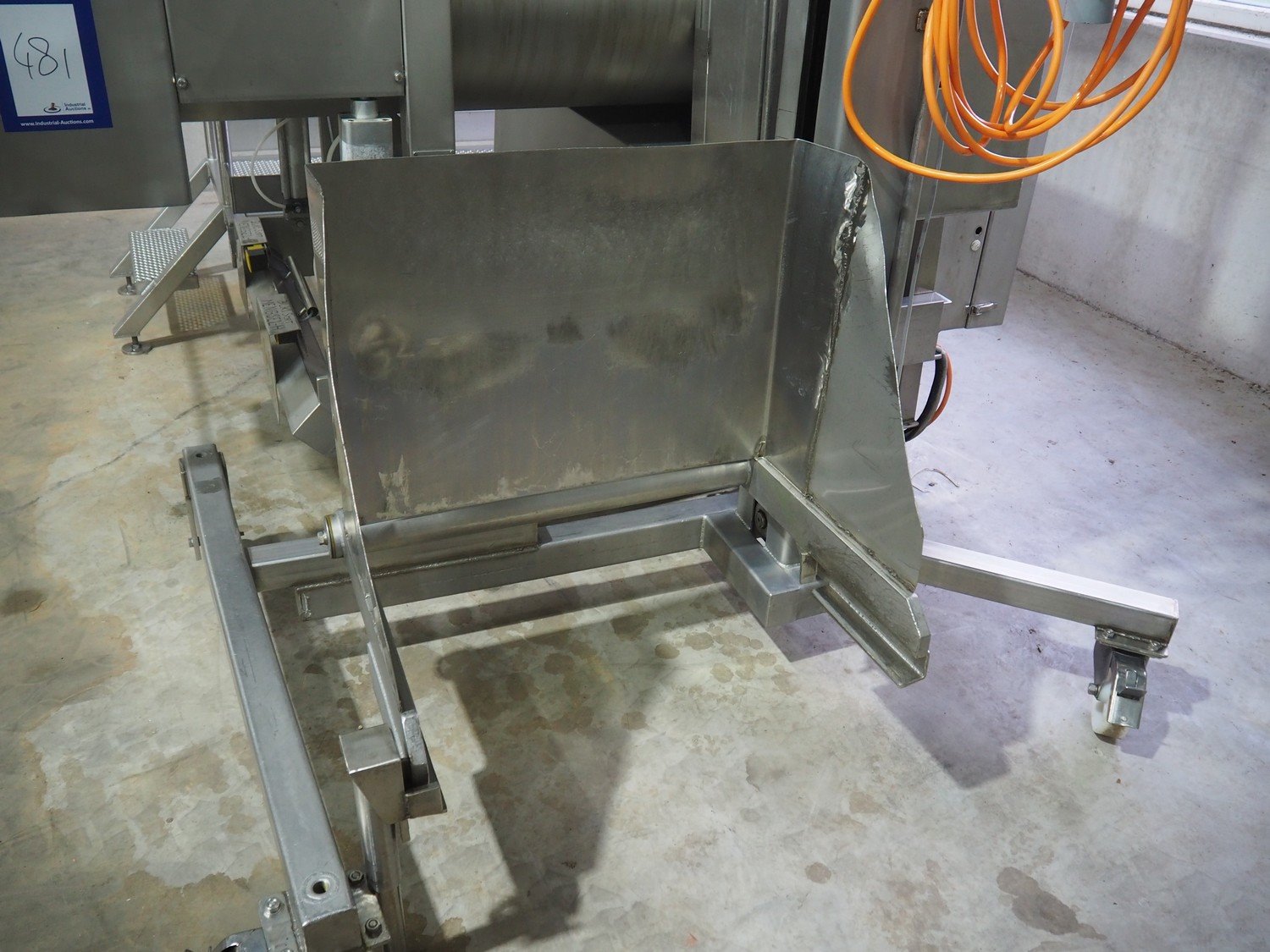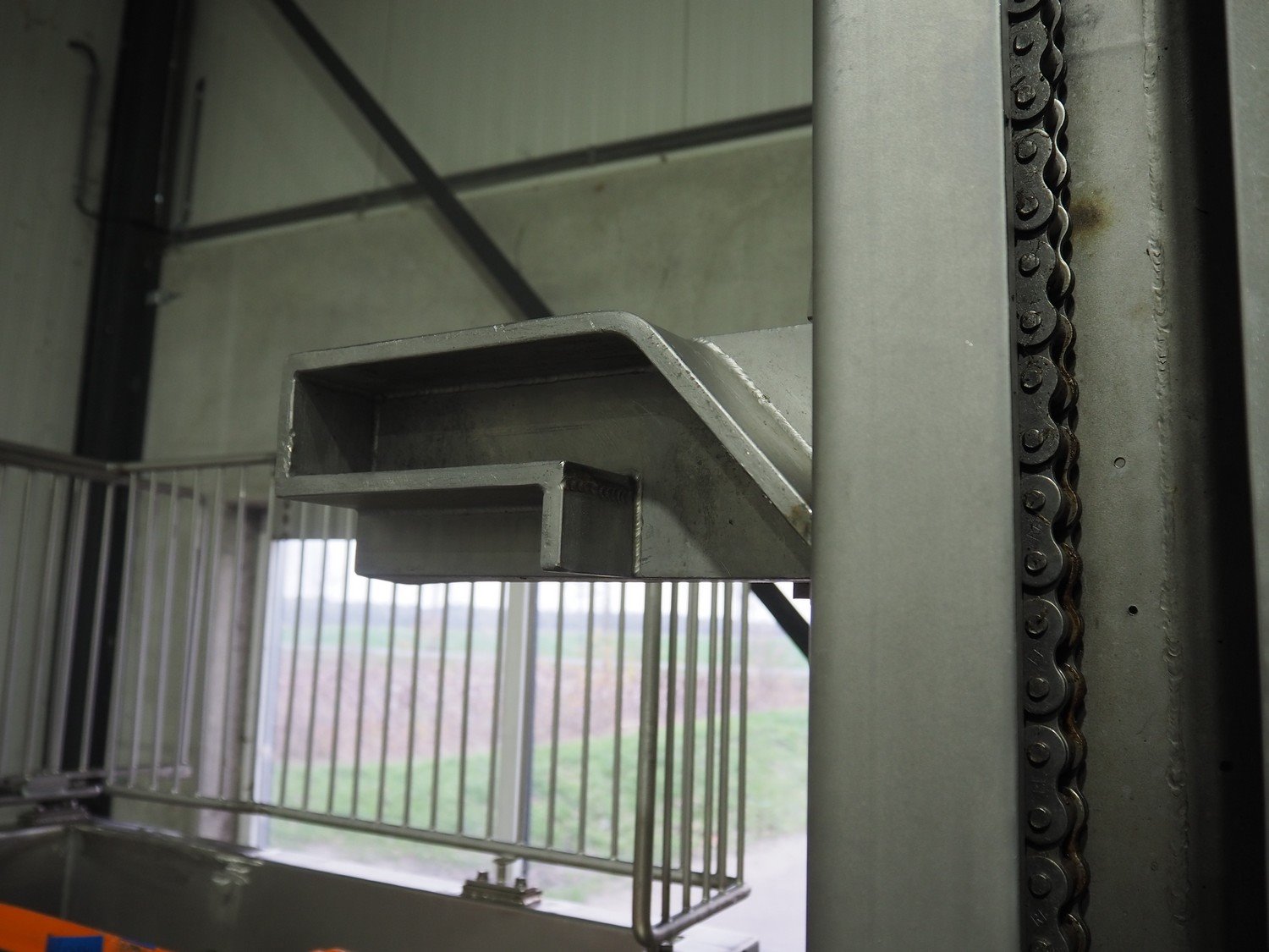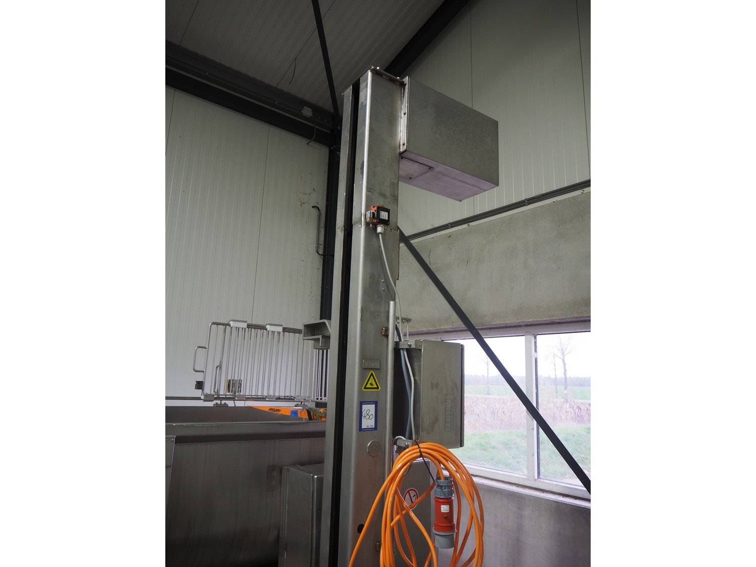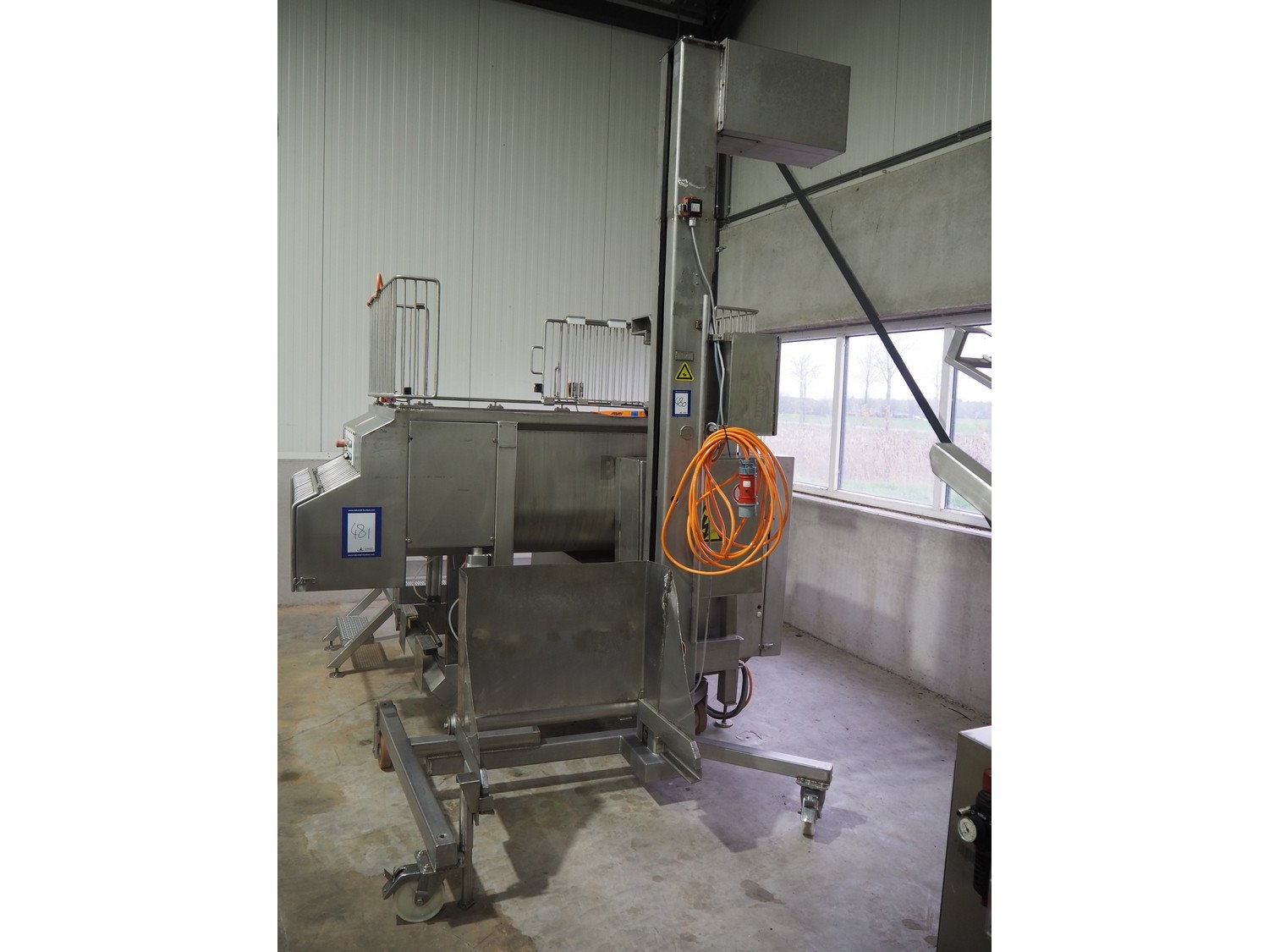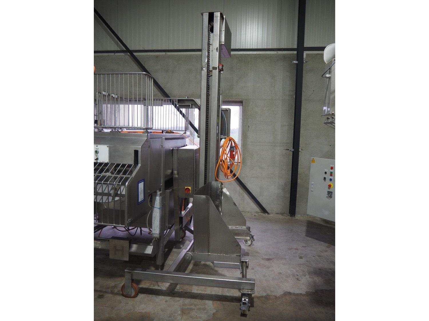 NON mobile lifter for 200 litre meat bins, lifting height: 1850 mm, total dimensions: 1200 mm x 1700 mm x 2900 mm.