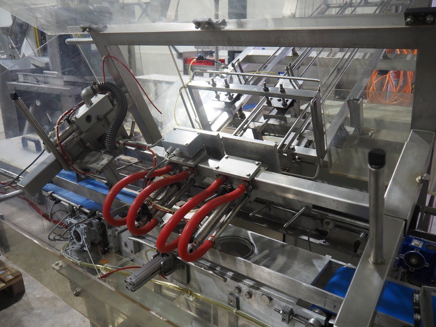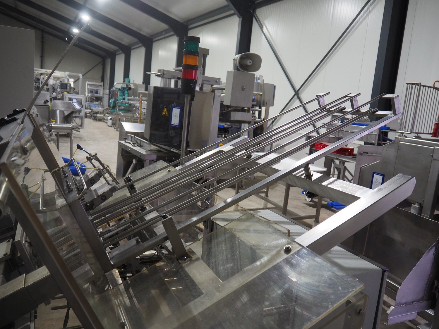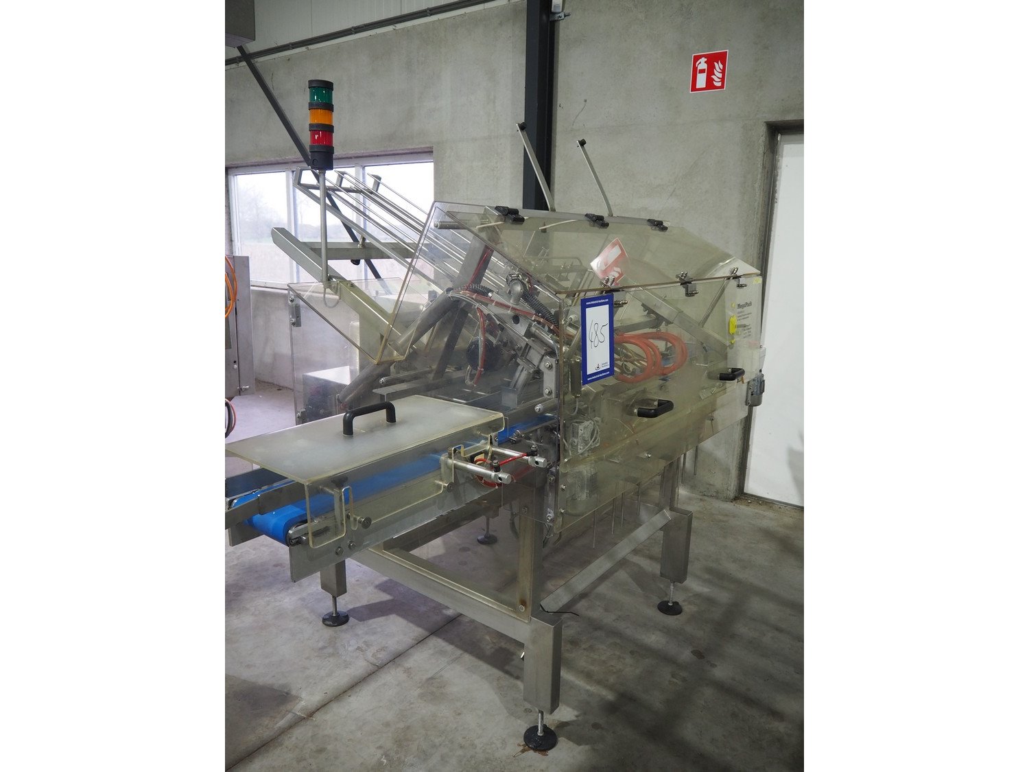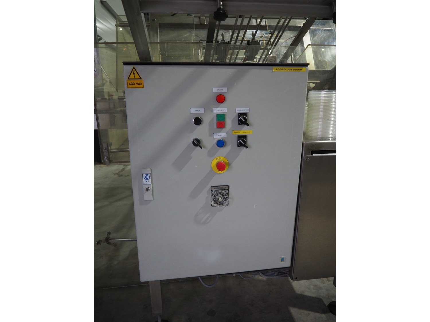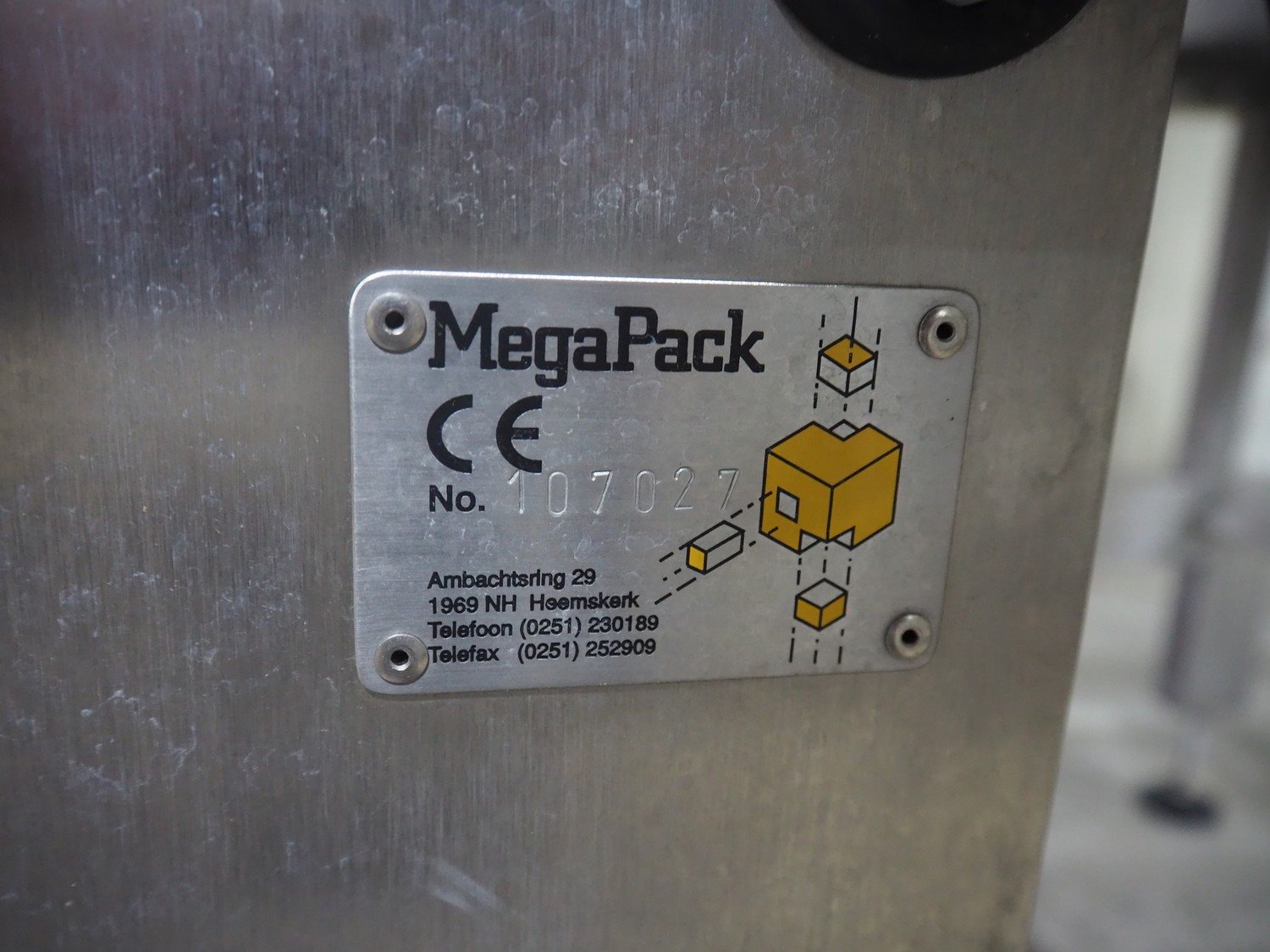 MegaPack denester, number: 107027, dimensions trays: (2x) 192 mm x 65 mm, dimensions mould: (2x) ø 110 mm, plastic belt, belt width: 175 mm, total dimensions: 1400 mm x 2650 mm x 1930 mm.