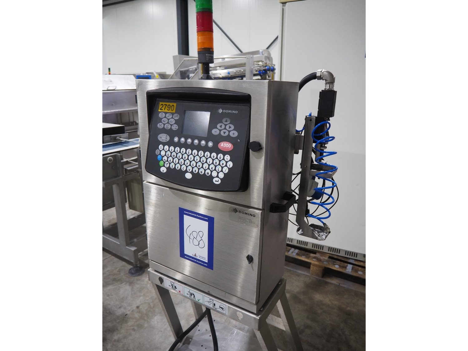 Domino mobile inkjet printer, model: A300, dimensions: 650 mm x 700 mm x 1800 mm.