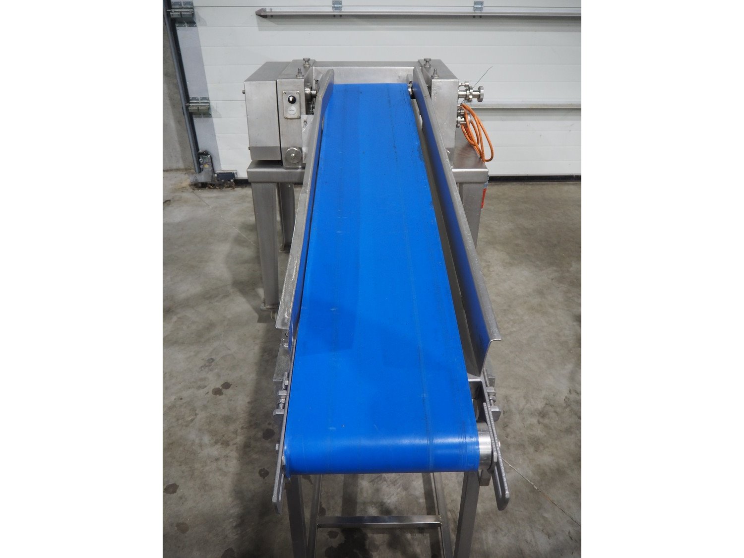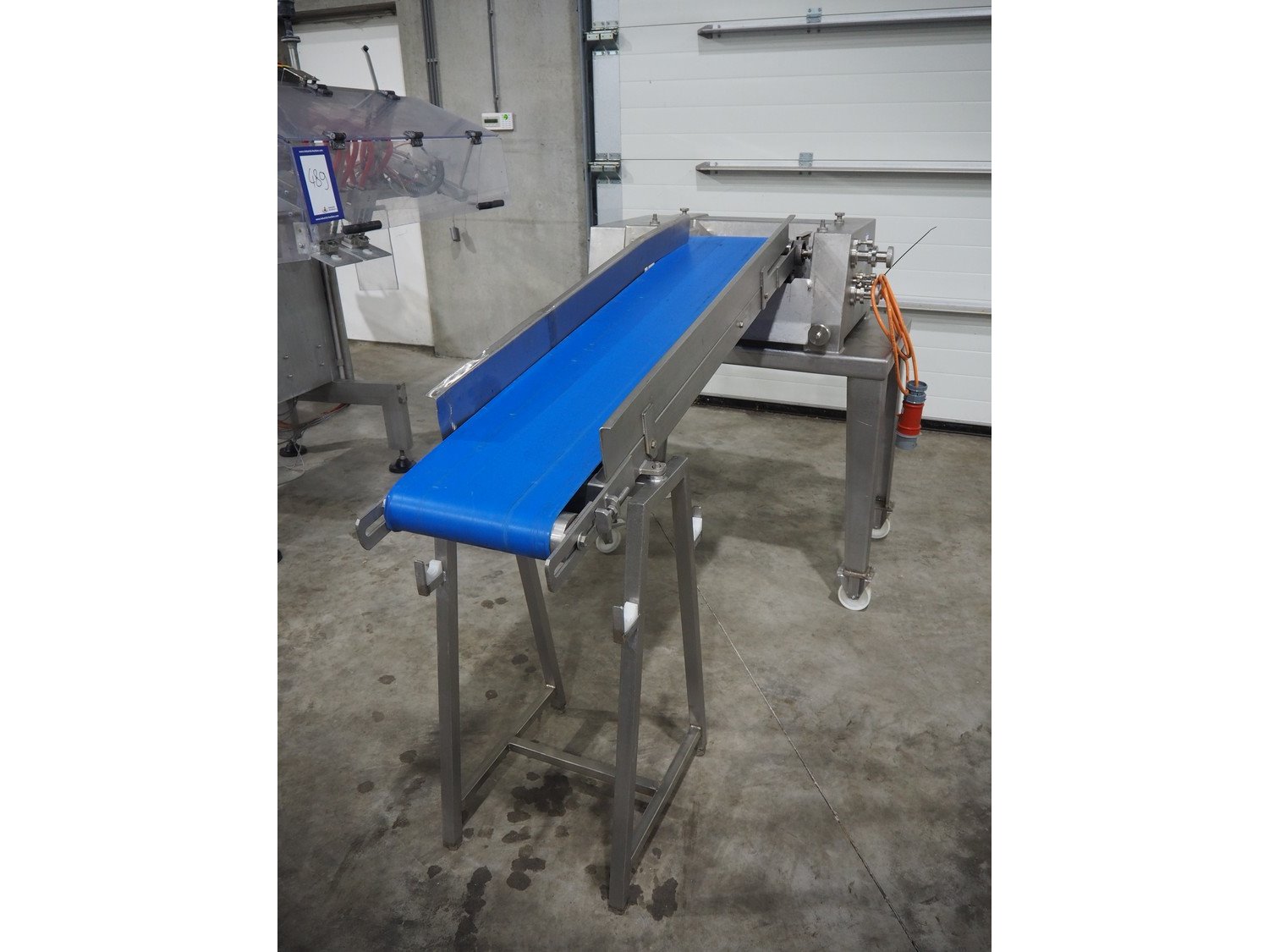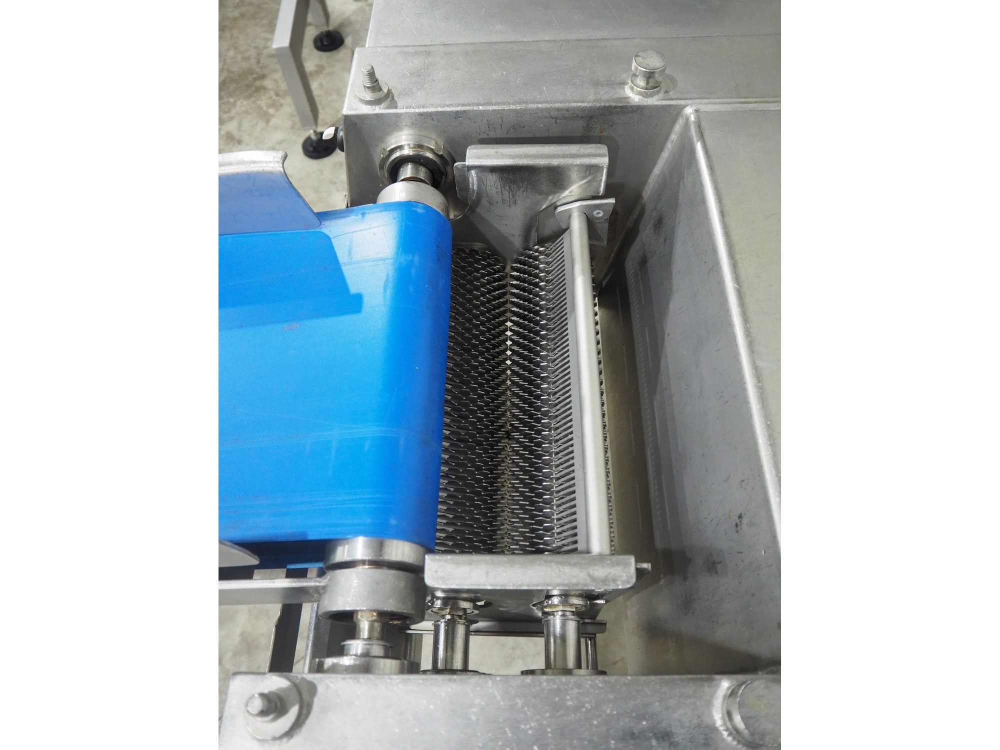Belam B.V. tenderiser, type: IT-3, machine number: 9306-951.0069, 380 V, 50 Hz, plastic belt, belt width: 300 mm, working width: 330 mm, total dimensions: 2000 mm x 950 mm x 1250 mm.