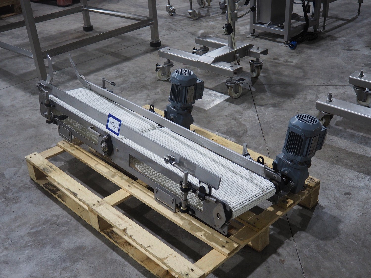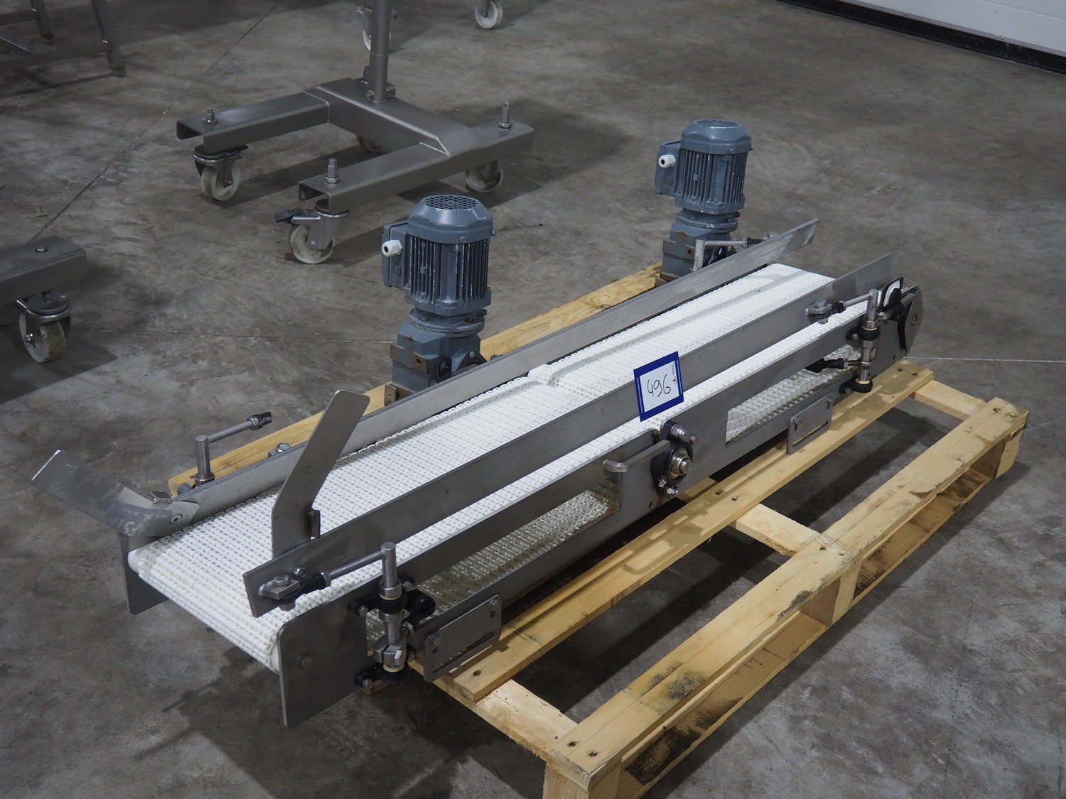 Transport belt, s/s frame, plastic mesh belt, belt width: 250 mm, total dimensions: 1600 mm x 600 mm x 350 mm.