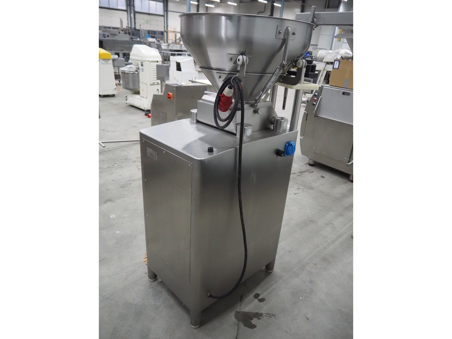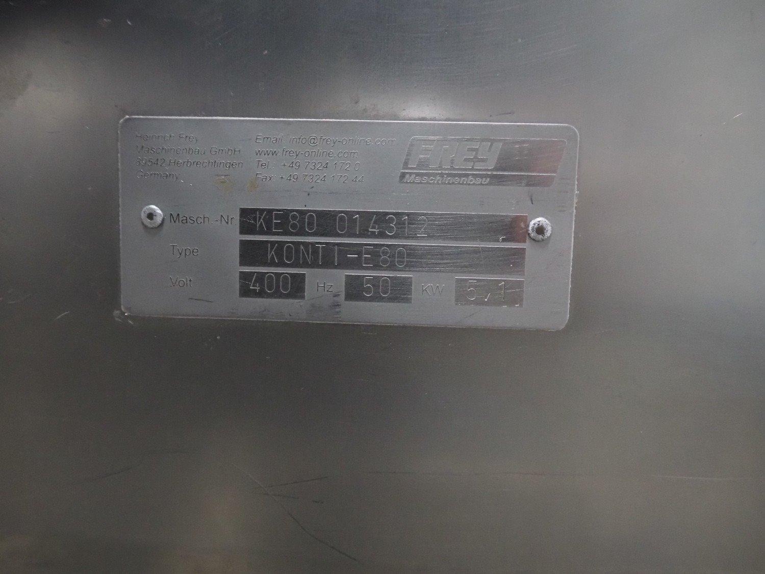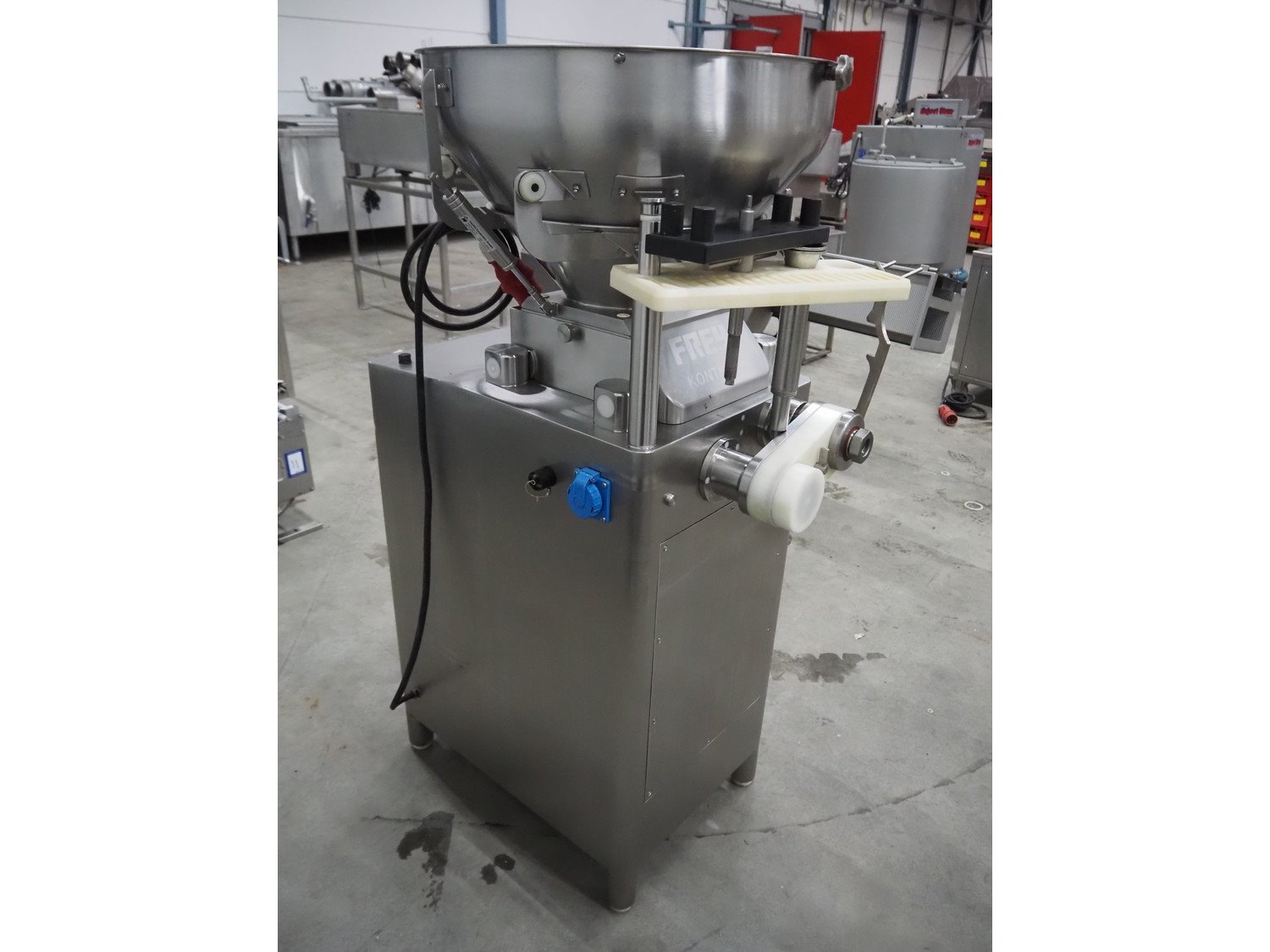 Frey Maschinenbau vacuum filling machine, type: KONTI-E80, machine number: KE80 014312, 400 V, 50 Hz, 5.1 kW, Busch vacuum pump, total dimensions: 950 mm x 700 mm x 1600 mm. Including linking attachment.